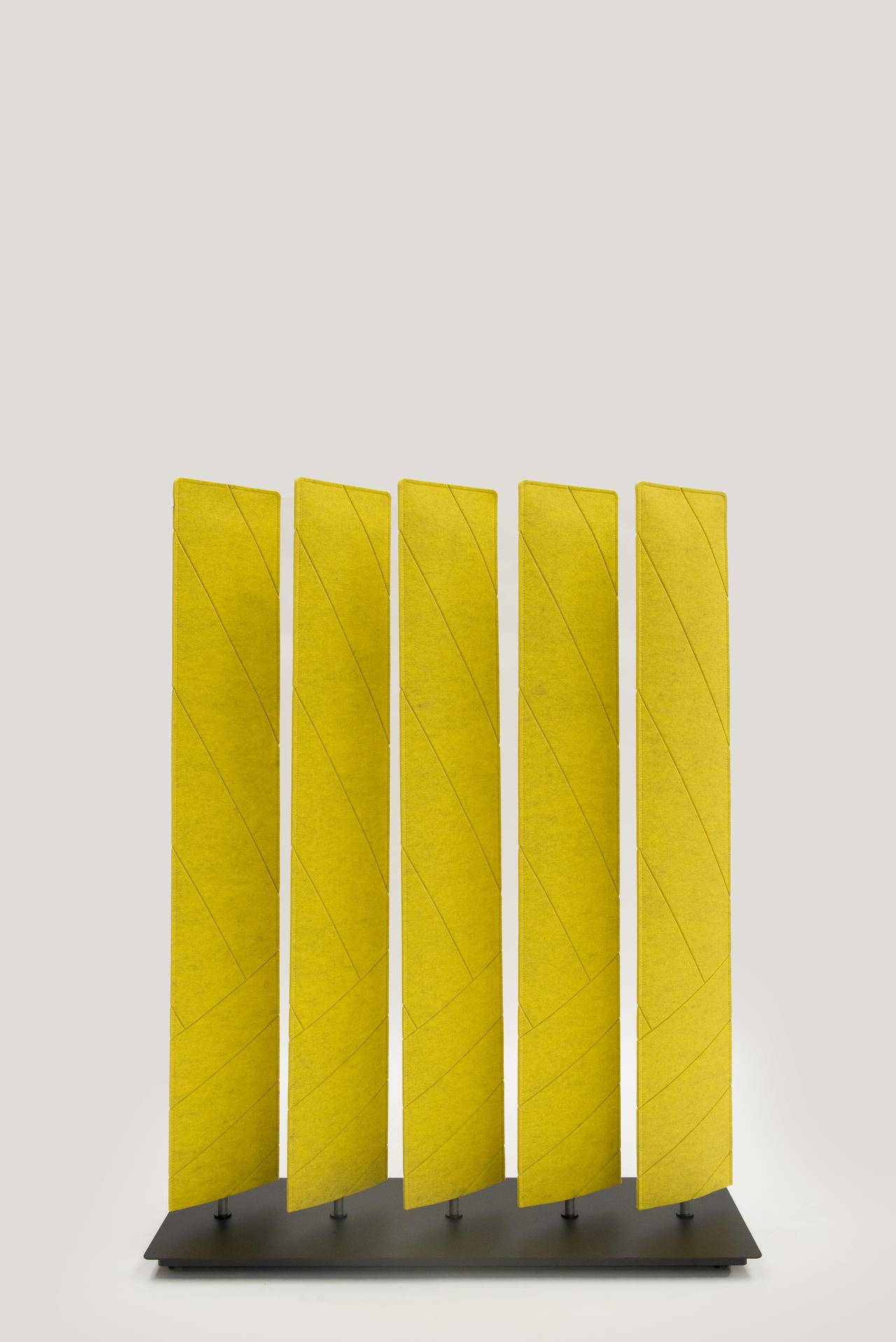 BuzziBlinds se vyznačují jedinečnou řadou tvarů a technologií v-cut pro výraznější vizuální dojem. Hliníková konstrukce je potažená látkou BuzziFelt, který je k dispozici ve 12 barvách. Přizpůsobte si BuzziBlinds pomocí extra vrstvy tkaniny nebo přidejte kola k základní desce, pro snadný pohyb či přemístění.