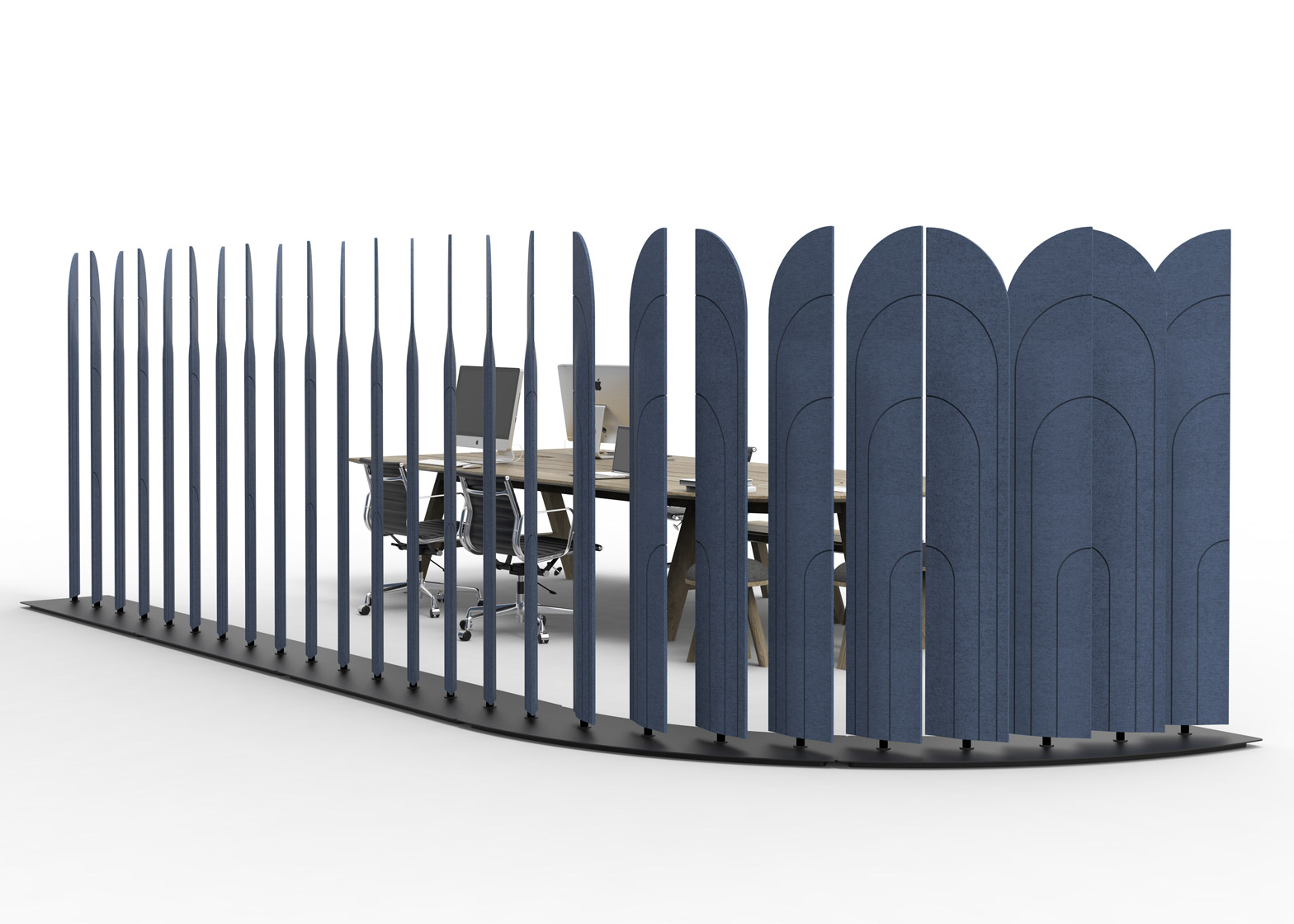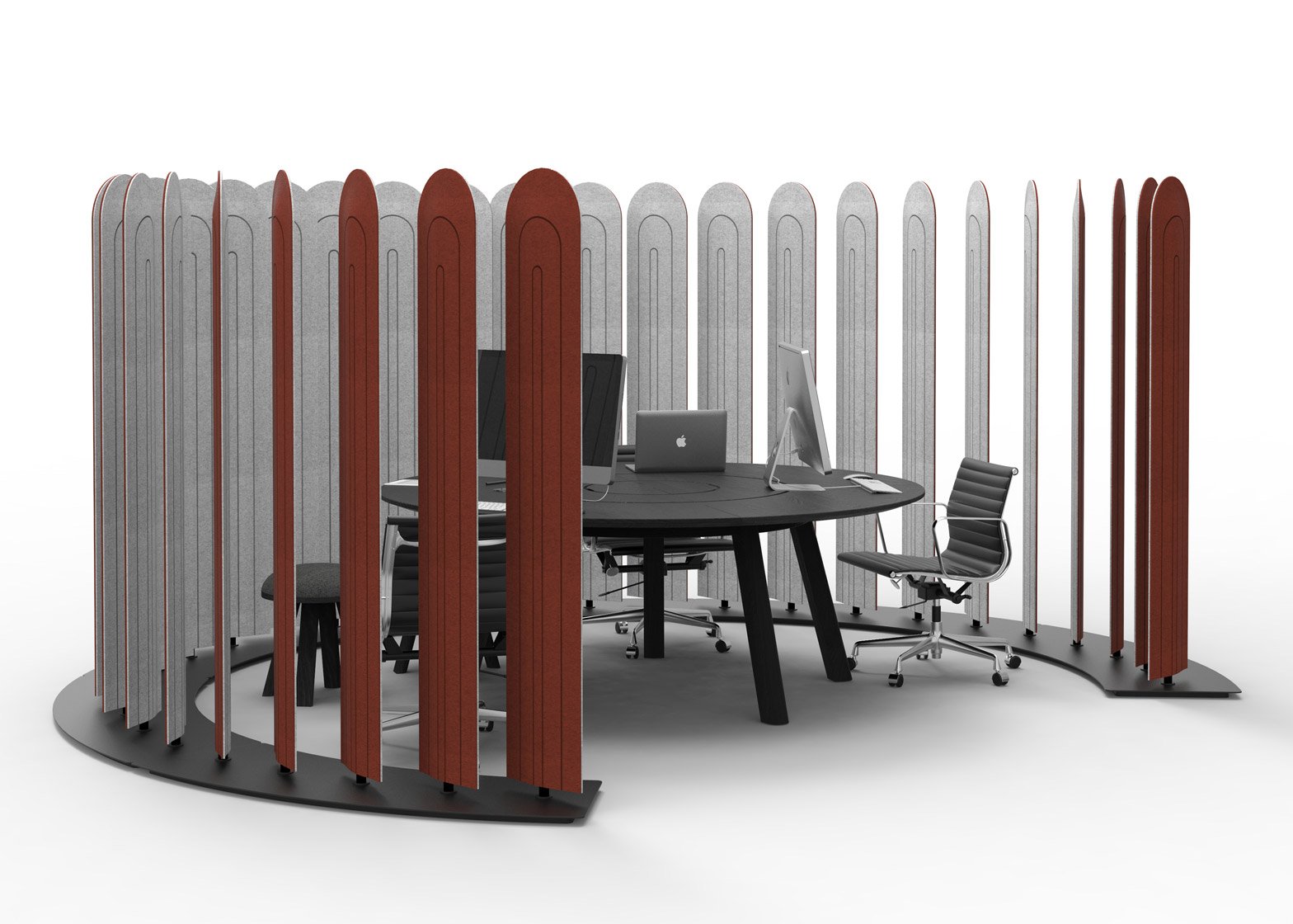 Akustické otočné zástěny pro různé stupně soukromí.