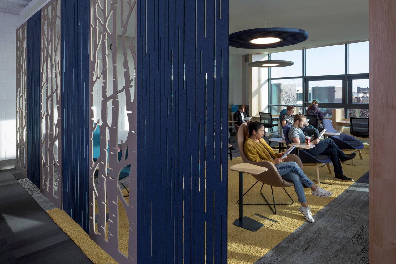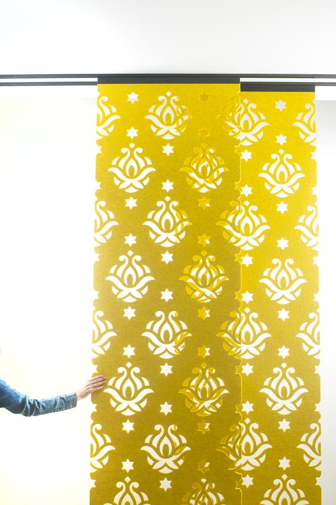 Jedná se o elegantní řešení a rozdělení místnosti v jednom. Tyto panely absorbující zvuk jsou vyrobeny z duální vrstvy BuzziFelt, do kterých jsou precizně vyřezány výrazné vzory. Můžete si vybrat, zda chcete BuzziFalls umístit na zeď nebo strop. BuzziFalls Rail je další alternativou, která umožňuje snadné posouvání panelů - vytváří pohyblivý oddělovač místnosti, který se hodí do soukromého i veřejného prostoru.