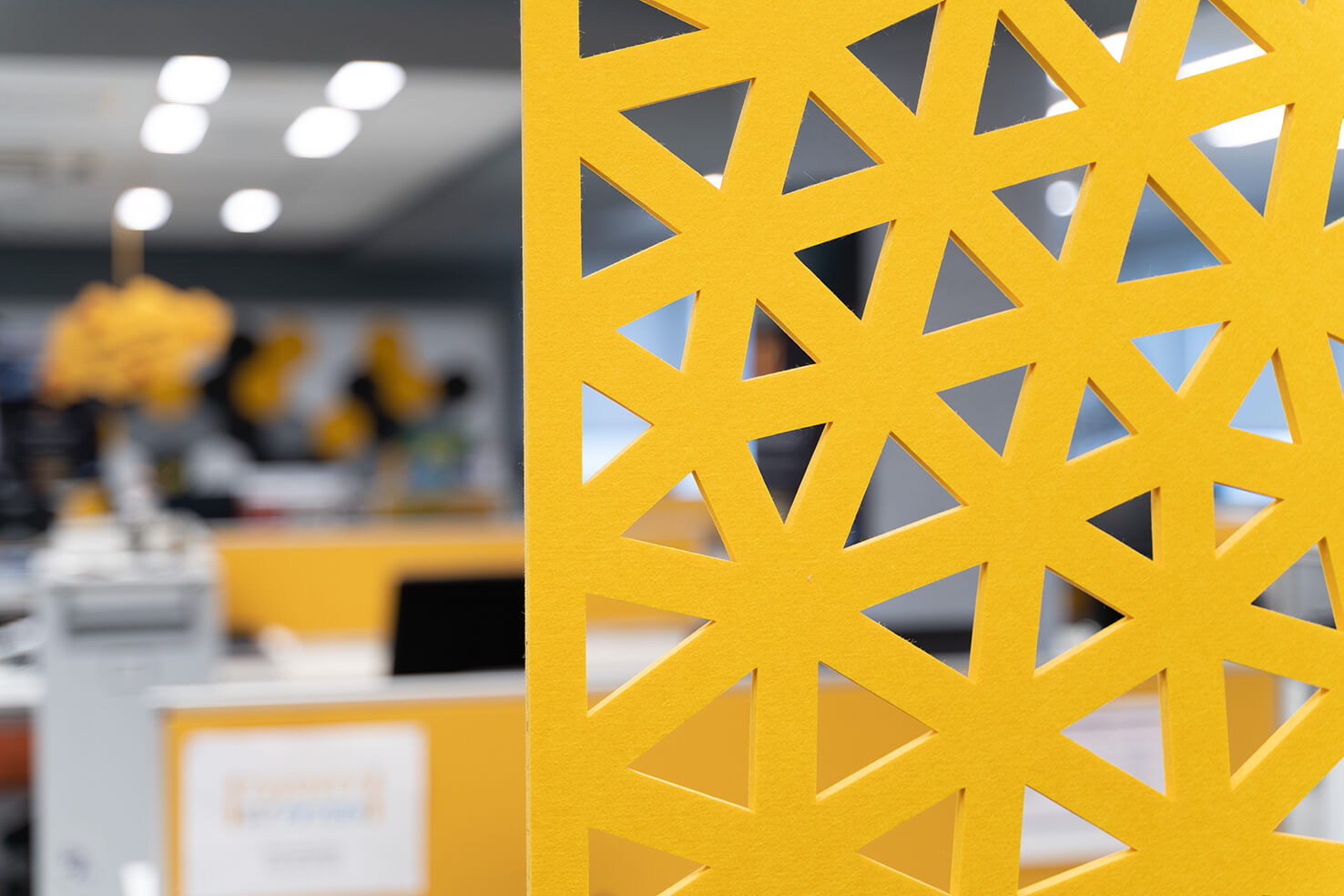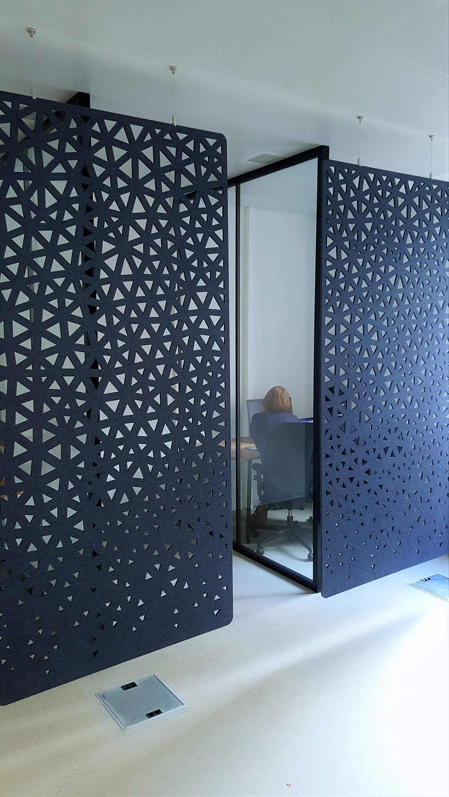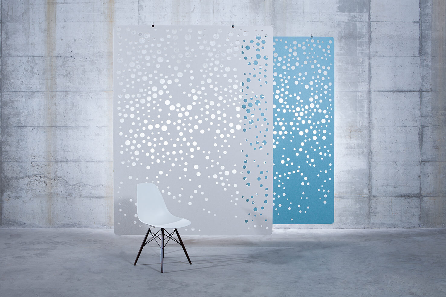 Akustický paraván EchoCurtain® je k dispozici také na rolích jako záclona pro ještě větší flexibilitu. Minimalistický design odráží poslání výrobce prosazovat myšlenku dematerializace a funkčnosti.