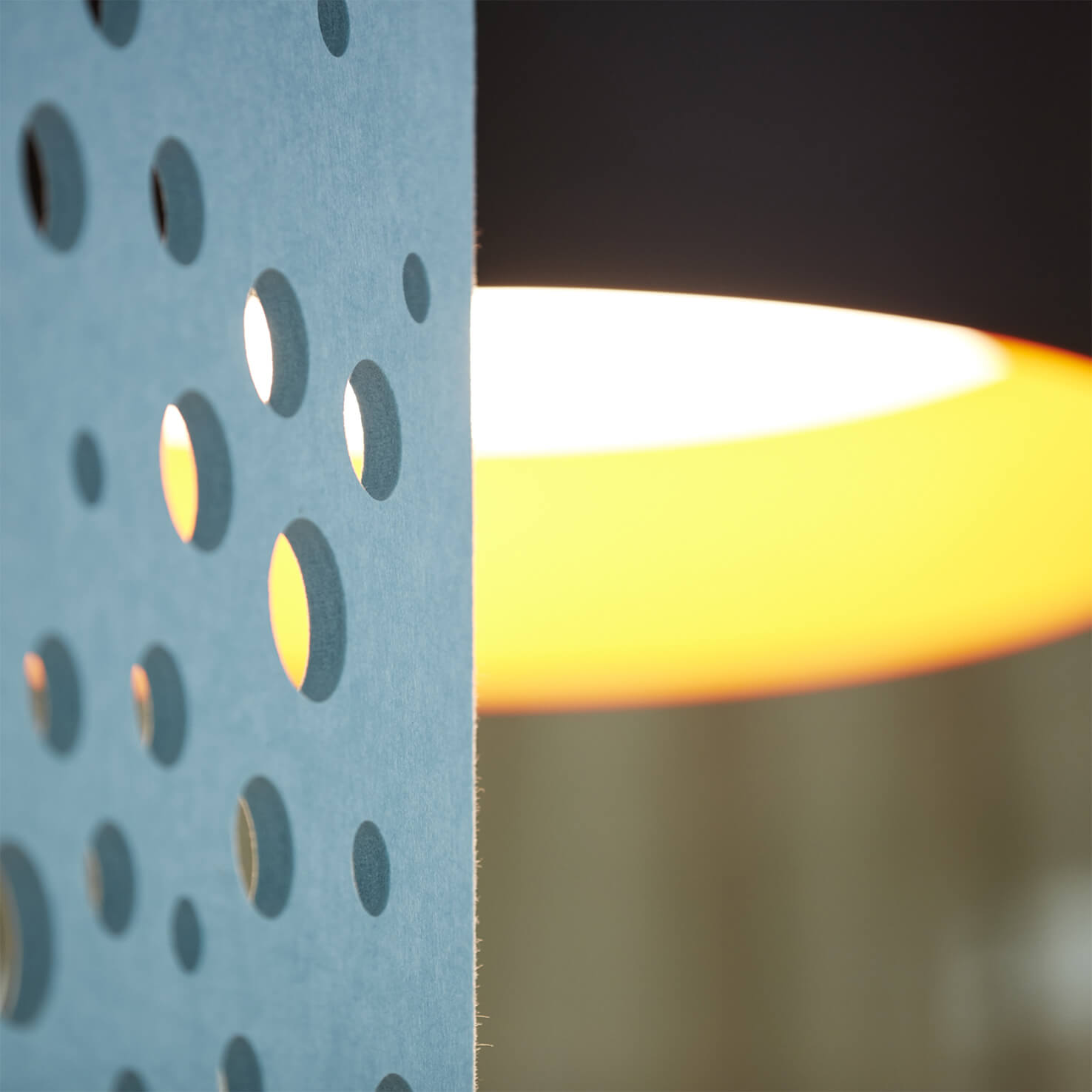 Pro zvýšení akustického komfortu při tvorbě otevřených prostorů se doporučuje zvolit vysoce výkonný materiál o tloušťce 24 mm a to v jednom ze standardních designů, které byly vytvořeny pro zlepšení akustického výkonu za pomocí perforace materiálu.
