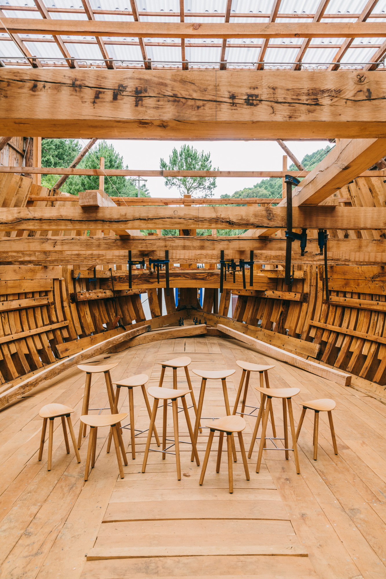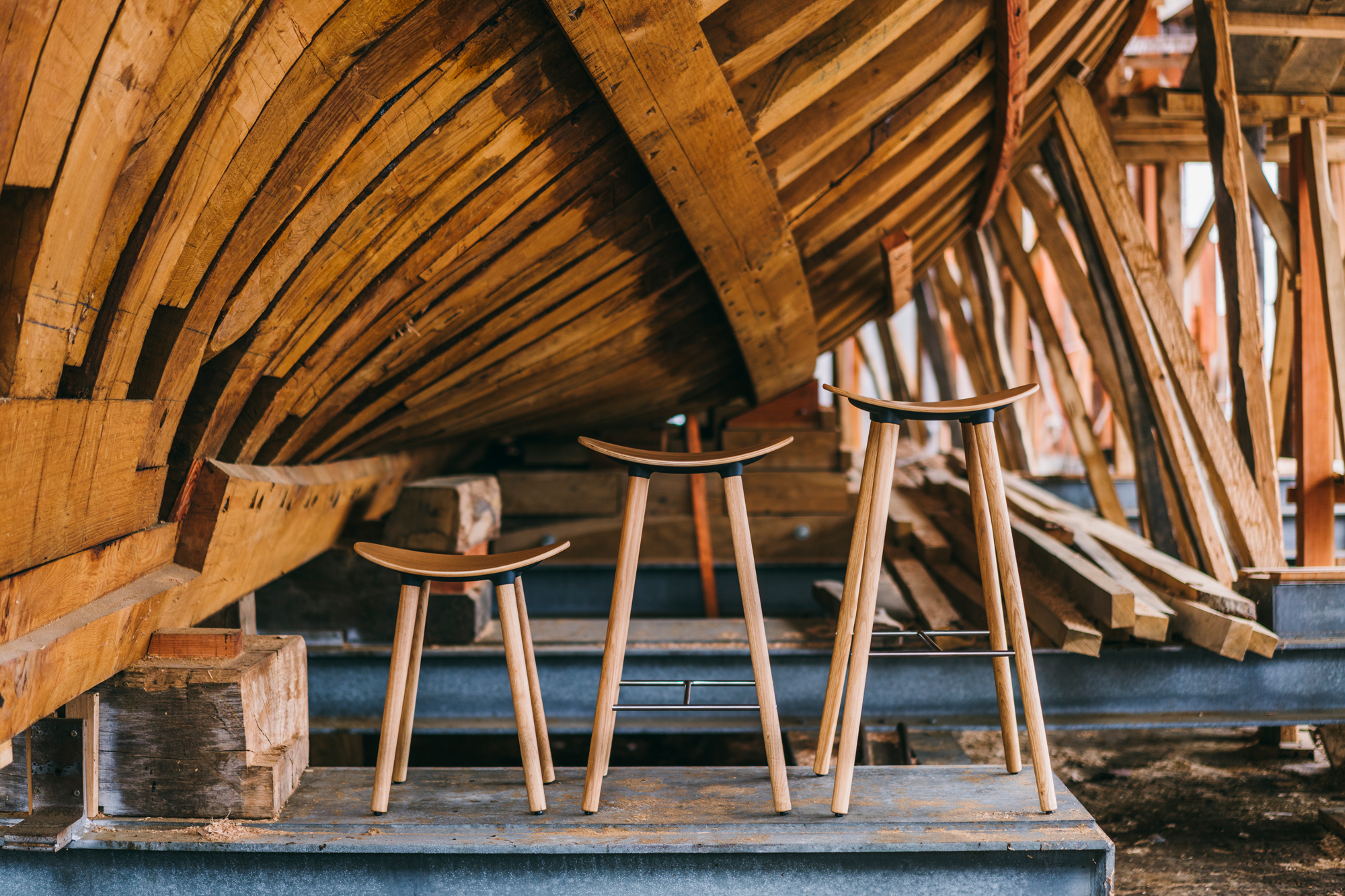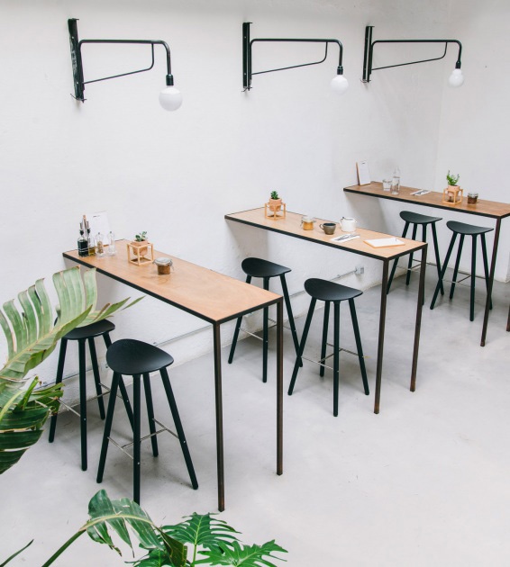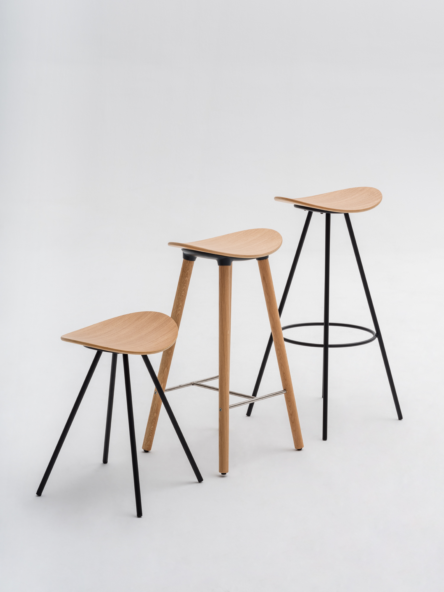 Dubovou či bukovou stoličku lze kombinovat s vícero povrchovými úpravami. Je dodávána ve třech výškách: vysoké, střední a nižší, a proto představuje velkou variabilitu. Využití tedy najde v široké škále prostorů, zejména tam, kde je málo volného místa.
