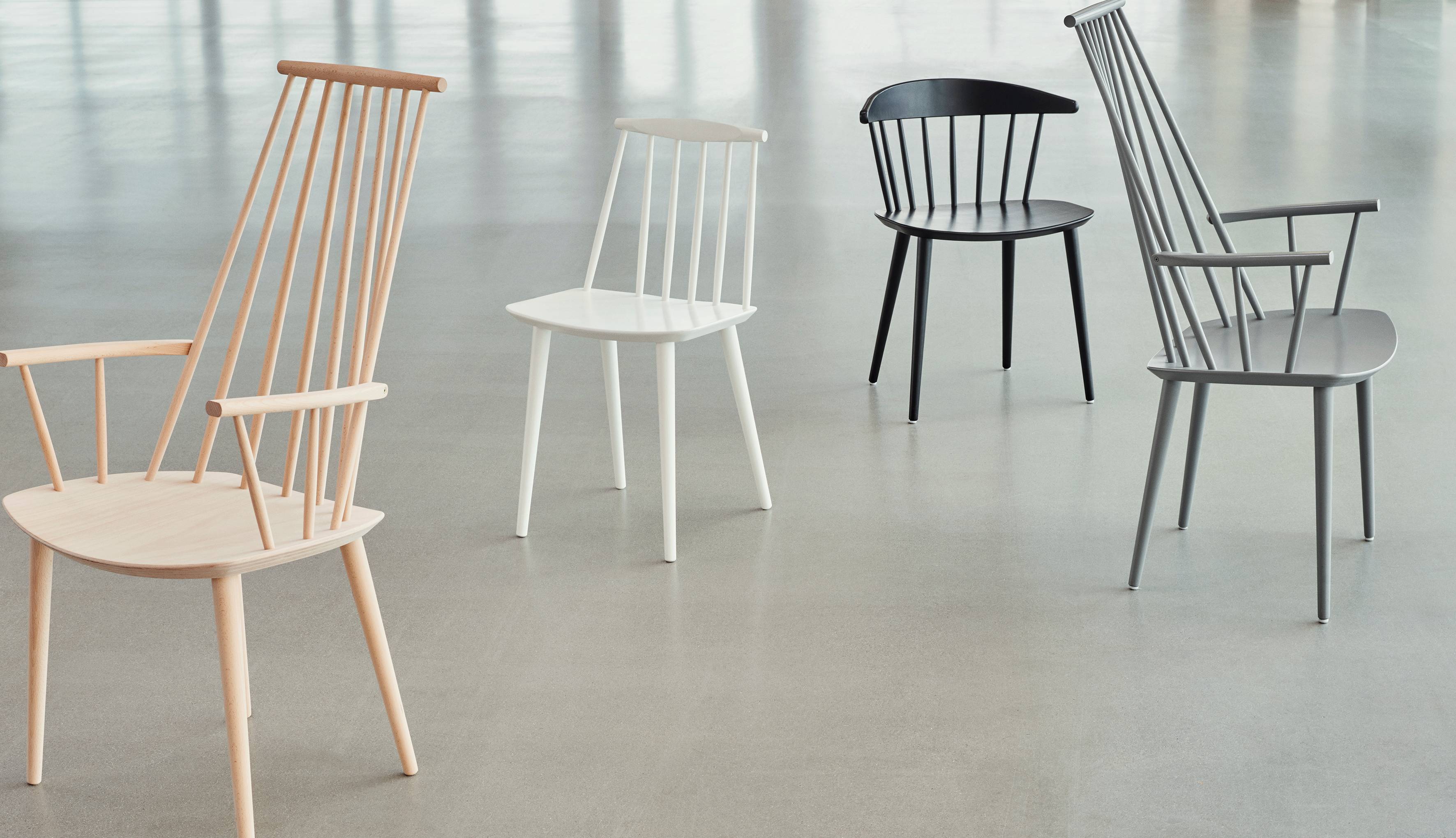Židle J104 Jørgena Bækmarka byla navržena jako kříženec mezi jídelní židlí a lehkou židlí. Reprodukce této klasiky od HAY je vytvořena v masivním buku s různými matnými nebo lakovanými povrchy.