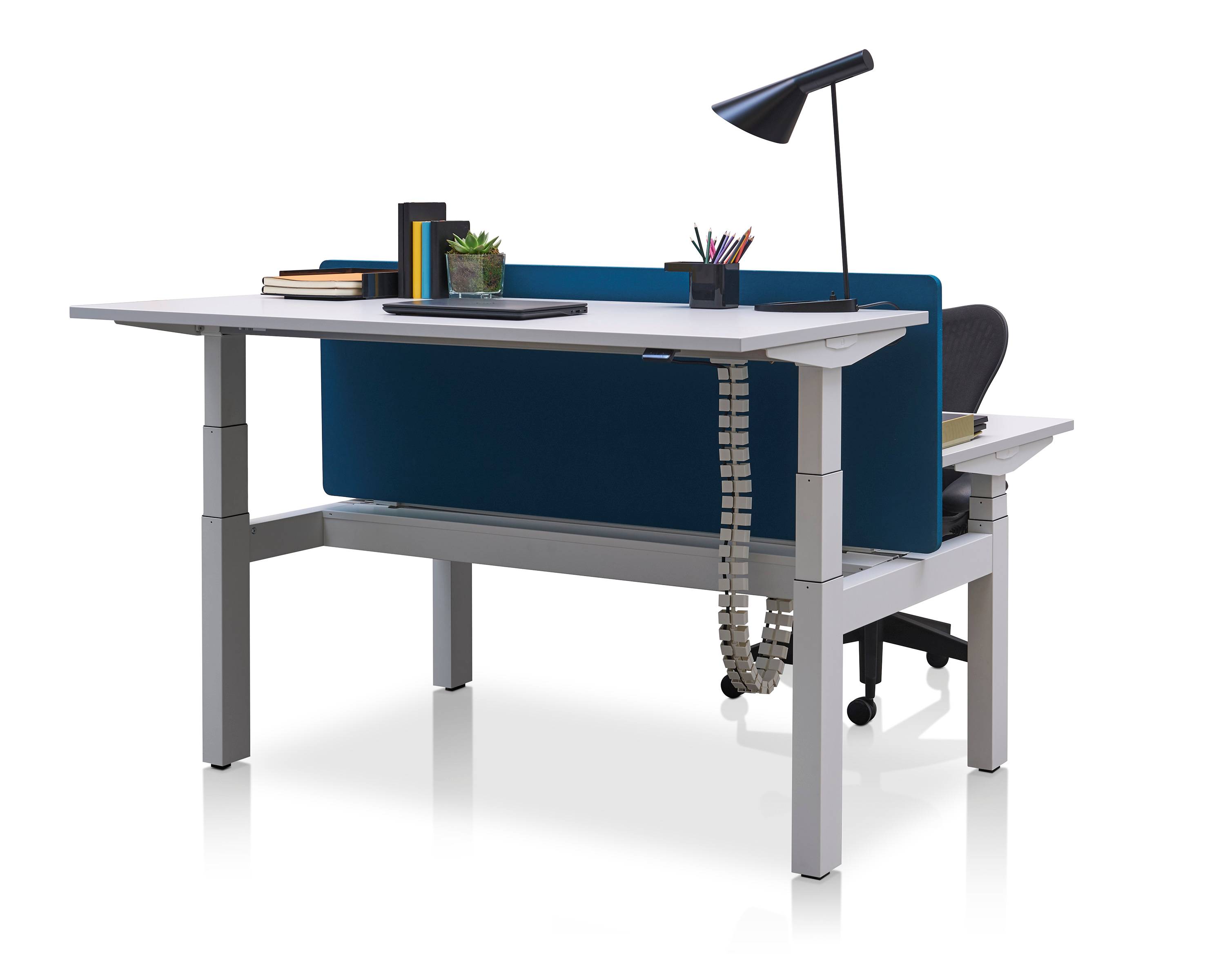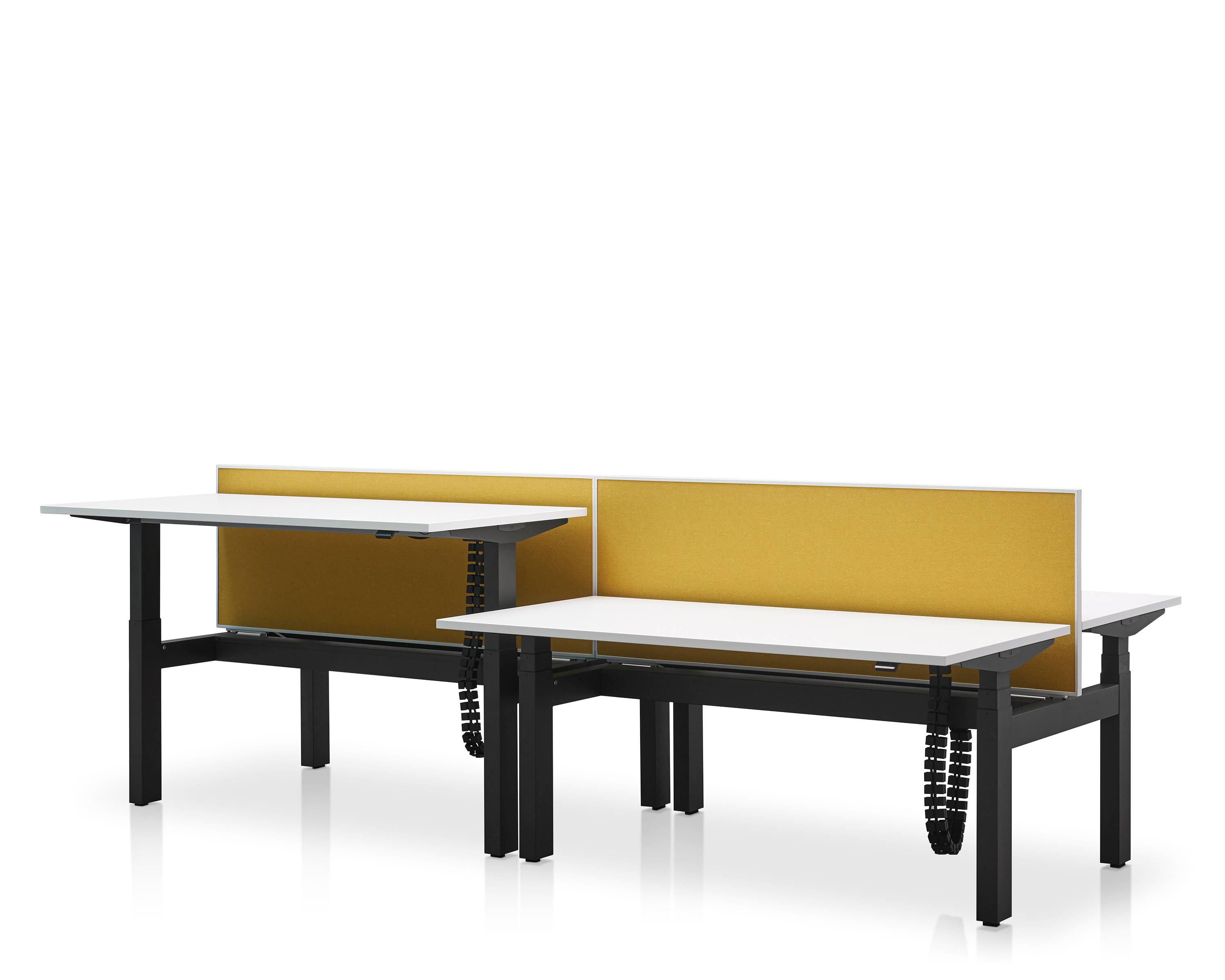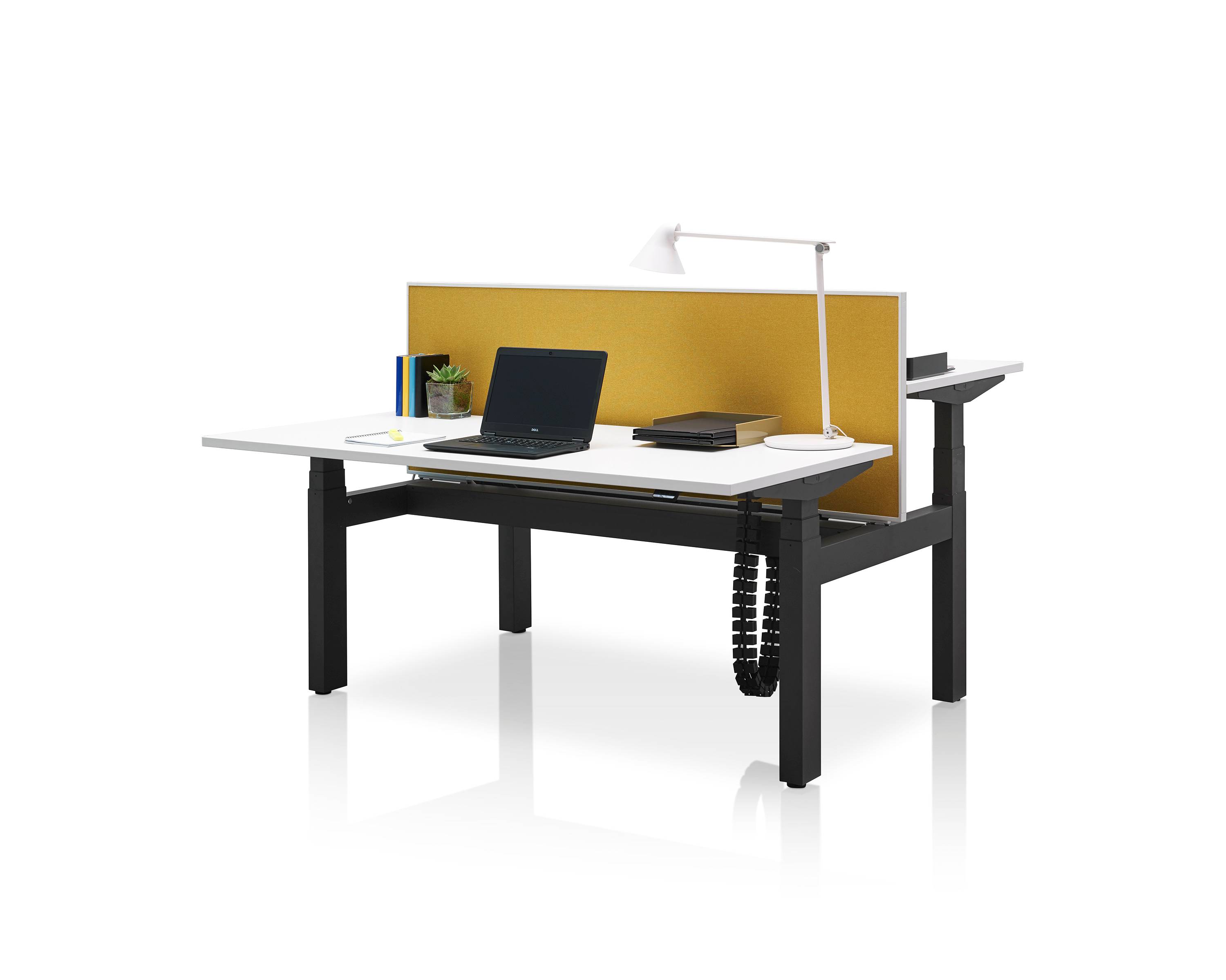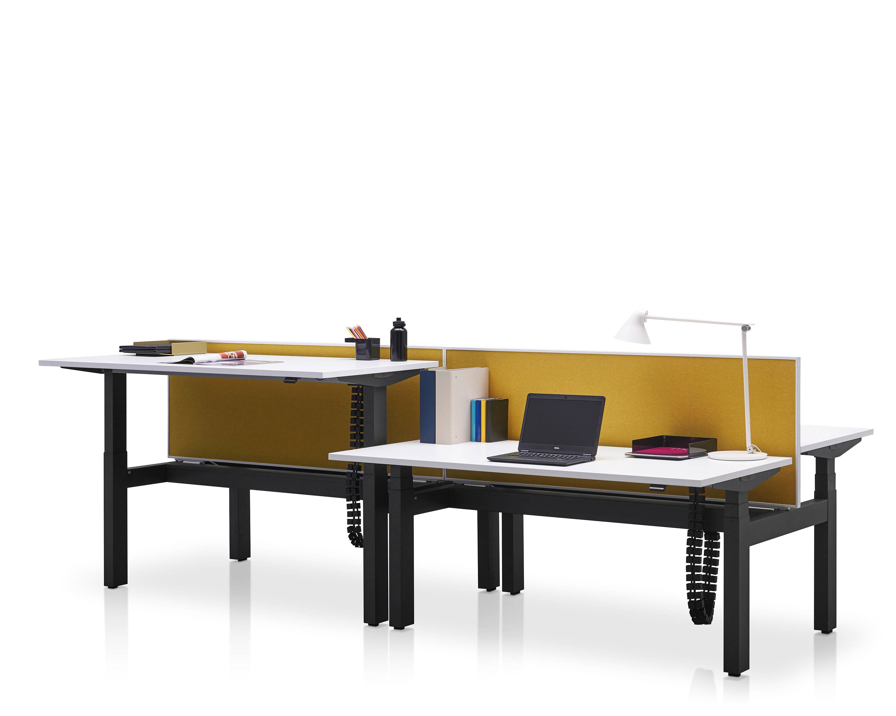 Pracovní stůl s nastavitelnou výškou umožňuje plynulý přechod mezi sezením a stáním, což dává možnost uživatelům měnit polohu těla podle jejich potřeb po celý den.