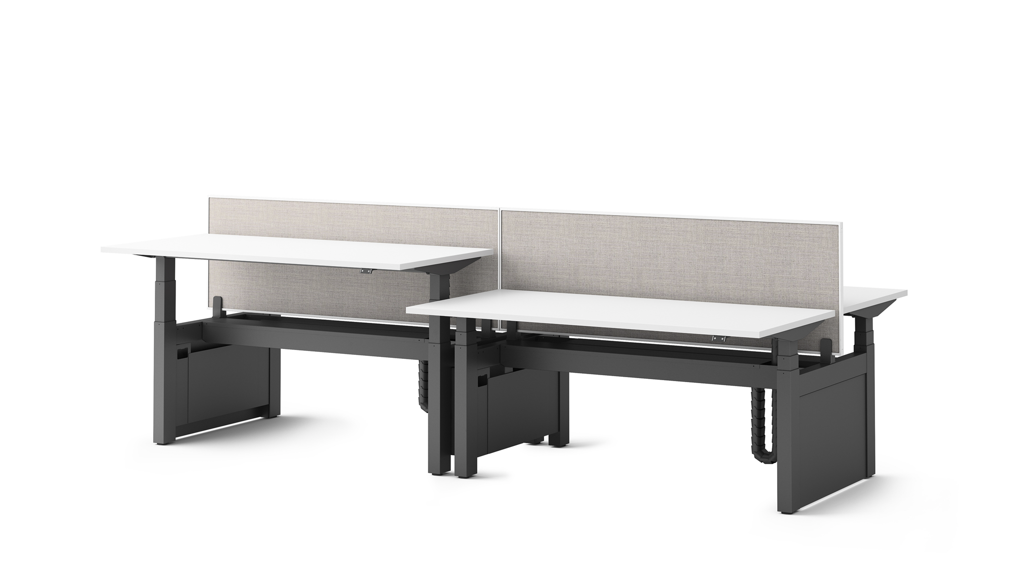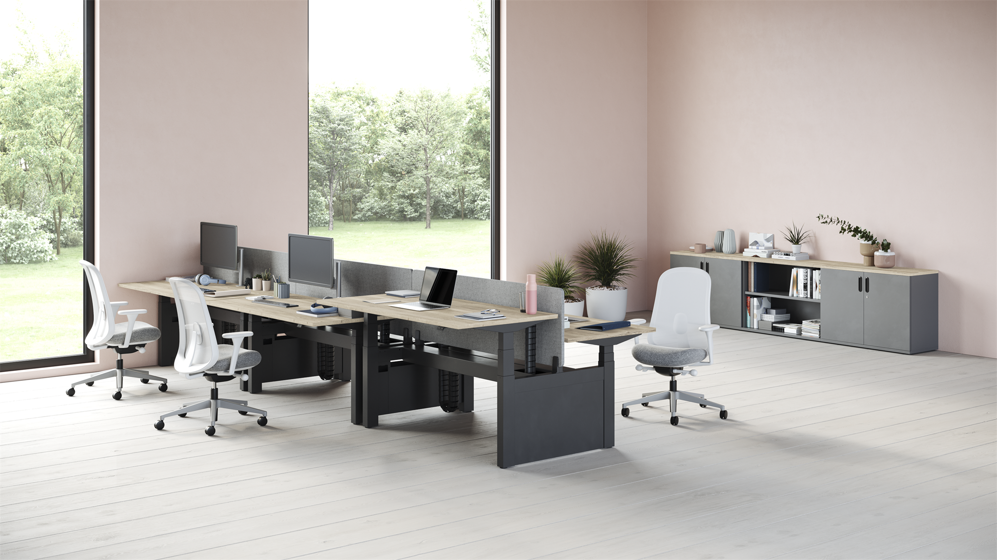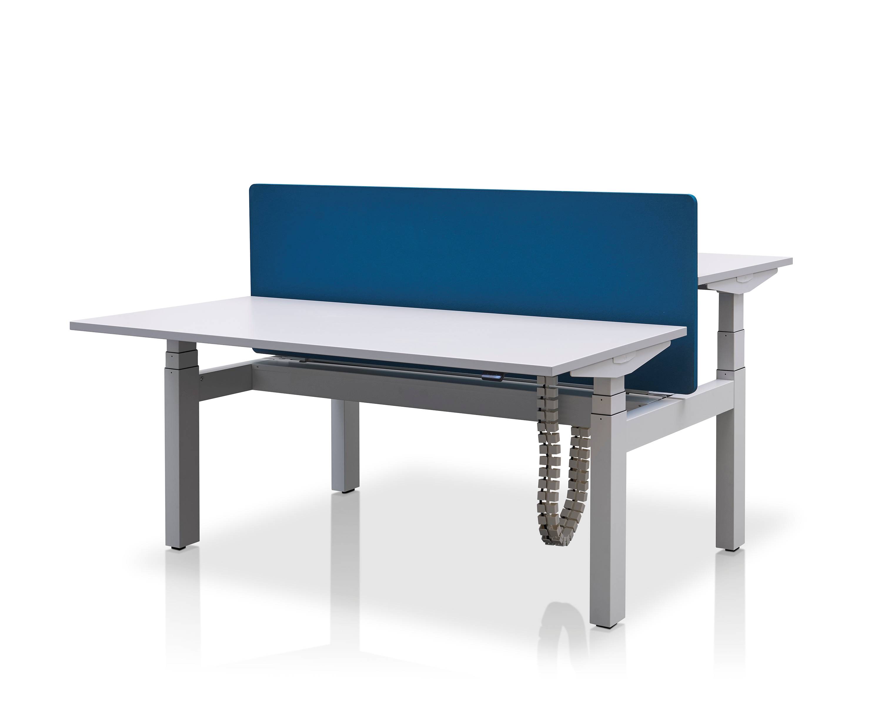 Pracovní stůl s nastavitelnou výškou umožňuje plynulý přechod mezi sezením a stáním, což dává možnost uživatelům měnit polohu těla podle jejich potřeb po celý den.