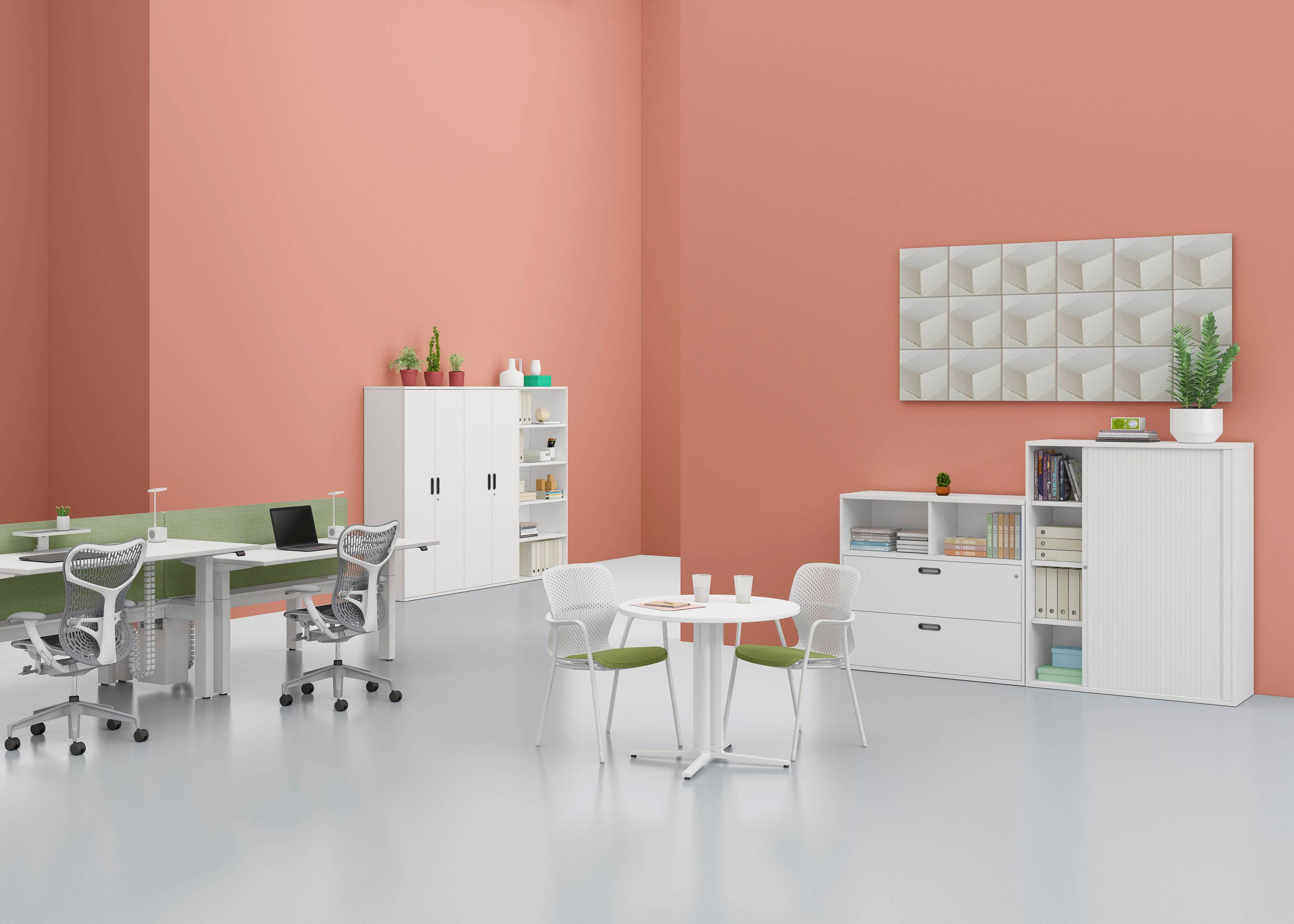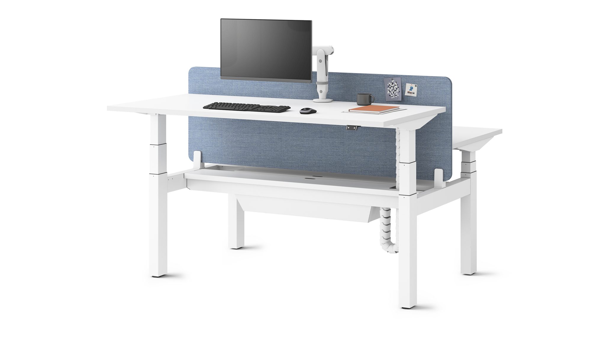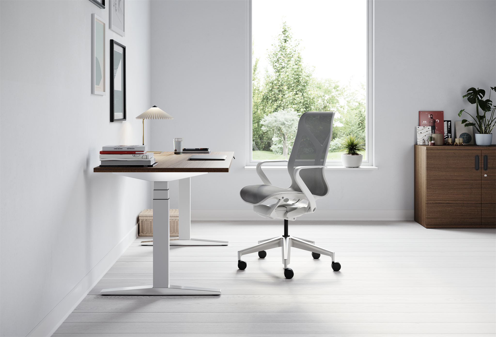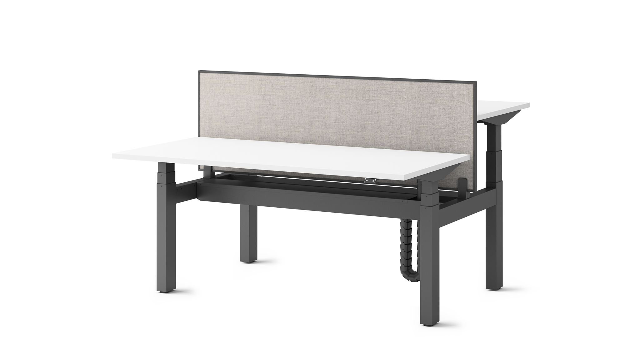 Pracovní stůl s nastavitelnou výškou umožňuje plynulý přechod mezi sezením a stáním, což dává možnost uživatelům měnit polohu těla podle jejich potřeb po celý den.