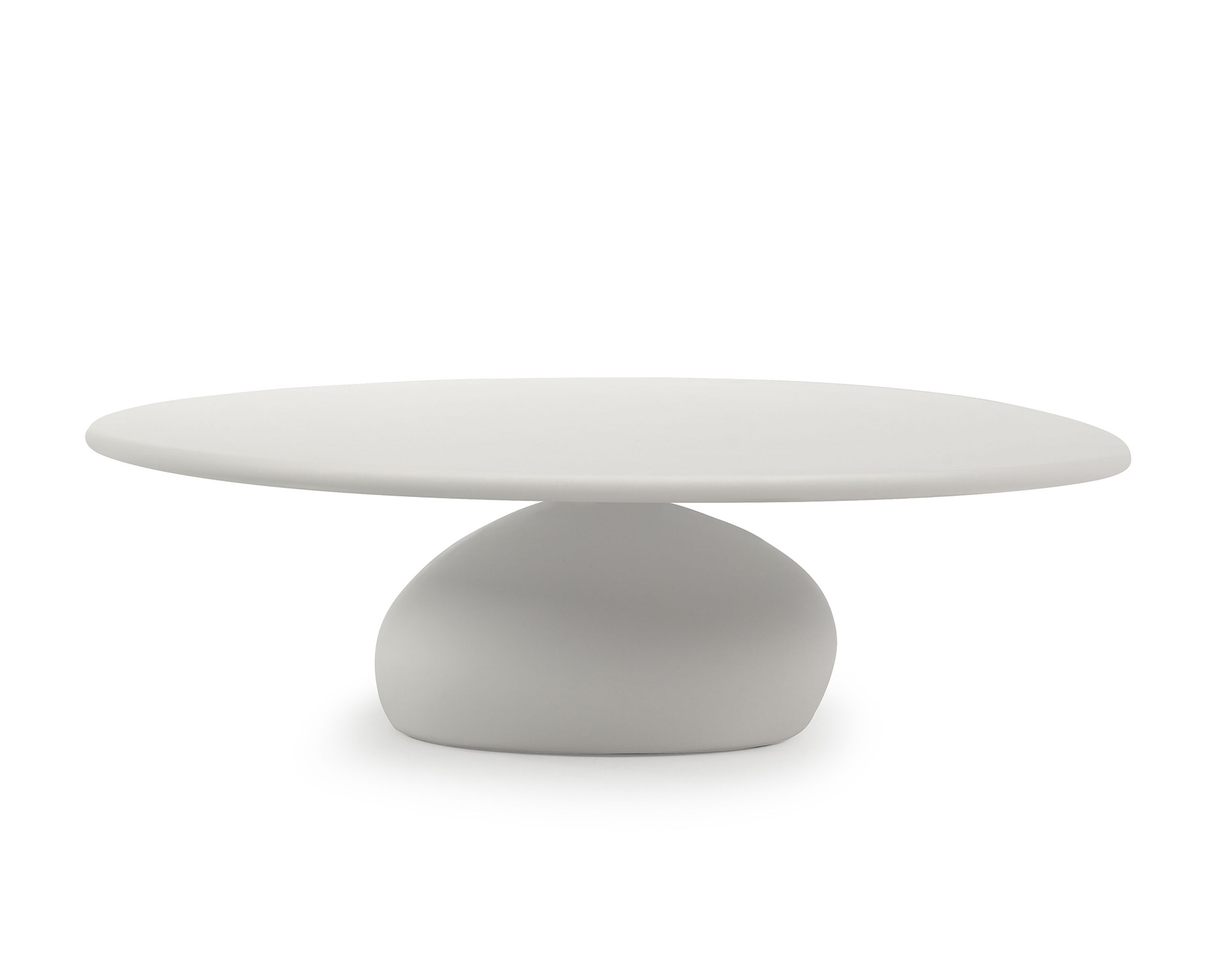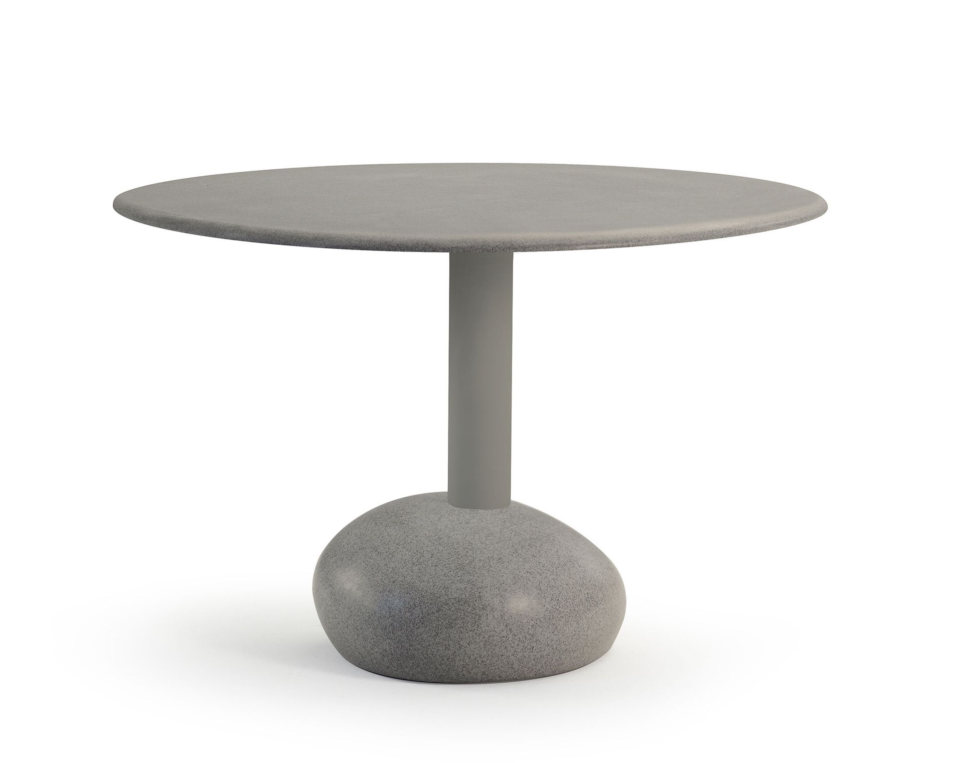 Funkční rodina stolů o čtyřech výškách nabízí použití coby příležitostný stůl nebo jídelní stůl. Inovativní a flexibilní materiál, vyrobený z kamene a pryskyřice, kopíruje tvar říčních oblásků.