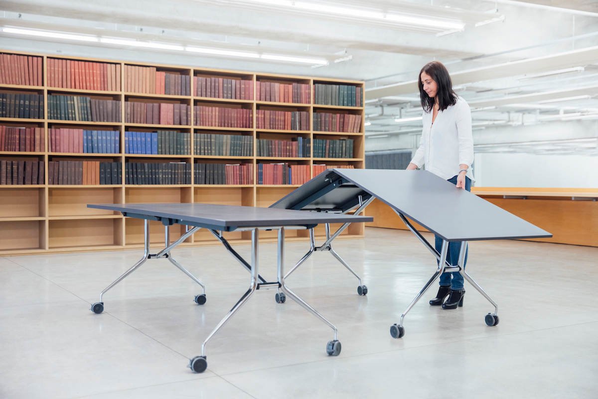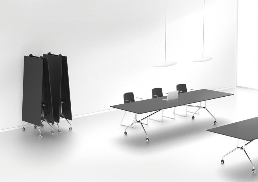 Funguje perfektně jako samostatný pracovní a konferenční stůl nebo integrovaný do (společných) pracovních prostor a konferenčních místností. Stůl je vybaven čtyřmi bržděnými plastovými kolečky.