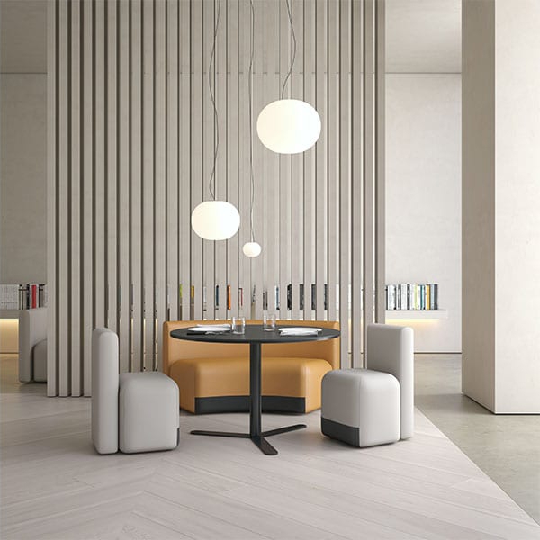 Sofa Season ze skládá ze dvou zaoblených tvarů, kvádru a svislého obdélníkového kusu, které vyjadřují akt sezení velmi jednoduchým, až téměř sochařským přístupem. Tři moduly sedací soupravy Season umožňují vytvářet různé kompozice, které dávají zážitku z lounge sezení ještě větší význam.