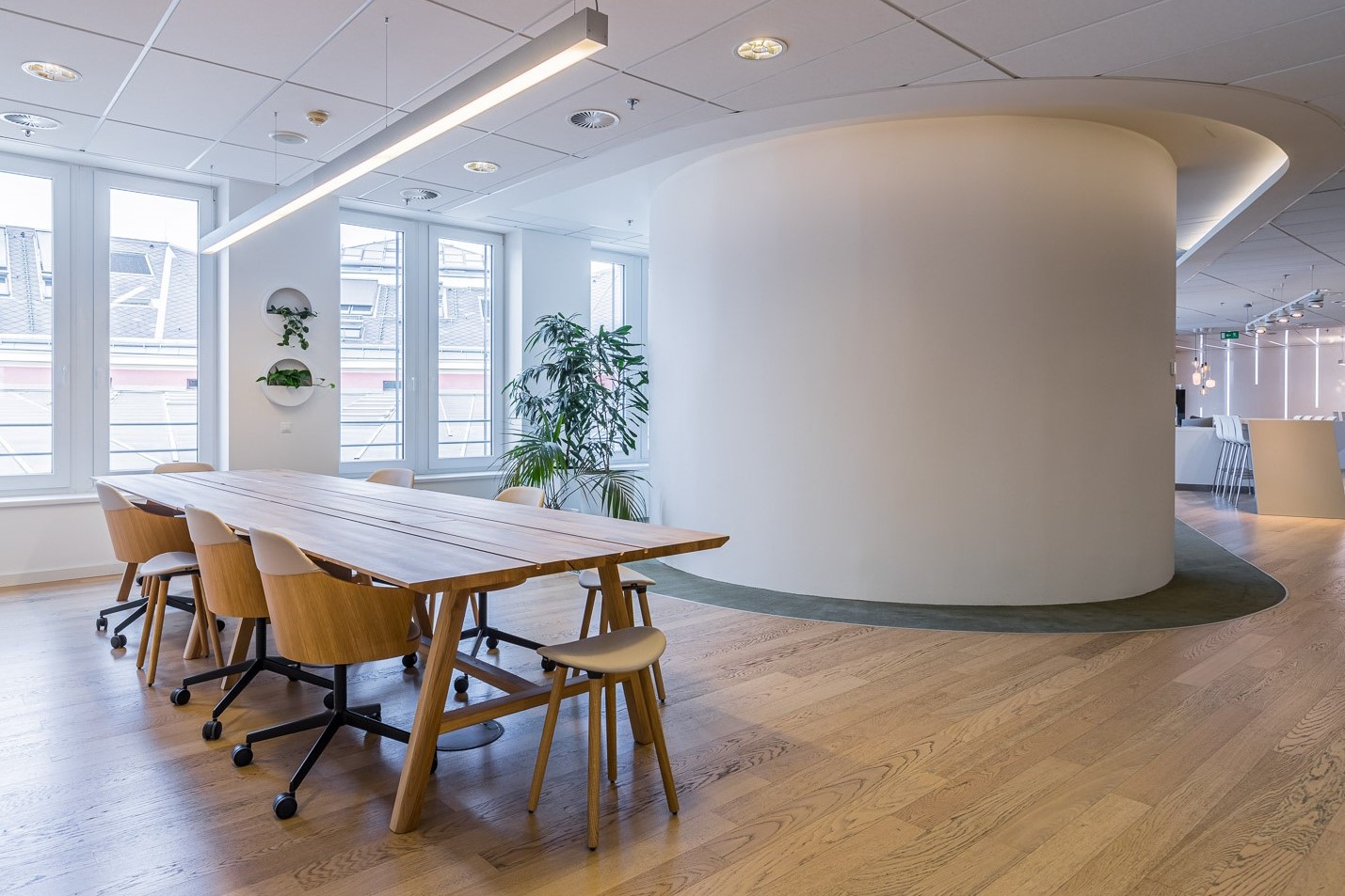 Společnost CBRE je špičkovým poskytovatelem integrovaných řešeních správy komerčních nemovitostí v celosvětovém měřítku a pravidelně se umisťuje na první místo na žebříčku poskytovatelů externích služeb v oblasti nemovitostí. Jako jejich dlouholetý vyzkoušený partner v mnoha projektech jsme byli osloveni, abychom se podíleli i na redesignu vybraných kancelářských prostor patřících a využívaných přímo společnosti CBRE. Do zajímavých otevřených a prostorově velkorysých kanceláří jsme dodali volný mobiliář značek HermanMiller, Hay, Viccarbe, Enea a Sancal. Akustiku místností vylepšují prvky z portfolia belgického výrobce BuzziSpace. Pracovním místům dominují pracovní židle MIRRA - evergreeny od HermanMiller.