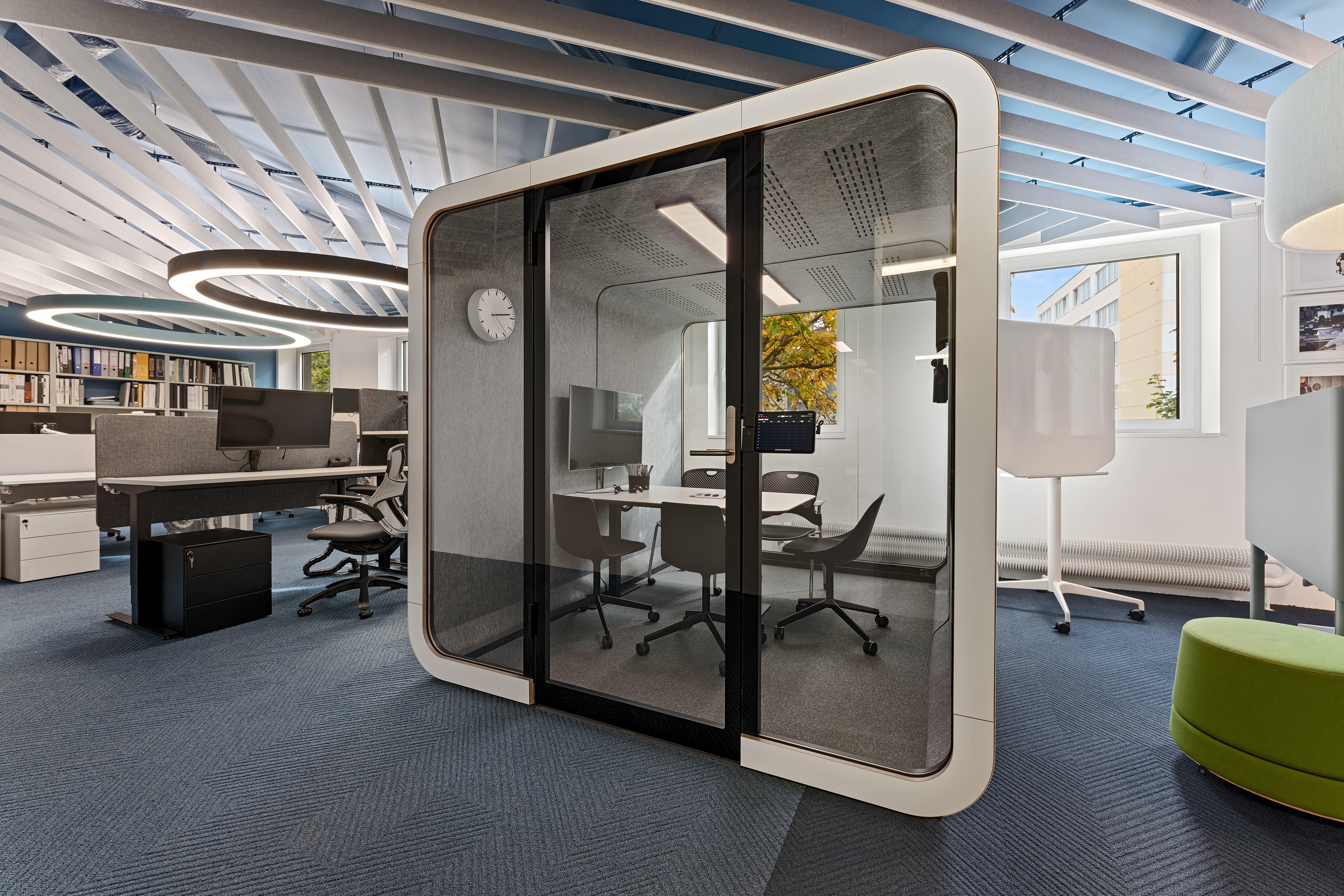 Po sloučení legendárních značek HermanMiller a Knoll pod jednu značku MillerKnoll došlo také k výraznému rozšíření portfolia nabízených produktů. Proto jsme se i my rozhodli rozšířit a zrenovovat prostory našeho showroomu, abychom mohli tuto bohatou nabídku našim klientům prezentovat. A co je u nás nového? Ačkoli na první pohled může vypadat interiér velmi podobně, nenechte se mýlit. Nová je prezentace produktů Knoll, včetně outdoor nábytku, který má své místo na nově vybudované venkovní terase. Díky rozšíření vnitřních prostor můžete u nás vyzkoušet největší akustickou budku 2Q od Framery. Kompletně jsme předělali zasedací místnost, kde je kromě mnoha nových produktů od HermanMiller a jiných značek k vidění i legendární křeslo Barcelona. Velmi pestrá a komplexní je prezentace akustiky - včetně obkladů, akustického řešení stropů, akustických dělících nebo solitérních prvků a podobně. Novinkou jsou u nás také praktické mobilní dělící stěny nebo lehce přestavitelné modulární dělící příčky MAARS s možností kombinace panelových výplní. A je toho mnohem víc! Těšíme se na Vaši návštěvu.