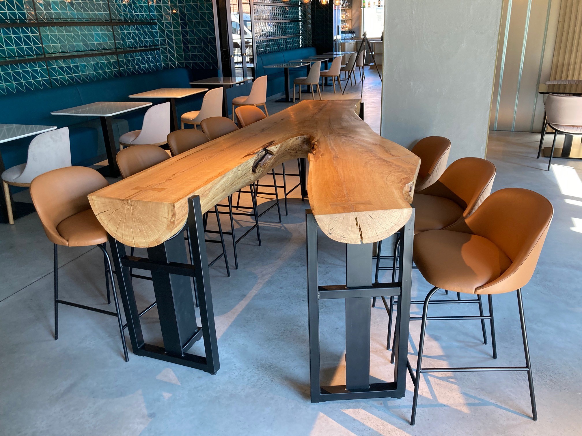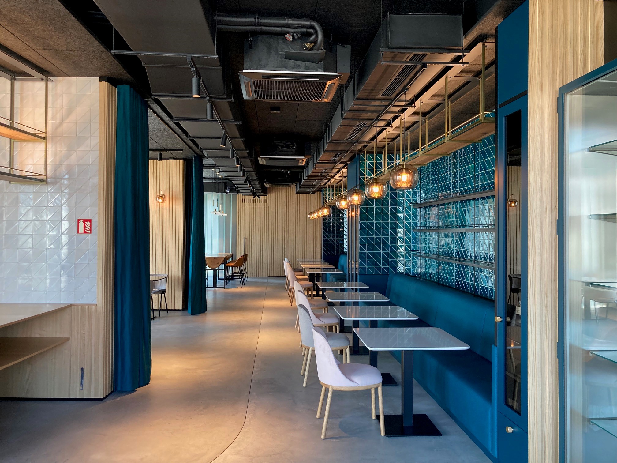 Interiér bistra jsme pomáhali vybavit nábytkem od společností Arper, Sancal, HAY, ale hlavně španělské společnosti Viccarbe, jejíž produkty Aleta a Funda jsou dominantou prostoru restaurace.