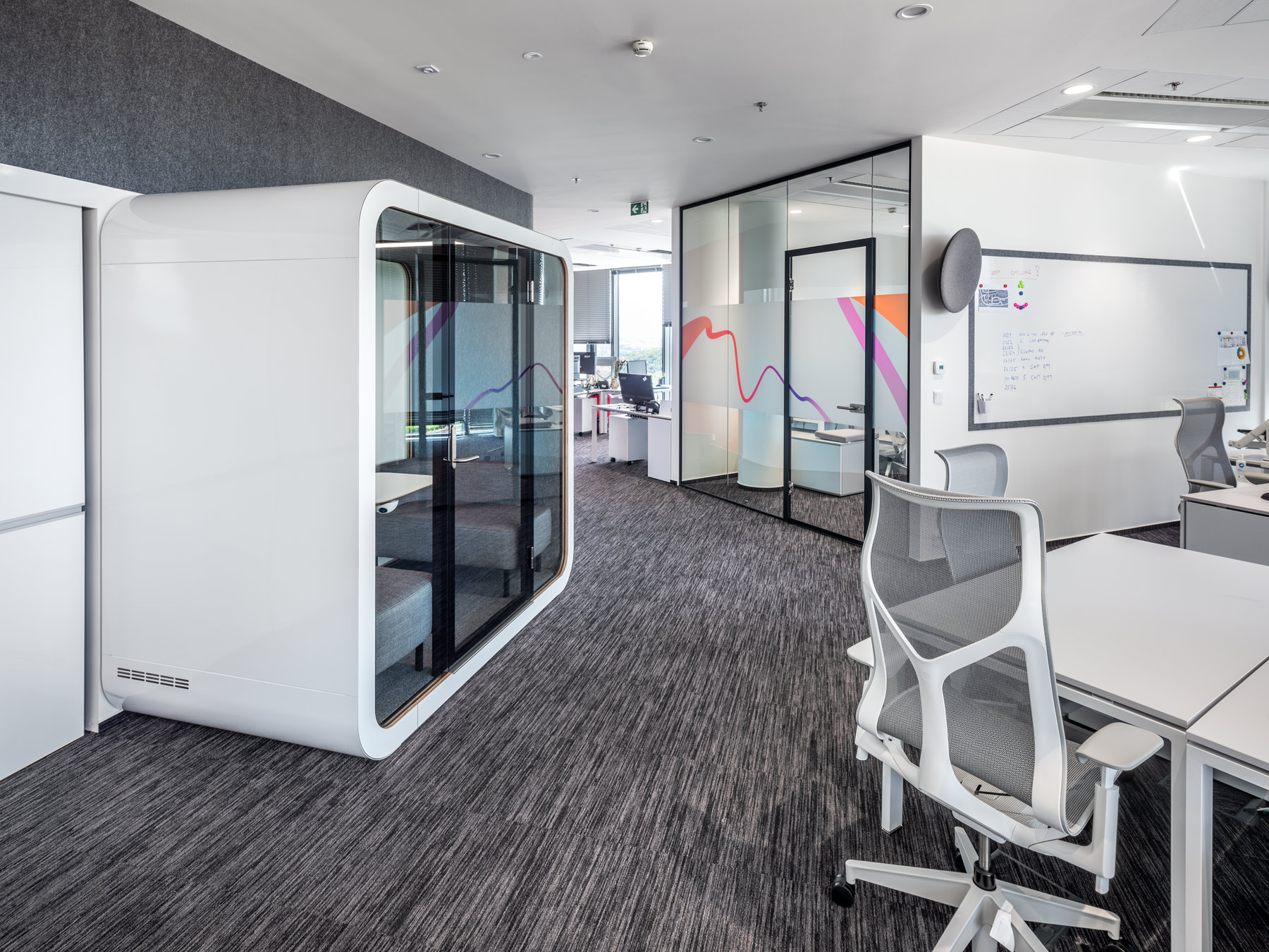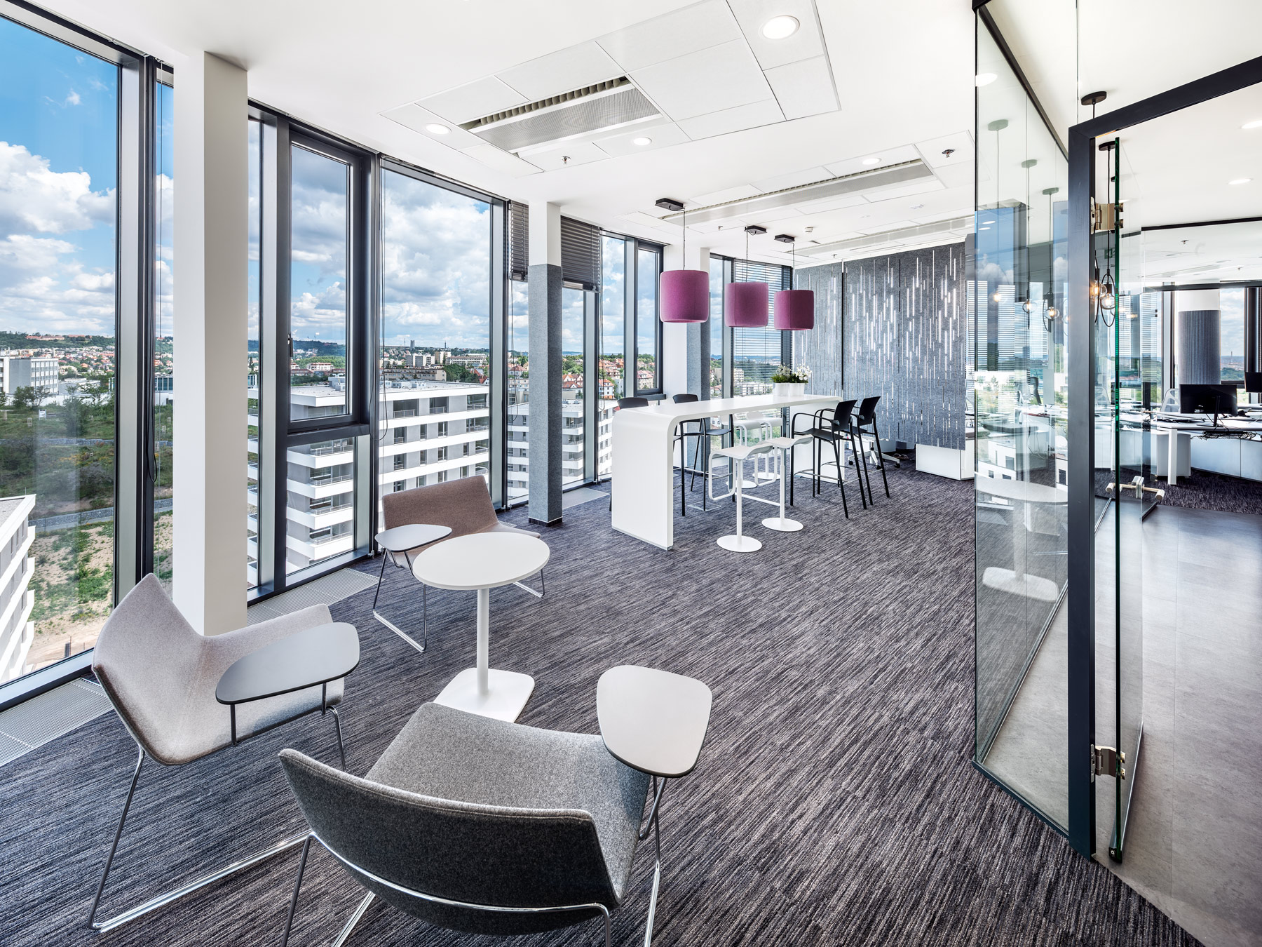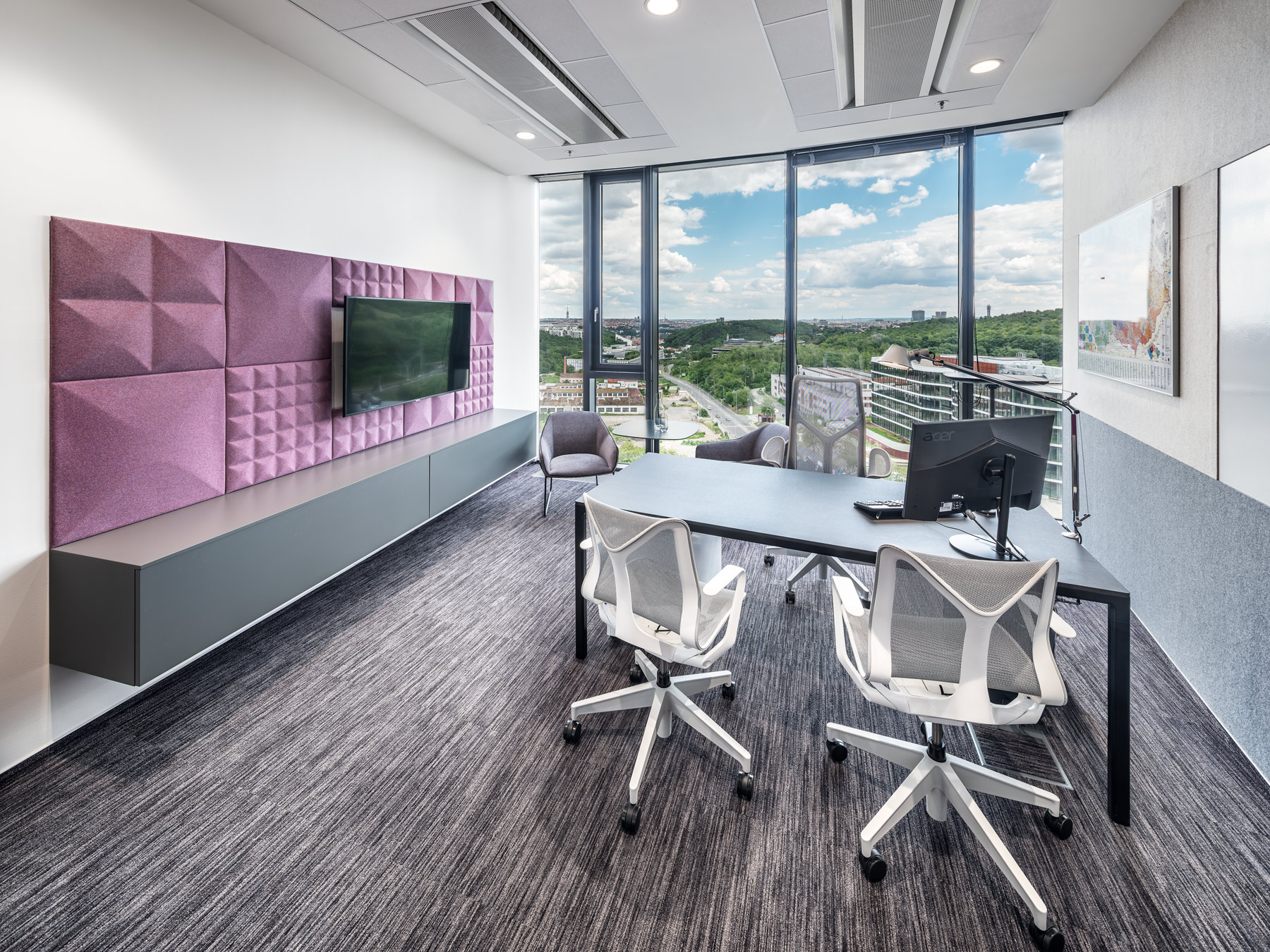 Pro energetickou skupinu MVV Energie CZ jsme zajišťovali vybavení interiéru ve spolupráci s Ing.arch. Evou Heyworth. Jednalo se o projekt pro více než 40 zaměstnanců do nové administrativní budovy Dynamica v pražských Radlicích. V projektu jsme řešili především ergonomii sezení, veškerý soft seating do relax zón a jednacích místností, a doplňky. Samozřejmostí je naprostý akustický komfort. Dalšími dodanými prvky byla například akustická budka pro 4 osoby Framery Q nebo velkokapacitní úložný prostor Bruynzeel.