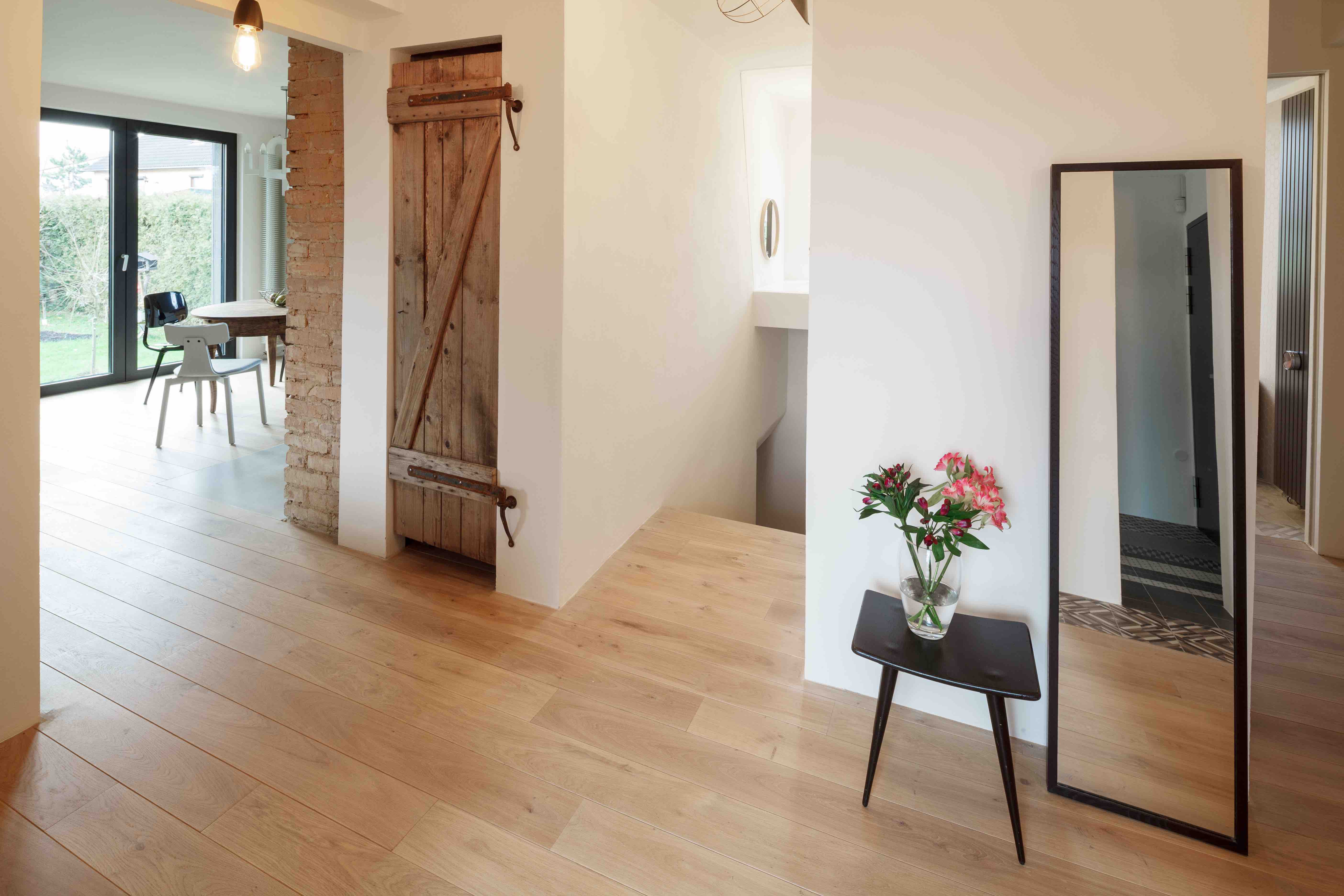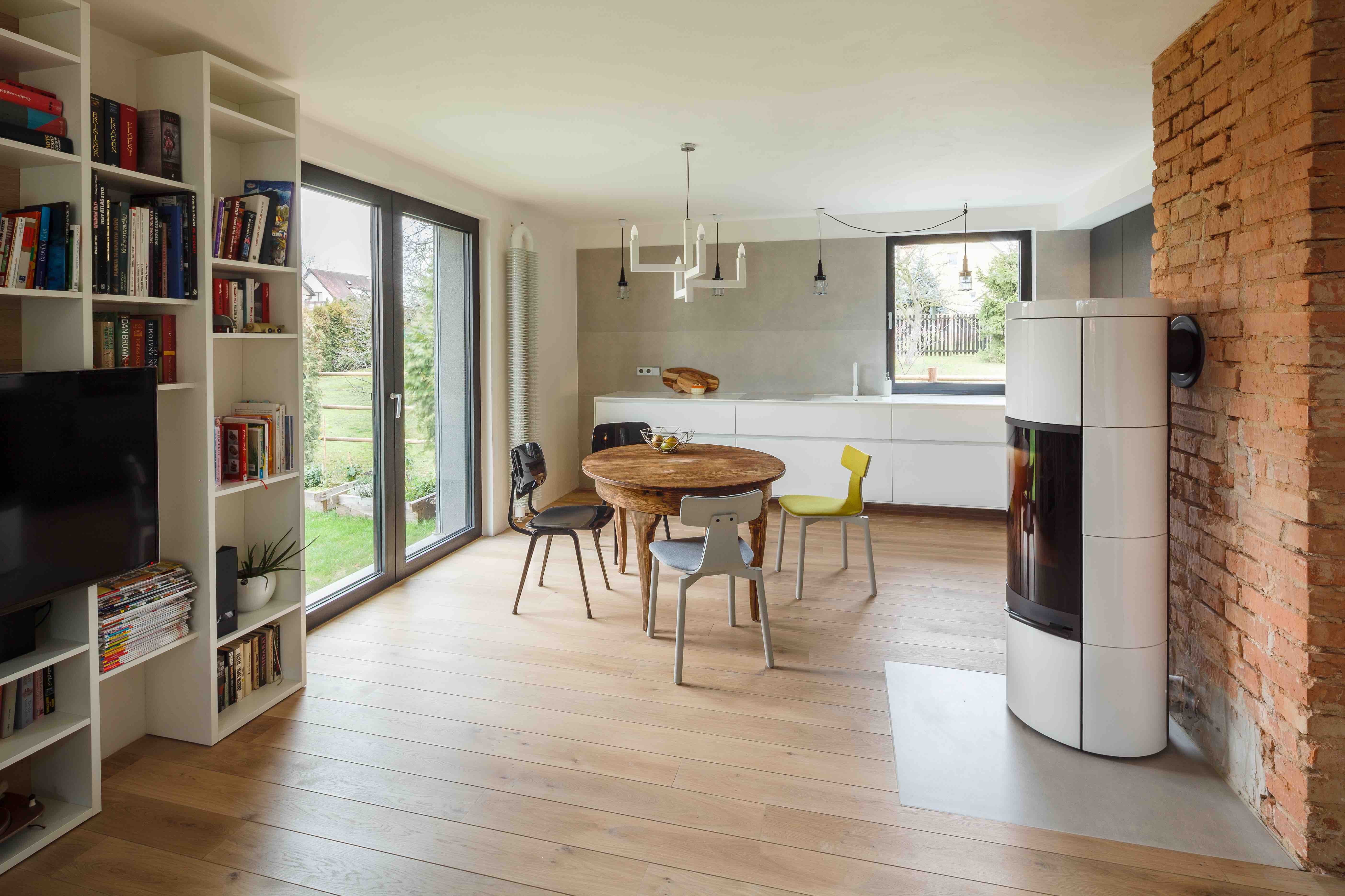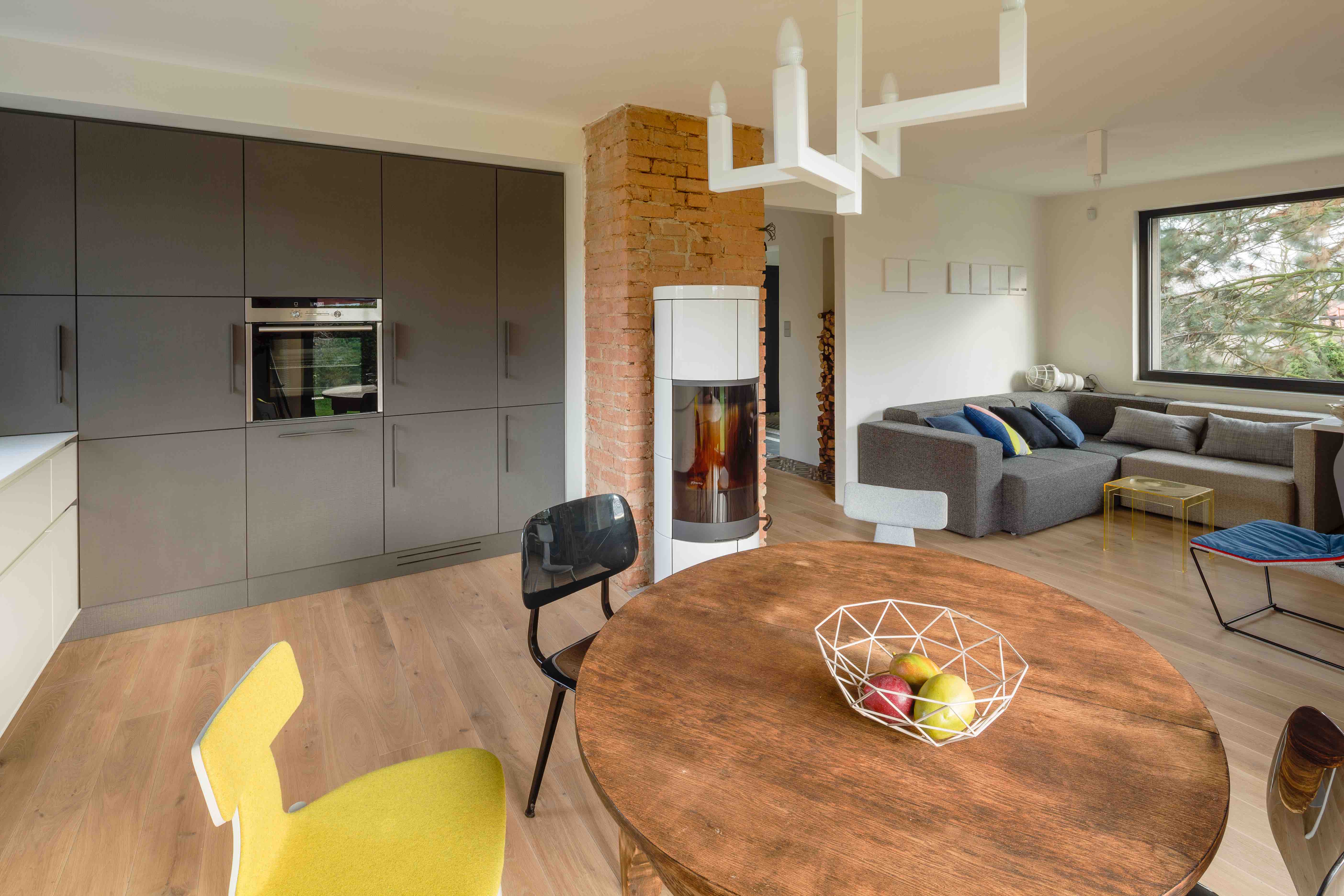 Uvnitř zástavby rodinných domů je skrytý jeden drobný, postavený v osmdesátých letech minulého století. Kompletní rekonstrukcí zejména interiéru se z něj stalo příjemné a útulné bydlení. Interiér je vzhledem k nedostatku prostoru navržen jednoduše a účelně. Většina ploch je řešených ve světlých odstínech kvůli maximálnímu odrazu světla. Převážná většina vybavení je vyrobena na míru, doplněna pouze několika designovými prvky mobiliáře v kombinaci s pár historickými akcenty nalezenými na půdě.