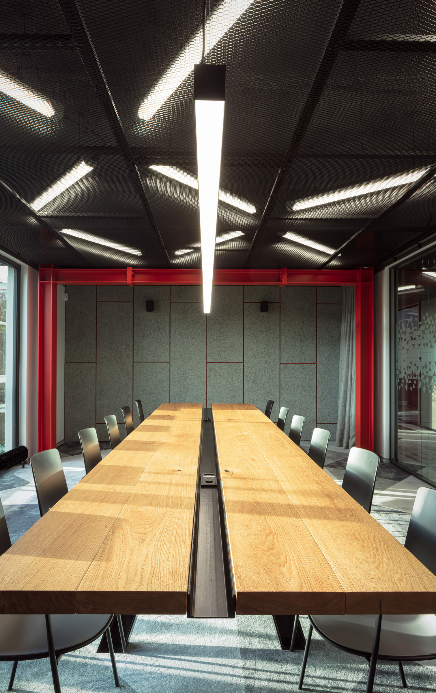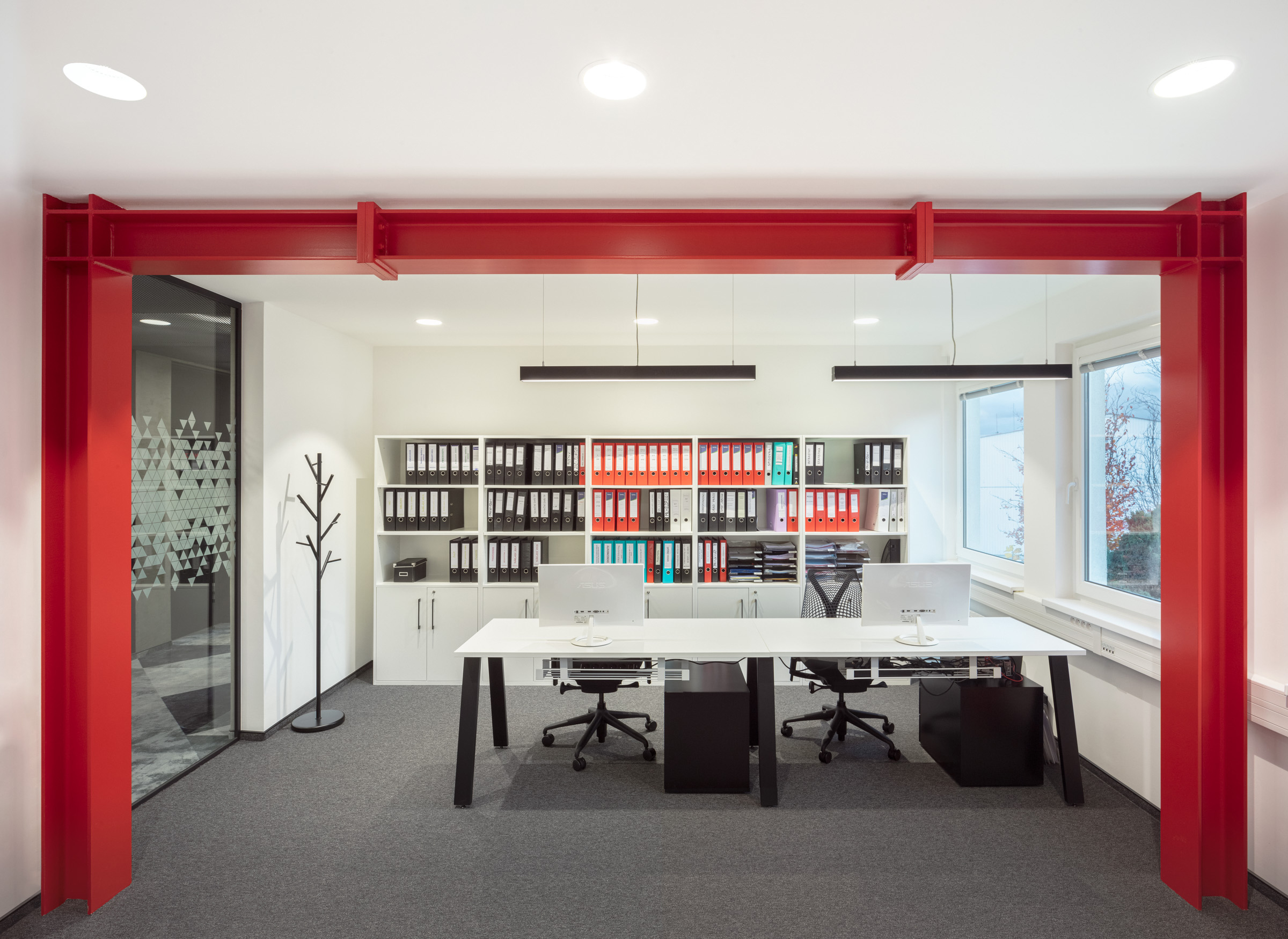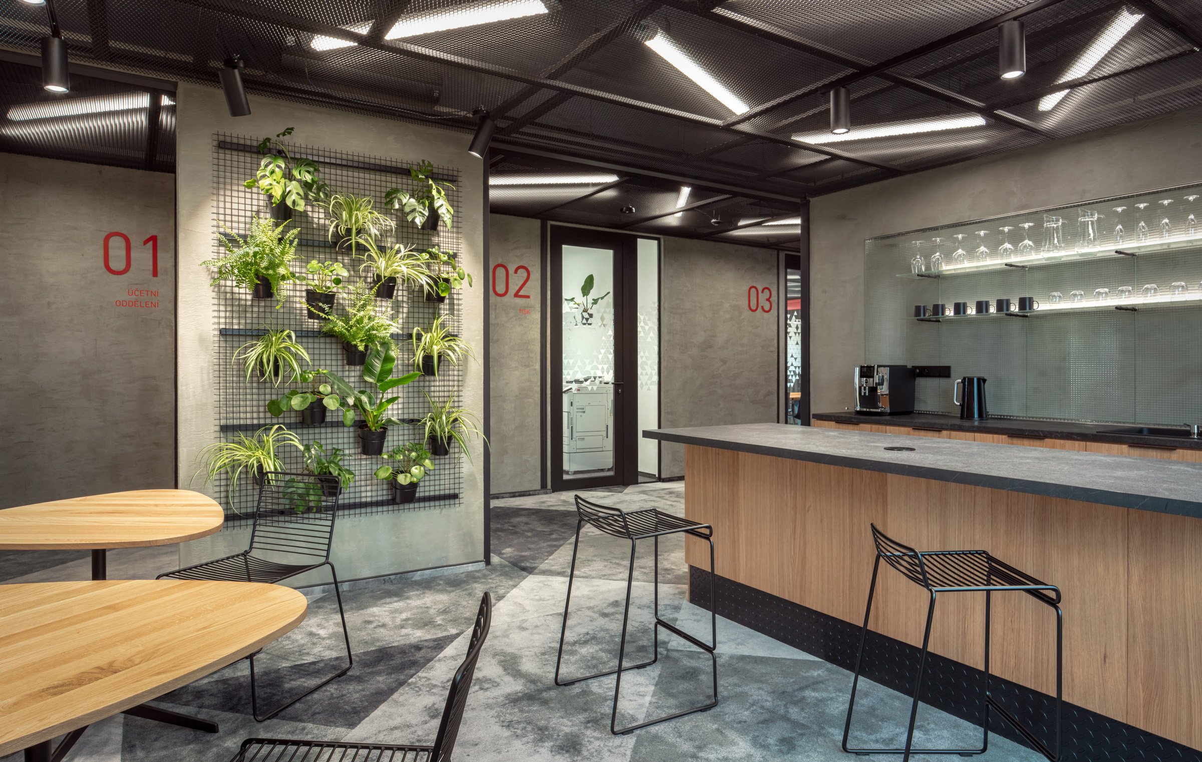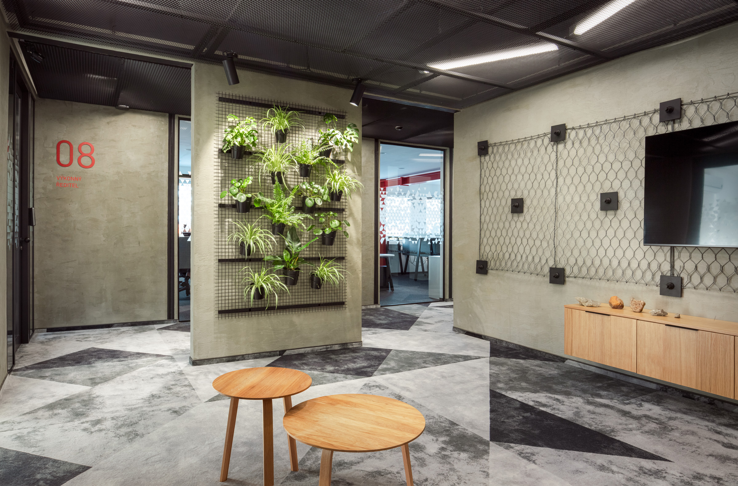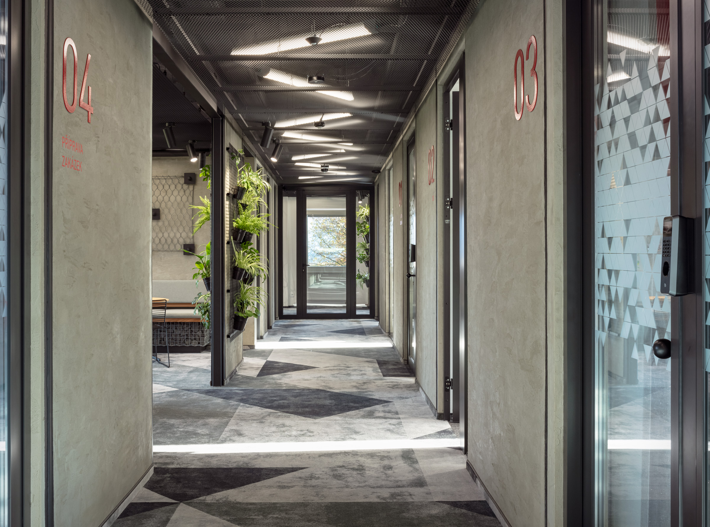 Nové kanceláře stavební společnosti Strix v Chomutově jsou netradiční tím, že ve svém interiéru přiznávají surovost stavebních materiálů jako nosných prvků designu. Kombinace betonové stěrky, ocelových traverz a kovových roštů stylově ladí a významově souzní s pracovním zaměřením firmy. A jednoduše - je vkusná a originální. Z naší strany byly dodány ergonomické židle HermanMiller SAYL, kancelářské stoly Puzzle a kontejnery cre8 Storage. Dále jsme interiér oživili akustickým sezením BuzziCube a stolky Bella od značky HAY. Industriální design podtrhují drátěné židle a barovky HAY Hee, které se směle dají využít i na venkovní posezení. V zasedacích místnostech jsem pak použili pro svou jednoduchost a pohodlnost velmi oblíbené židličky ENEA Lottus. Vše jednoduché, funkční, praktické.