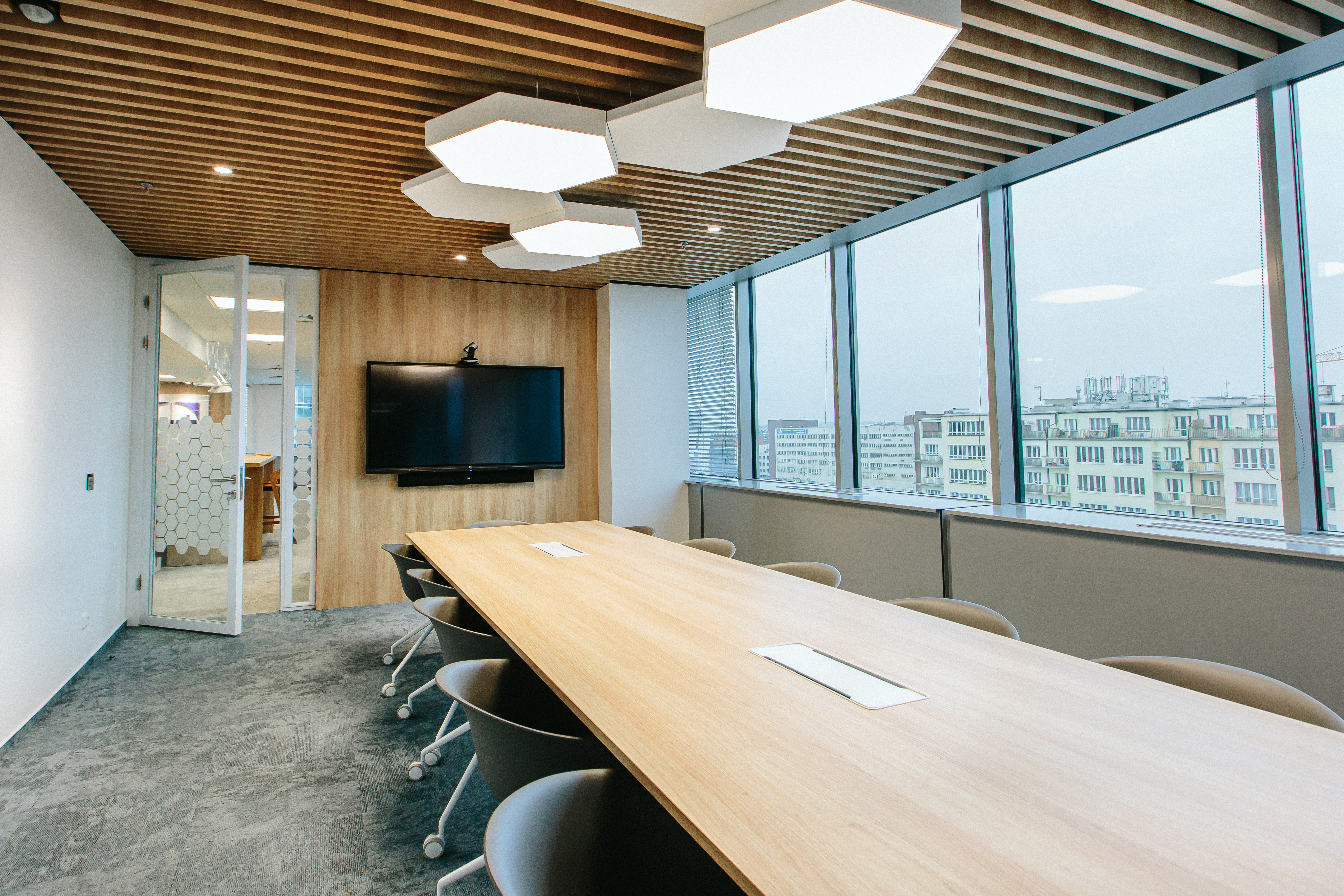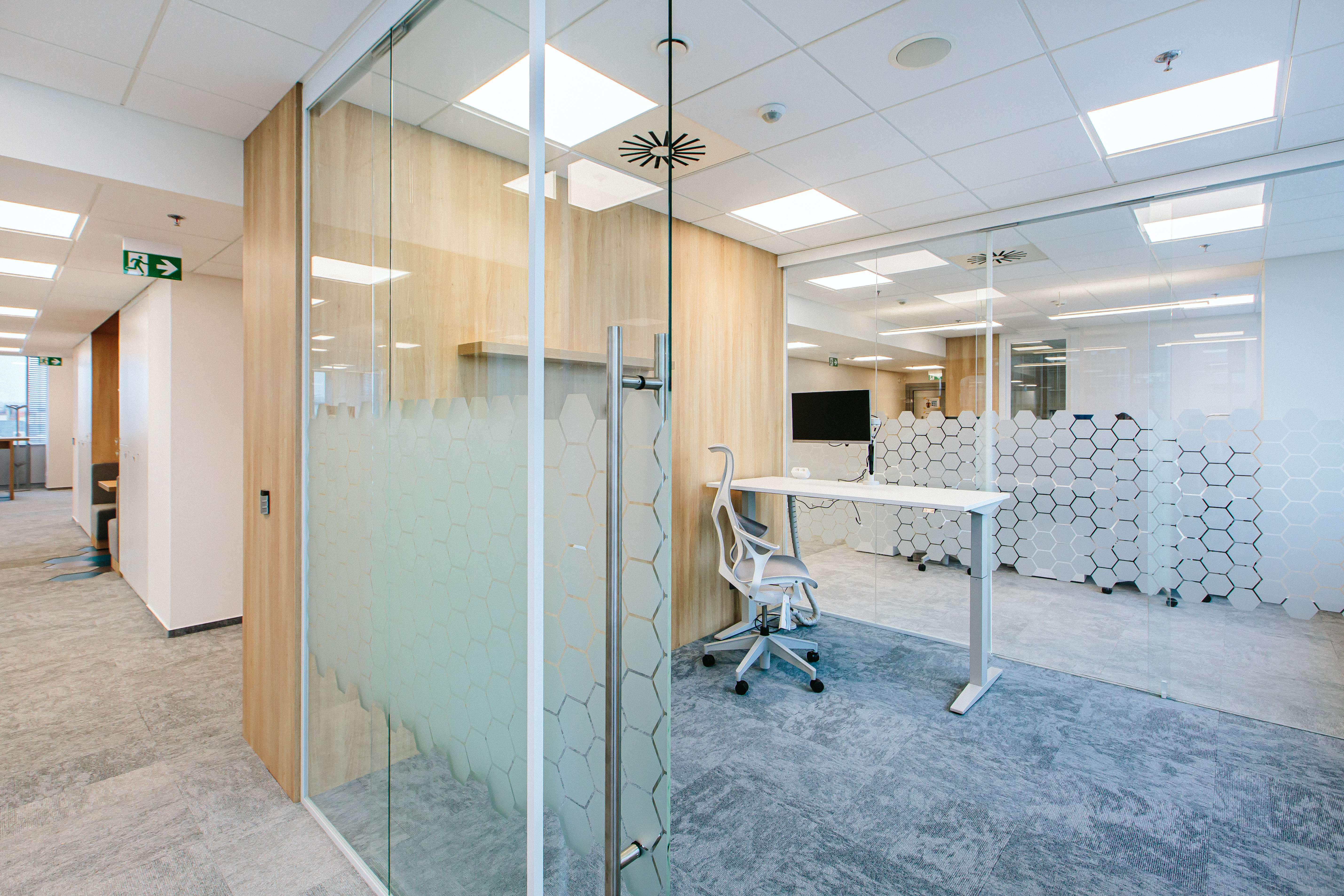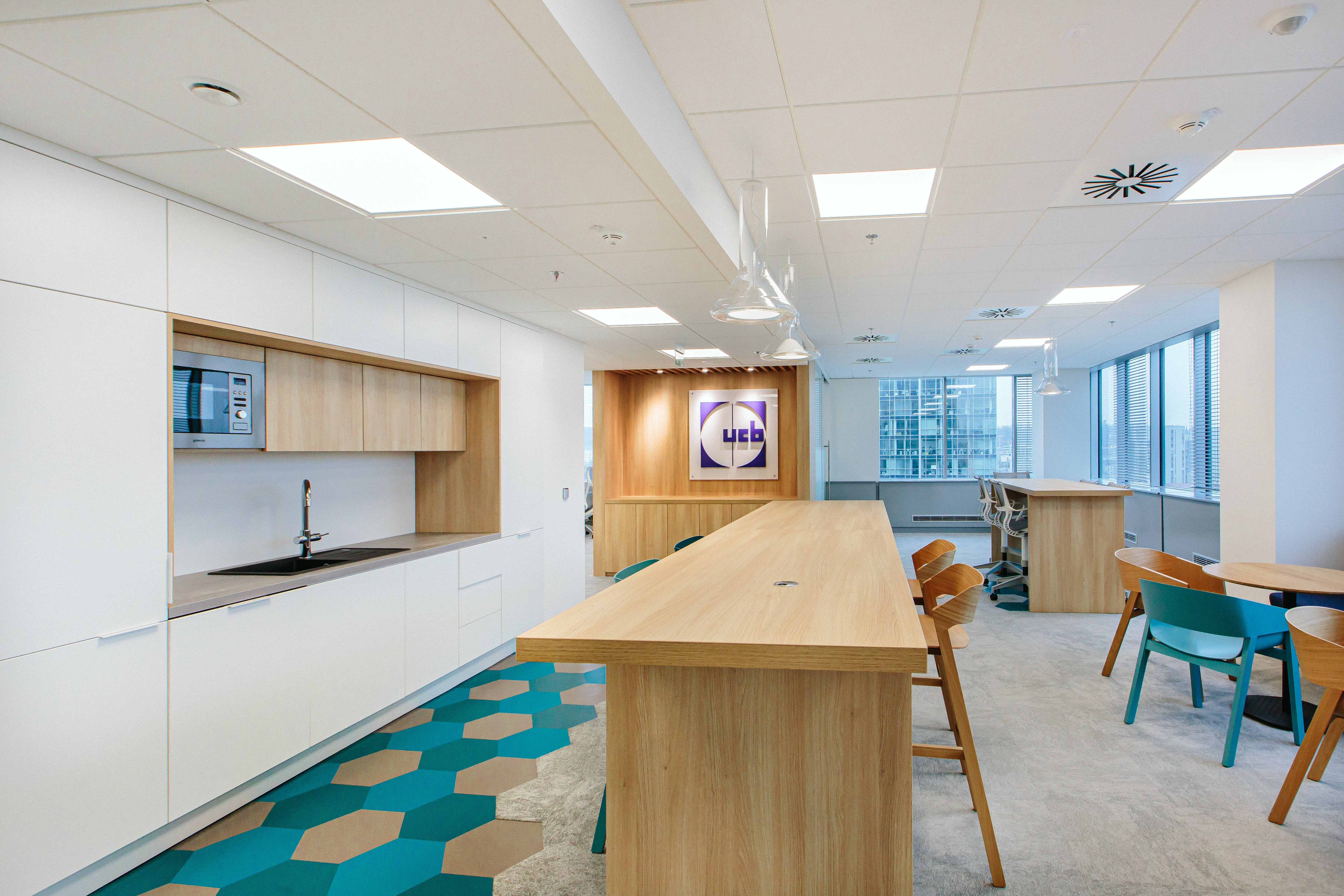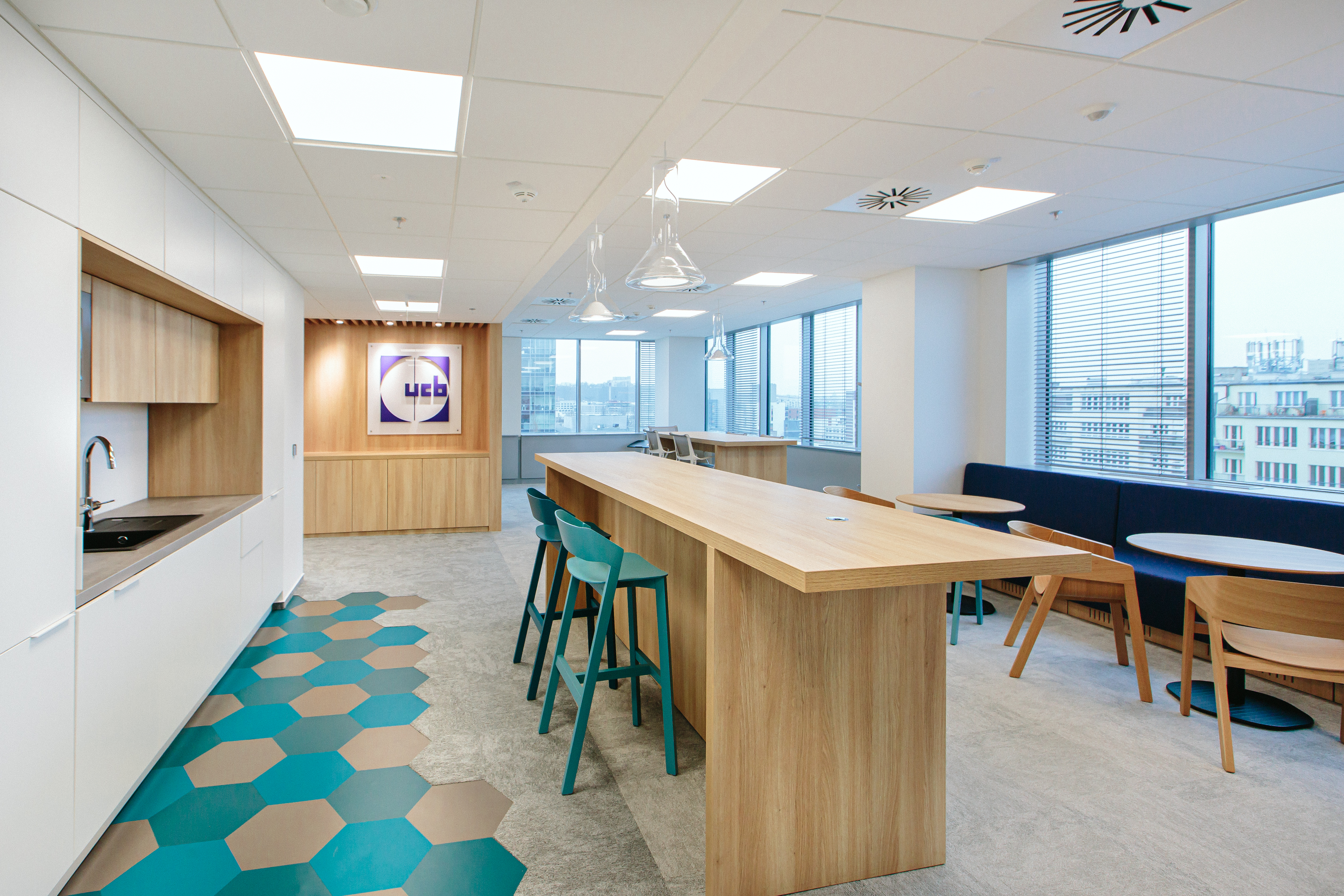 Nový kancelářský fit-out pro UCB Pharma v budově TOKOVO na Praha 7. Rozloha nových kanceláří je 250 m2- projekt pro zhruba 12 zaměstnanců. Prostory v původním stavu bylo potřeba zcela modernizovat a vdechnout jim zcela nový ráz. Bylo zapotřebí citlivě reagovat na limity budovy, která pochází ze 70. let minulého století. Uspořádání dispozice se soustředilo na vytvoření pracovního prostředí odpovídajícího konceptu openspace s možností částečného oddělení a vytvoření soukromí pro soustředěnou práci. V interiéru je hodně skla, dřevěné obklady příček působí teple a navzdory relativně malému prostoru se podařilo zasadit i spousty neformálních zón s různými typy sezení a zasedací místnost. Celkové uspořádání obsahuje měkké lavice a singl křesílka v common area, ušáky, sezení typu coupé, solidní stůl v zasedací místnosti s odlehčenými židlemi, netradiční vysokou recepci spojenou s kuchyňkou. Výrazné logo naproti vstupu, spousty úložného prostoru, šatnu a copy point. Pečlivě vybraný design kvalitních svítidel doplnil charakter vzdušného a čistého prostoru. Pracovní stanice tvoří výškově stavitelné motorické stoly se společnými podnožemi. Jednotlivá pracoviště dělí akustické paravány. Pracovní židle byly vybrány velmi pečlivě s ohledem na ergonomii a celkový design interiéru.