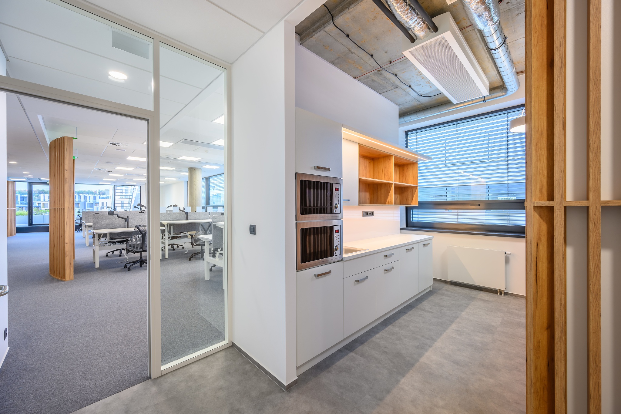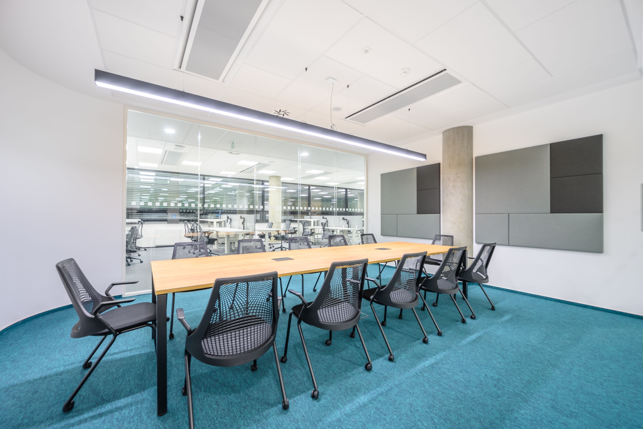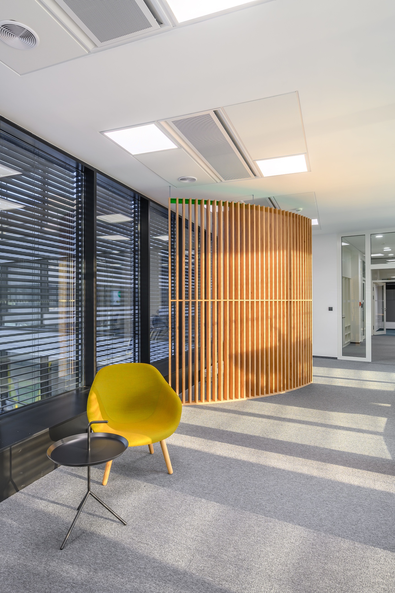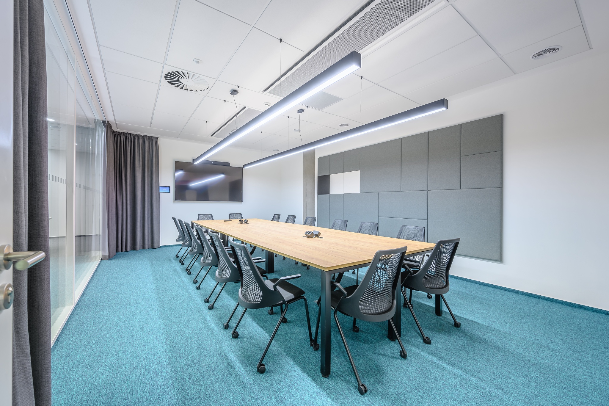 V nových prostorách společnosti Wrike zaznívají příjemné barevné přírodní tóny dřeva v kontrastu s přiznanou průmyslovou šedí pohledového betonu. To vše oživeno paletou jasných barev použitých na podlahových krytinách. Do takto komplexně řešeného projektu jsme přispěli jednak mnoha originálními prvky atypického nábytku, ale také našimi osvědčenými evergreeny od společnosti Herman Miller, Hay a Enea. Pracoviště jsme vybavili ergonomickou novinkou od CBS - rameny Lima a skvělými kancelářskými židlemi Sayl. Naopak zasedací místnosti zdobí naše řada meetingových stolů cre8 Puzzle a aby ladily s pracovišti, i zde jsou použity židle Sayl, ovšem ve své zasedací podobě. Jedním prvkem tak vznikl propojený harmonický celek.
