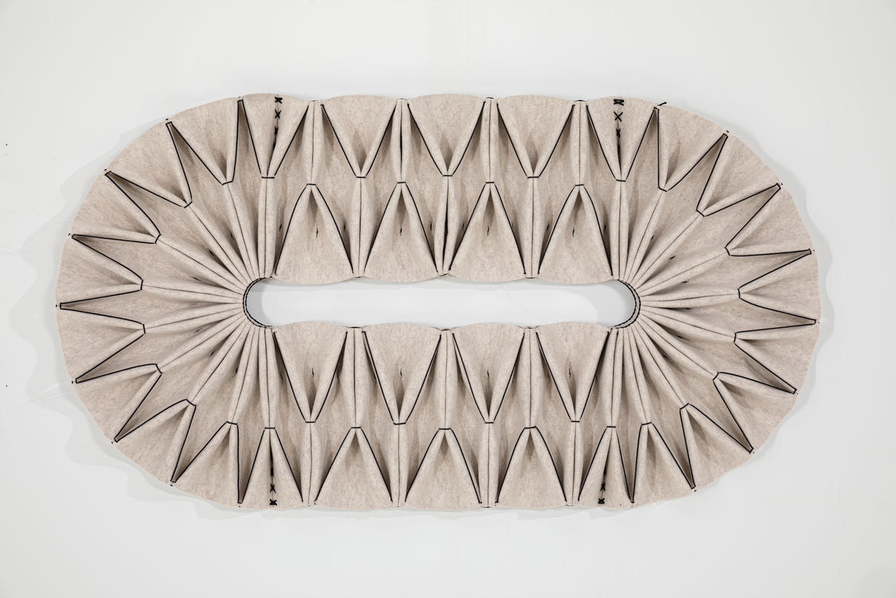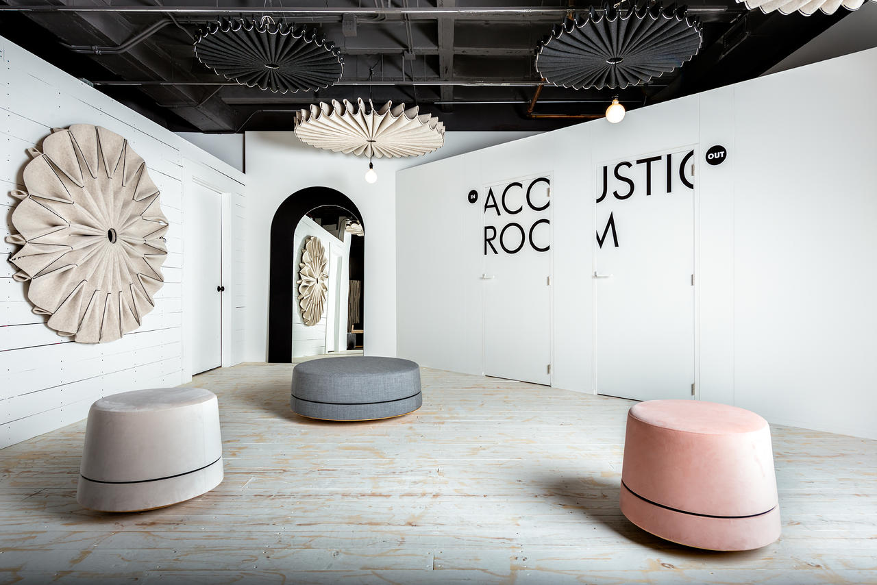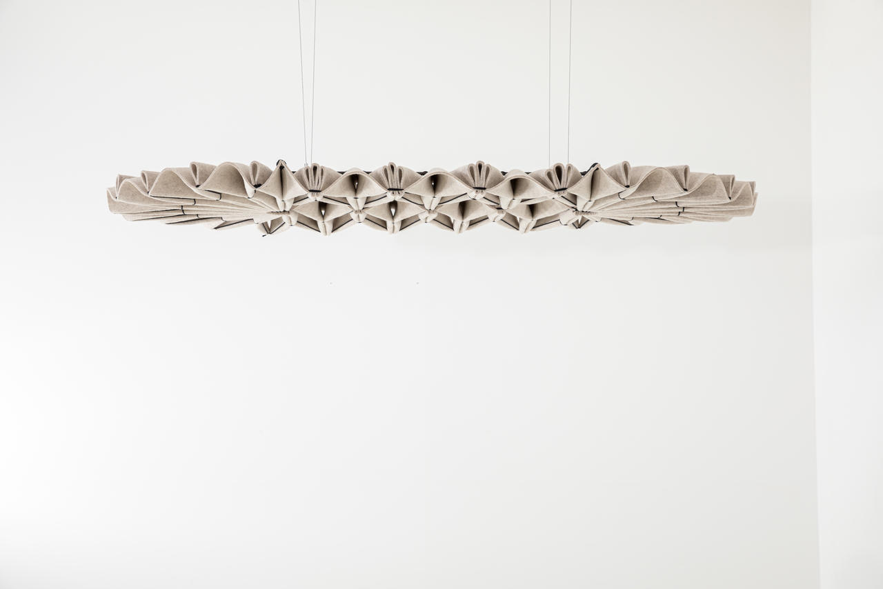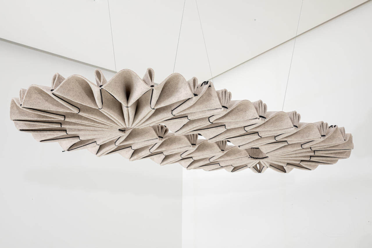 Experience the exceptional acoustic performance of BuzziPleat, delivered by its architectural folds. The large-scale, yet lightweight sculptural forms can be suspended from the ceiling or wall-mounted.
