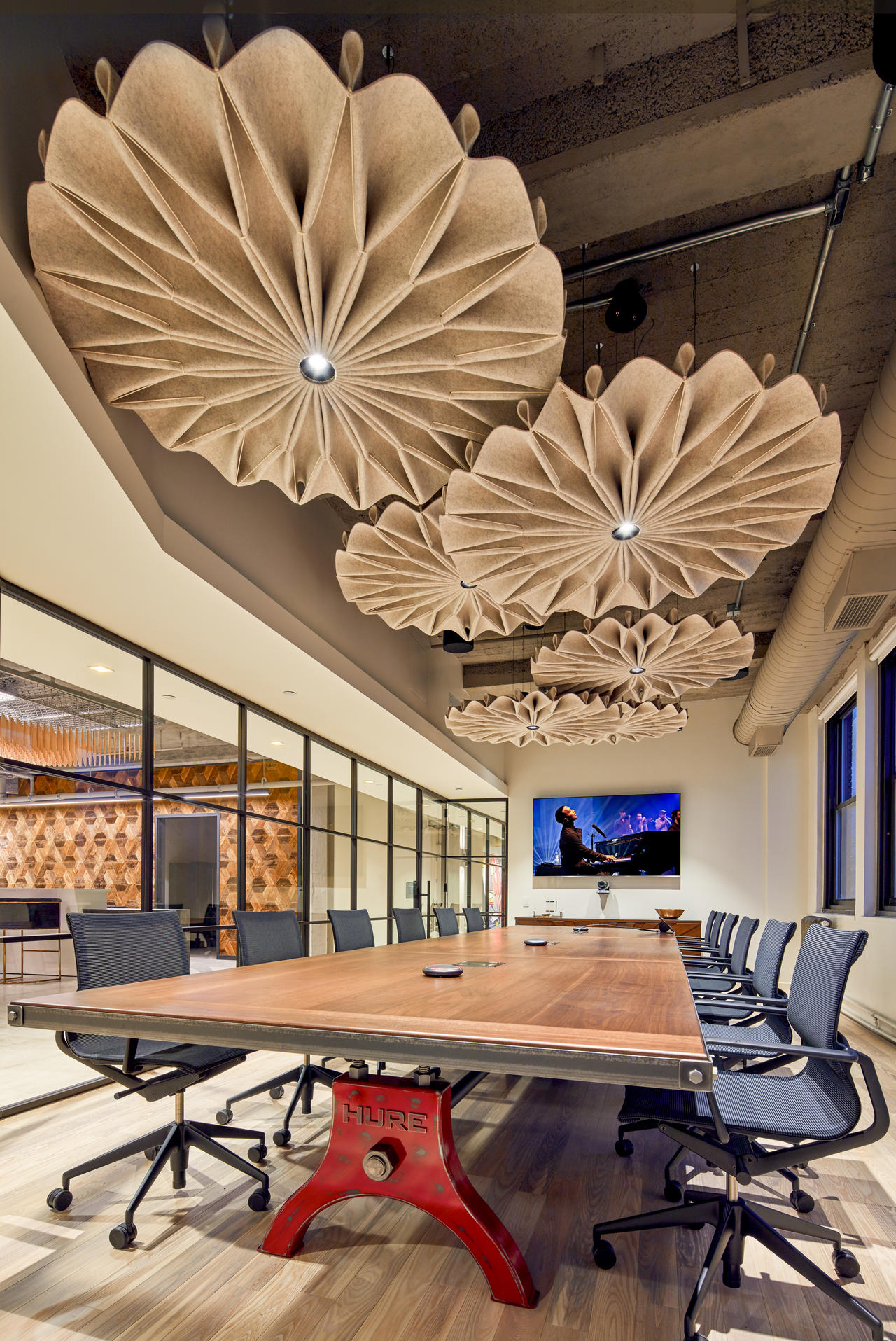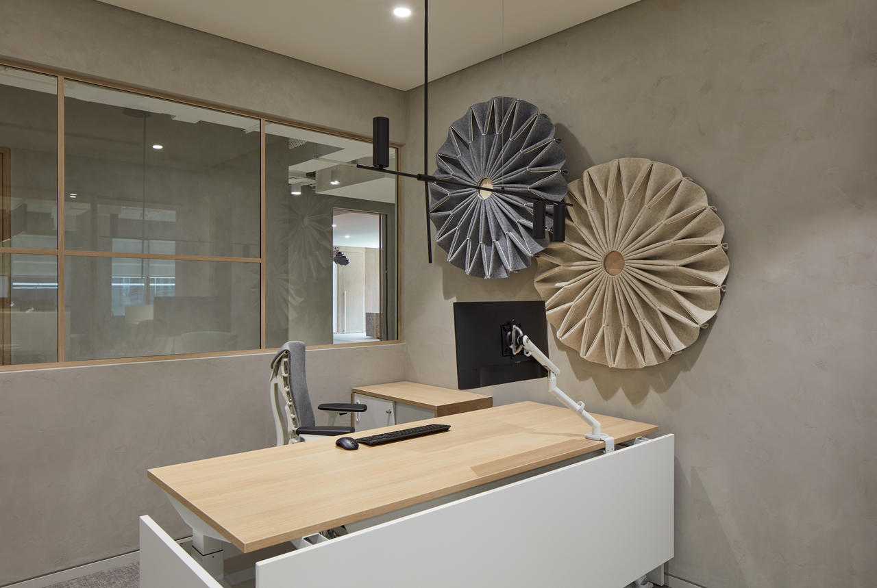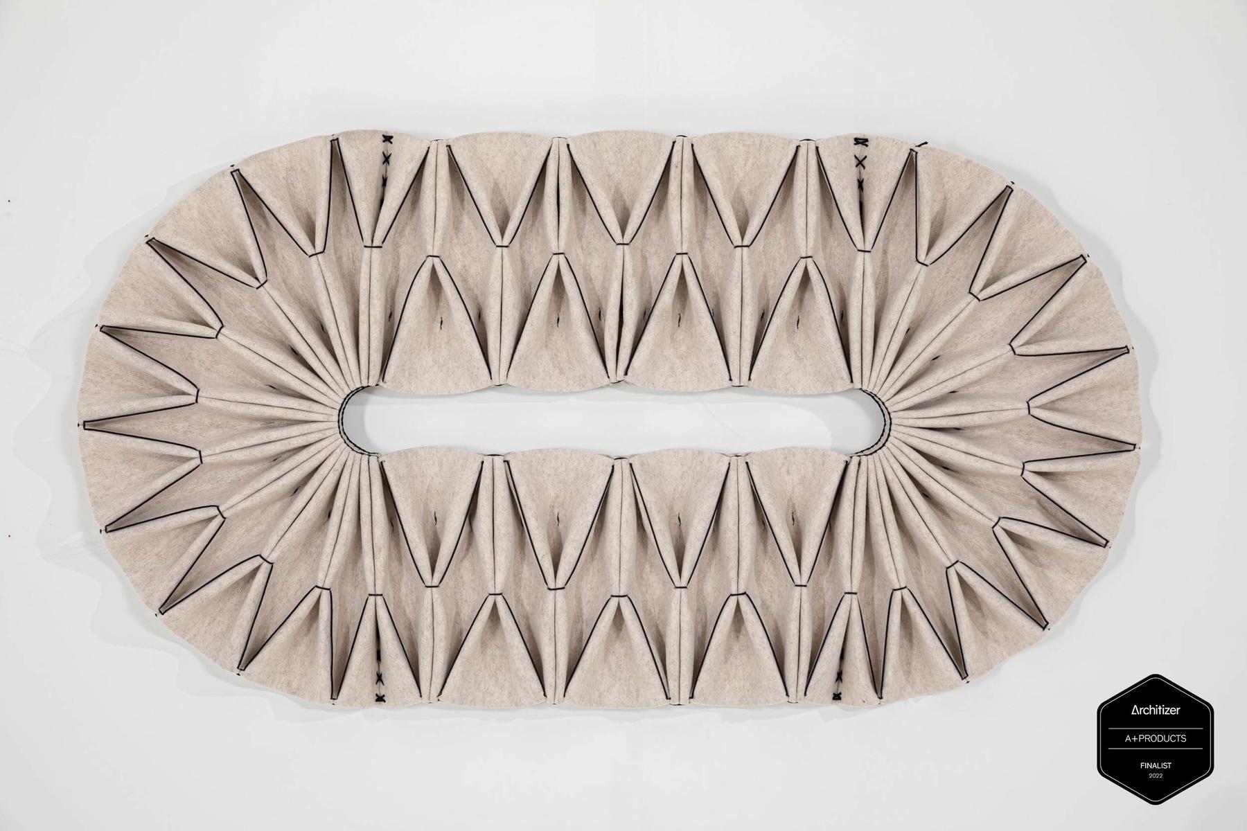 Experience the exceptional acoustic performance of BuzziPleat, delivered by its architectural folds. The large-scale, yet lightweight sculptural forms can be suspended from the ceiling or wall-mounted.