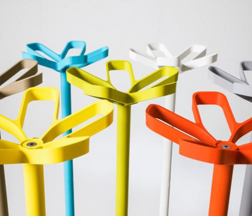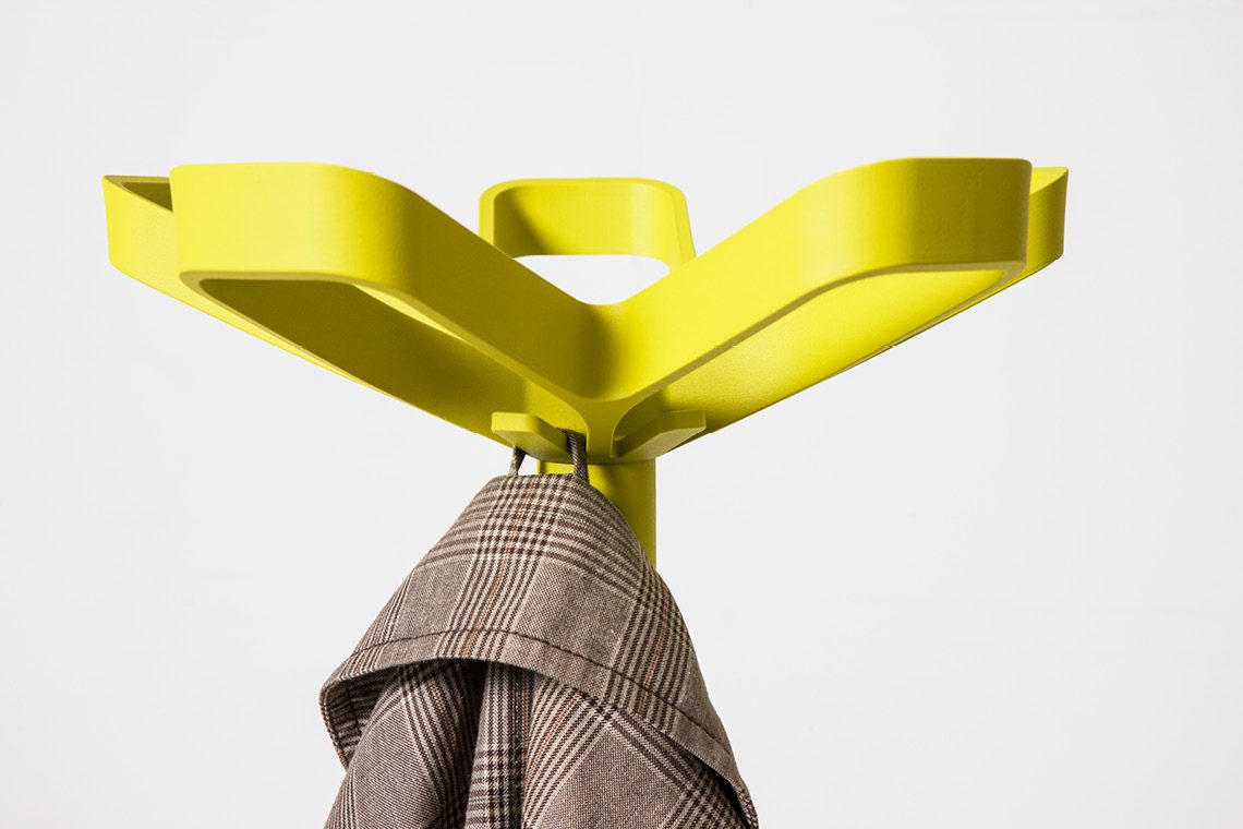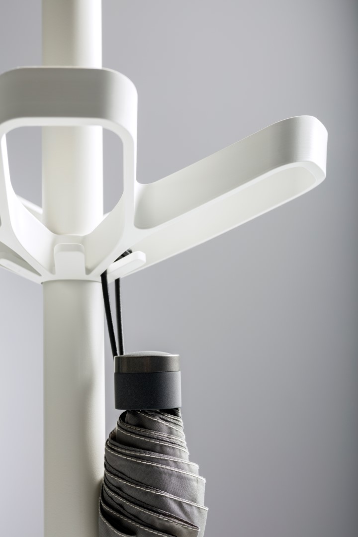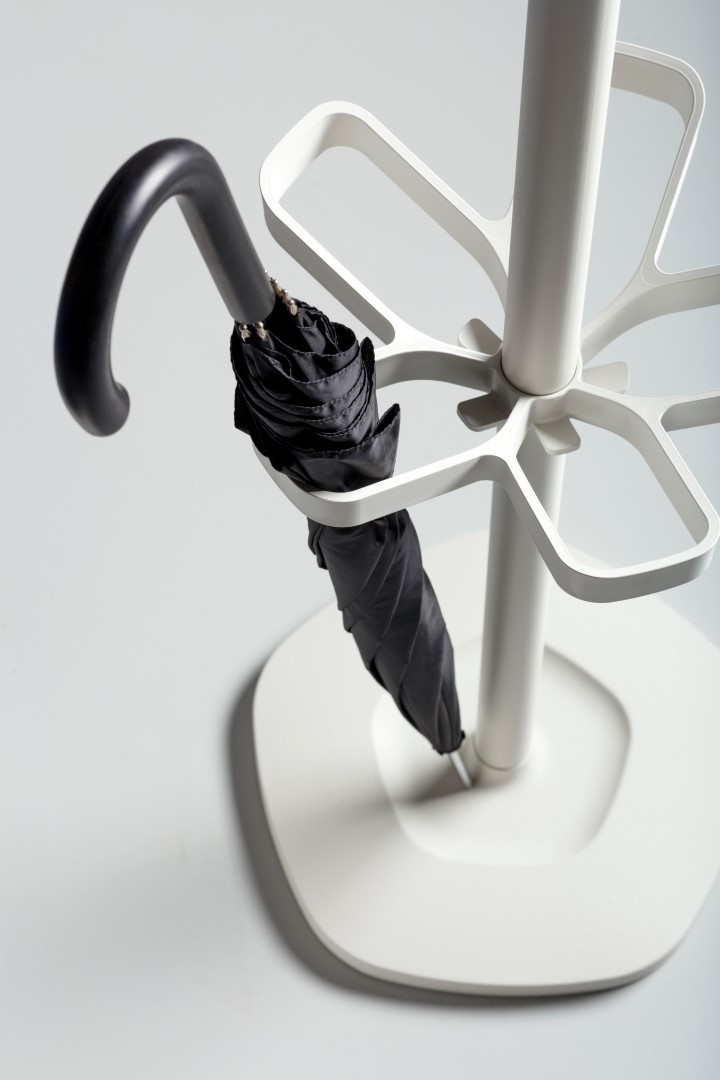 The prime characteristic of Flower is the beautifully lined wardrobe crown. Making sure that the coat rack will accommodate at least ten coats. The heavy cast iron base ensures optimal stability. Flower is available in two versions: with or without an integrated umbrella holder, while eight contemporary colours offer plenty of choice.