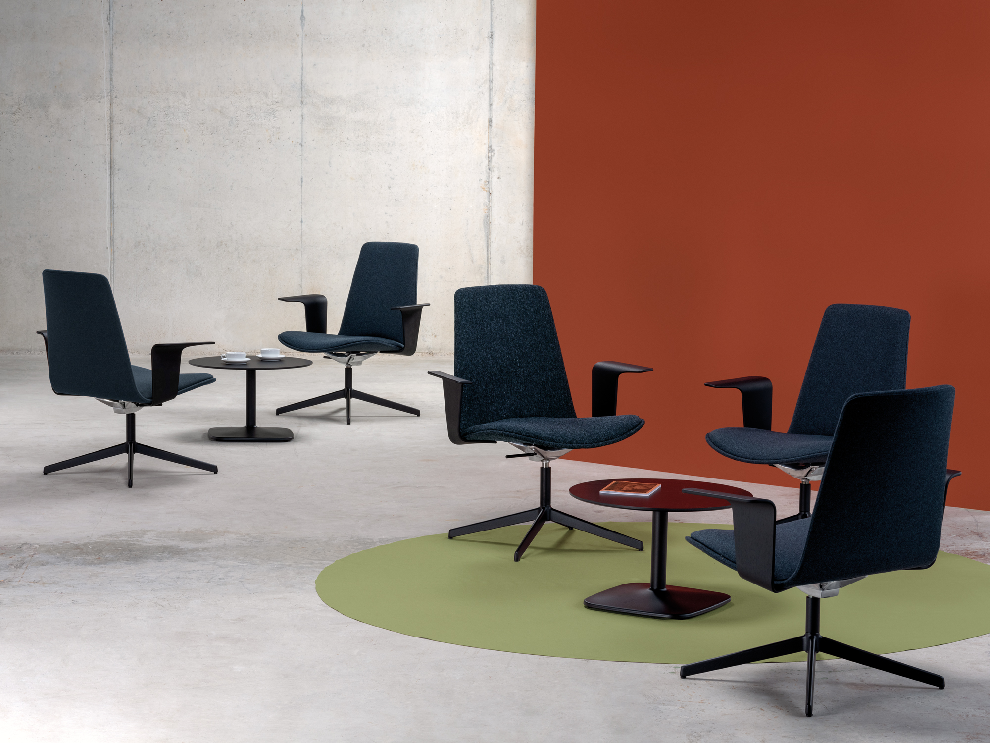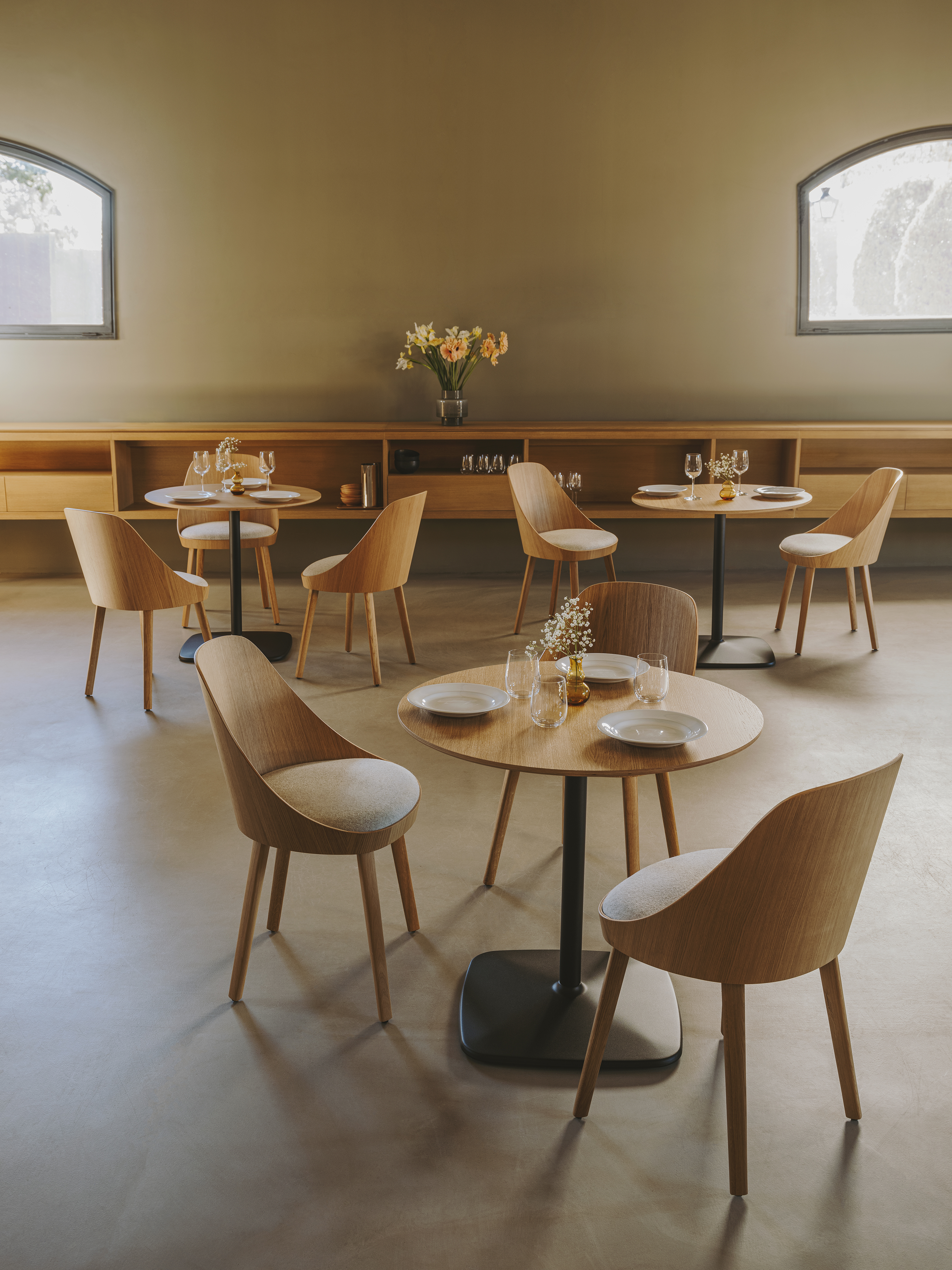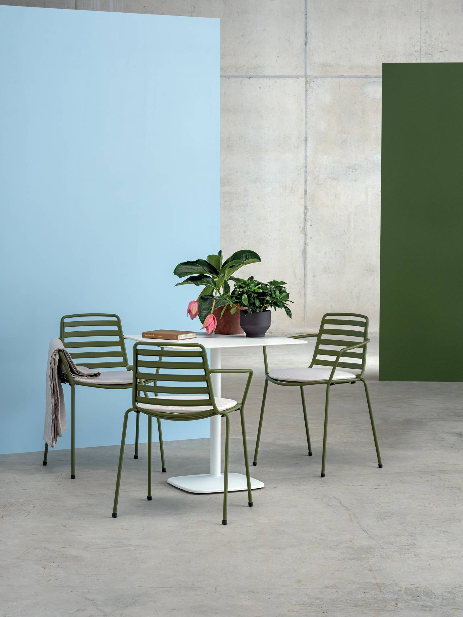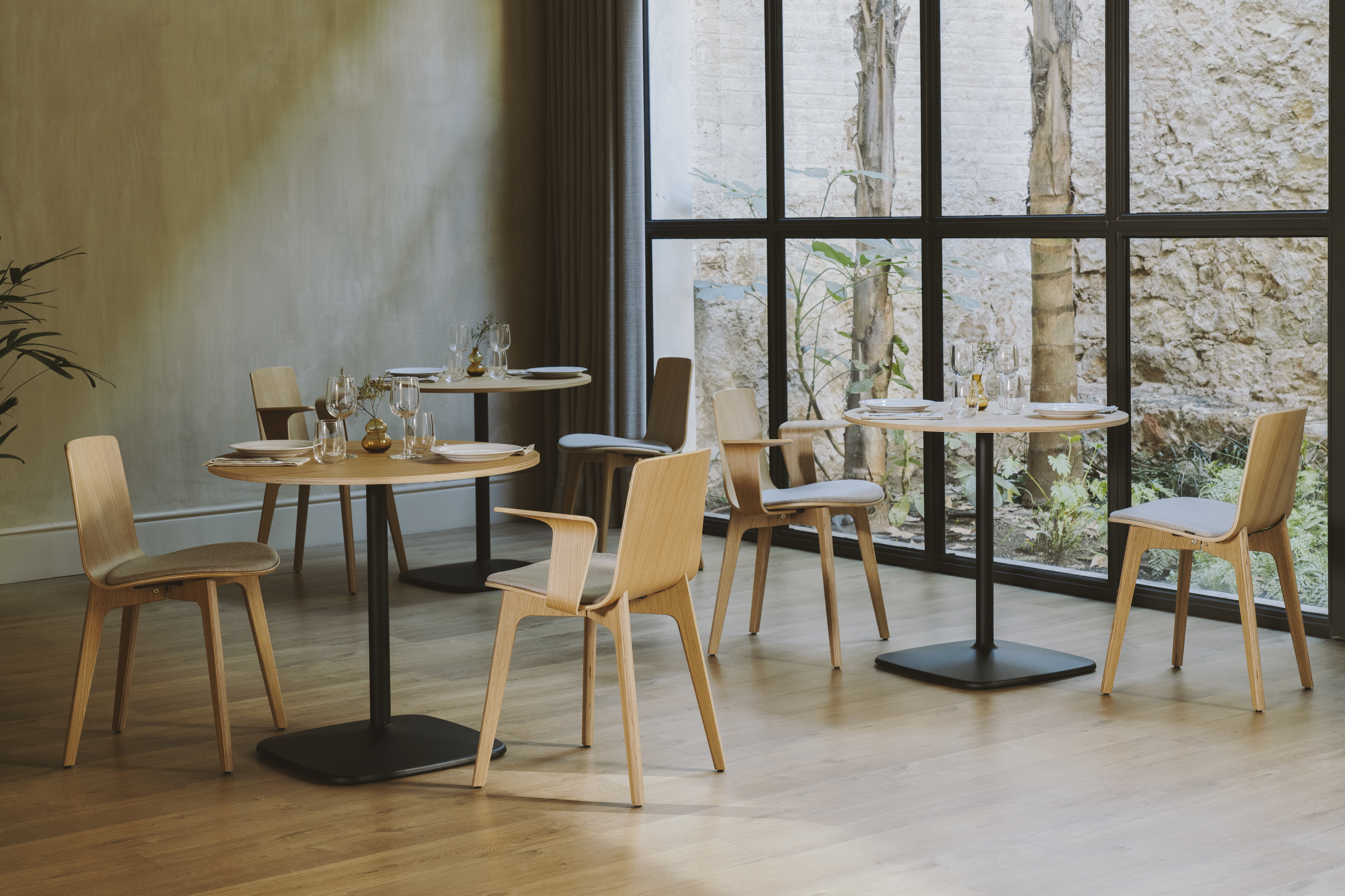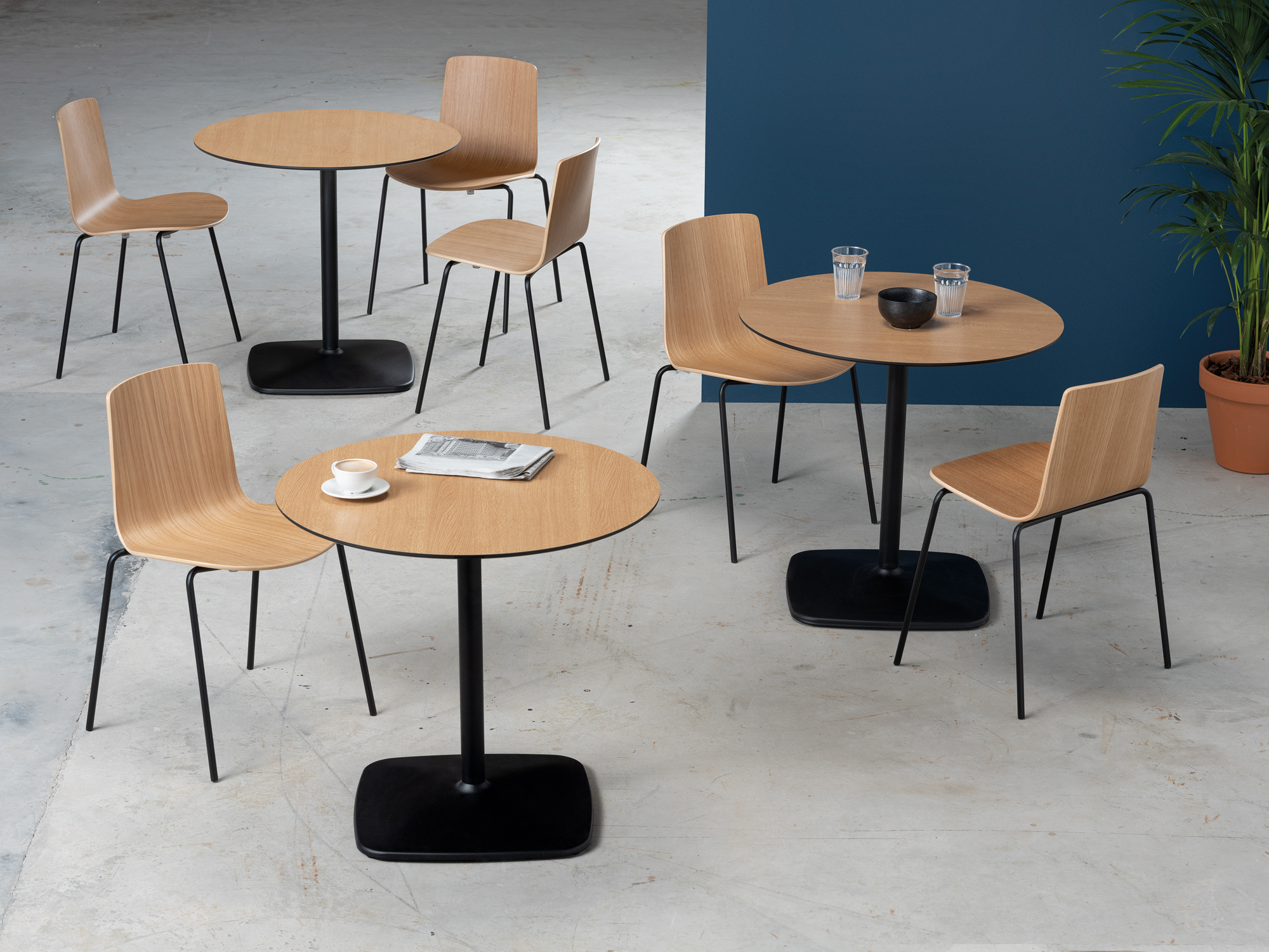 The Iron table range all boast an elegant, architectural steel base. The lacquered steel base provides absolute stability, while different heights and shapes offer variations ideal for any setting.