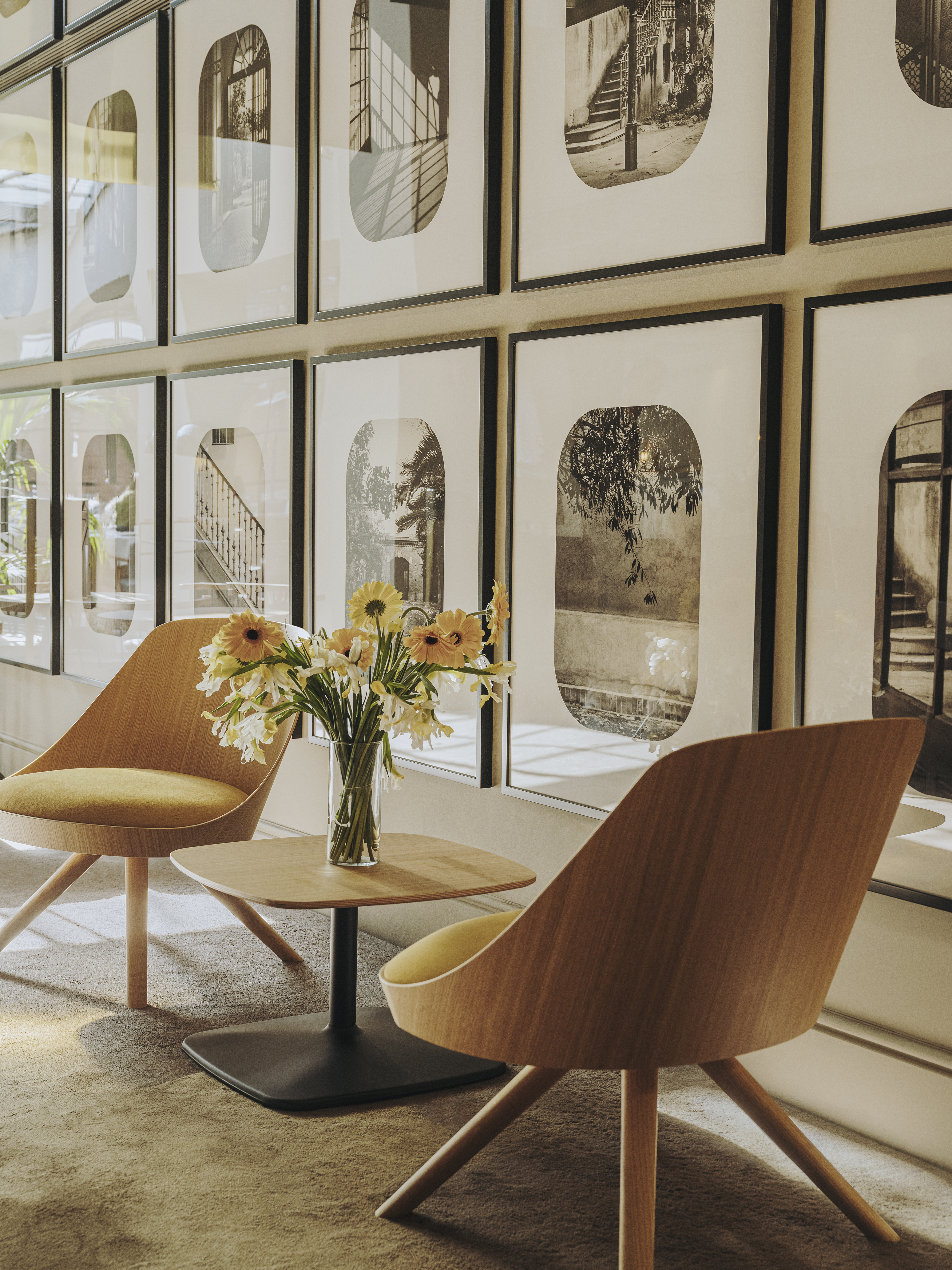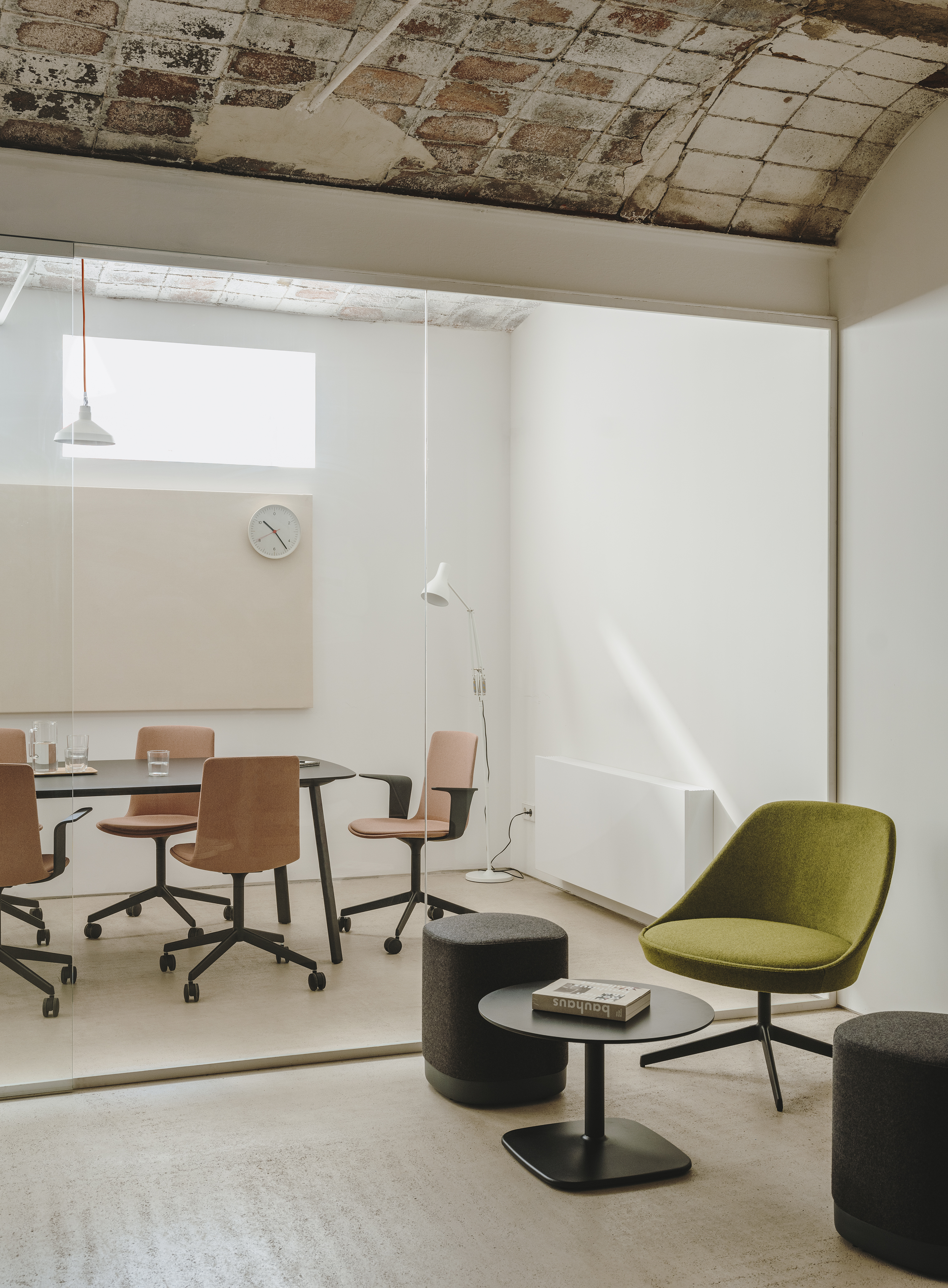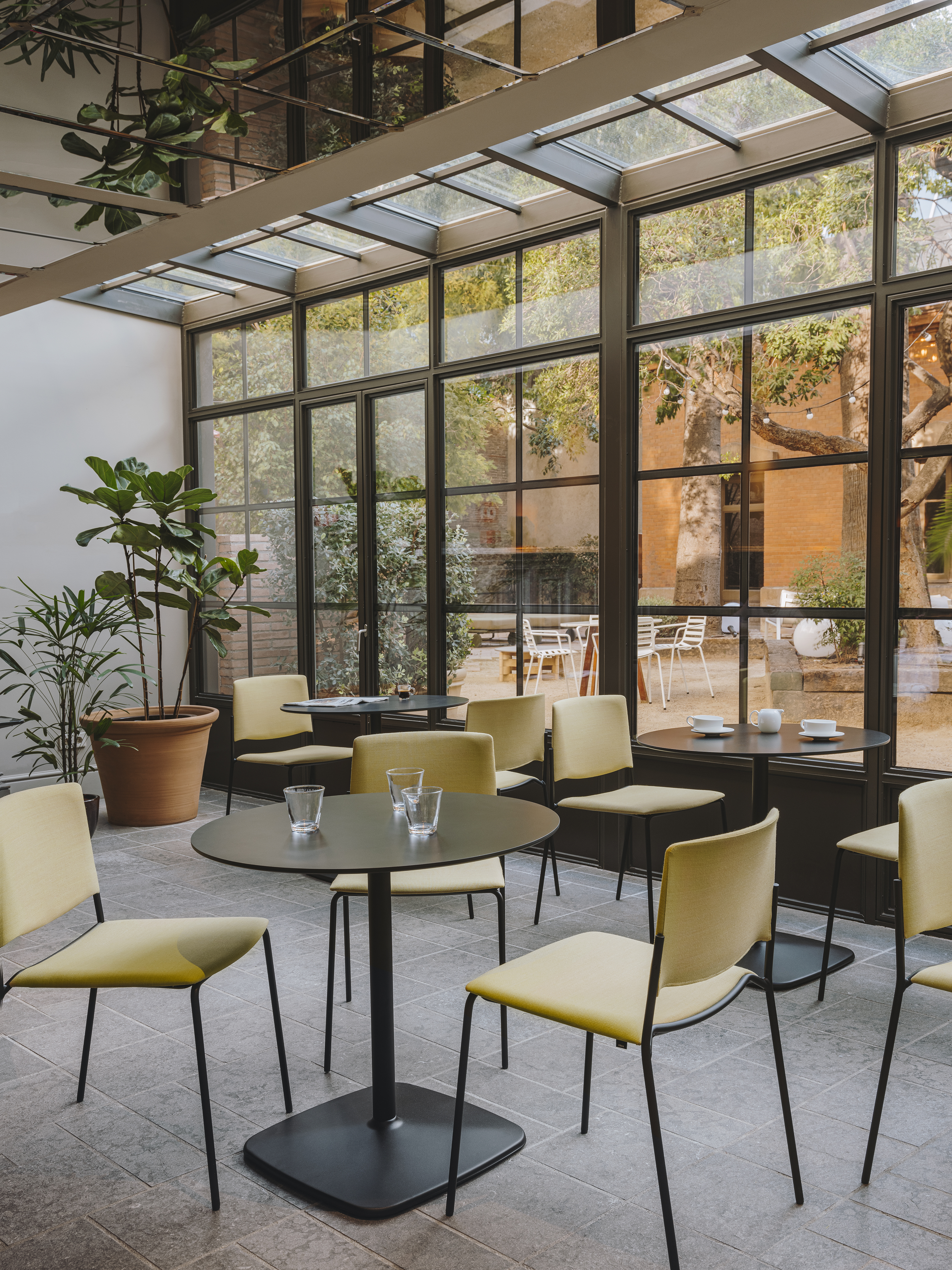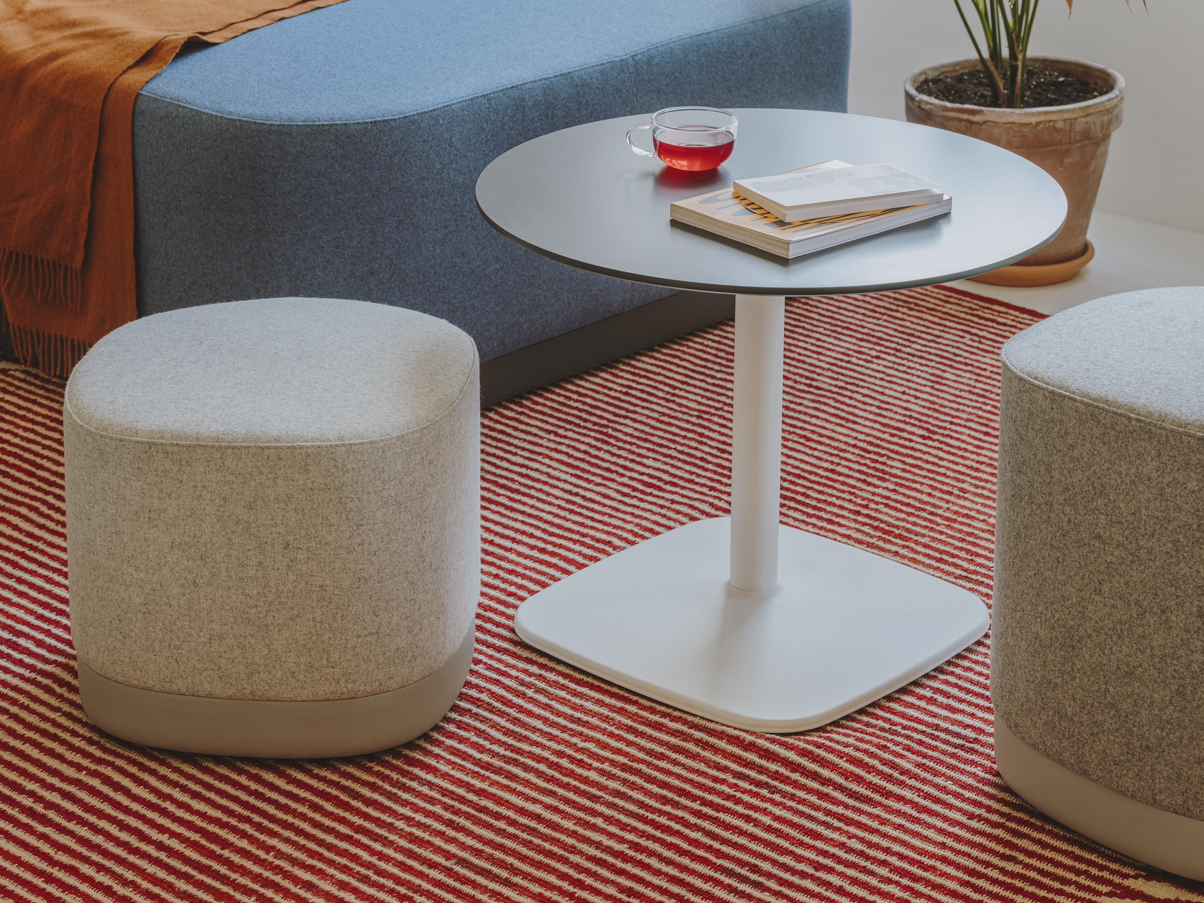 The Iron table range all boast an elegant, architectural steel base. The lacquered steel base provides absolute stability, while different heights and shapes offer variations ideal for any setting.