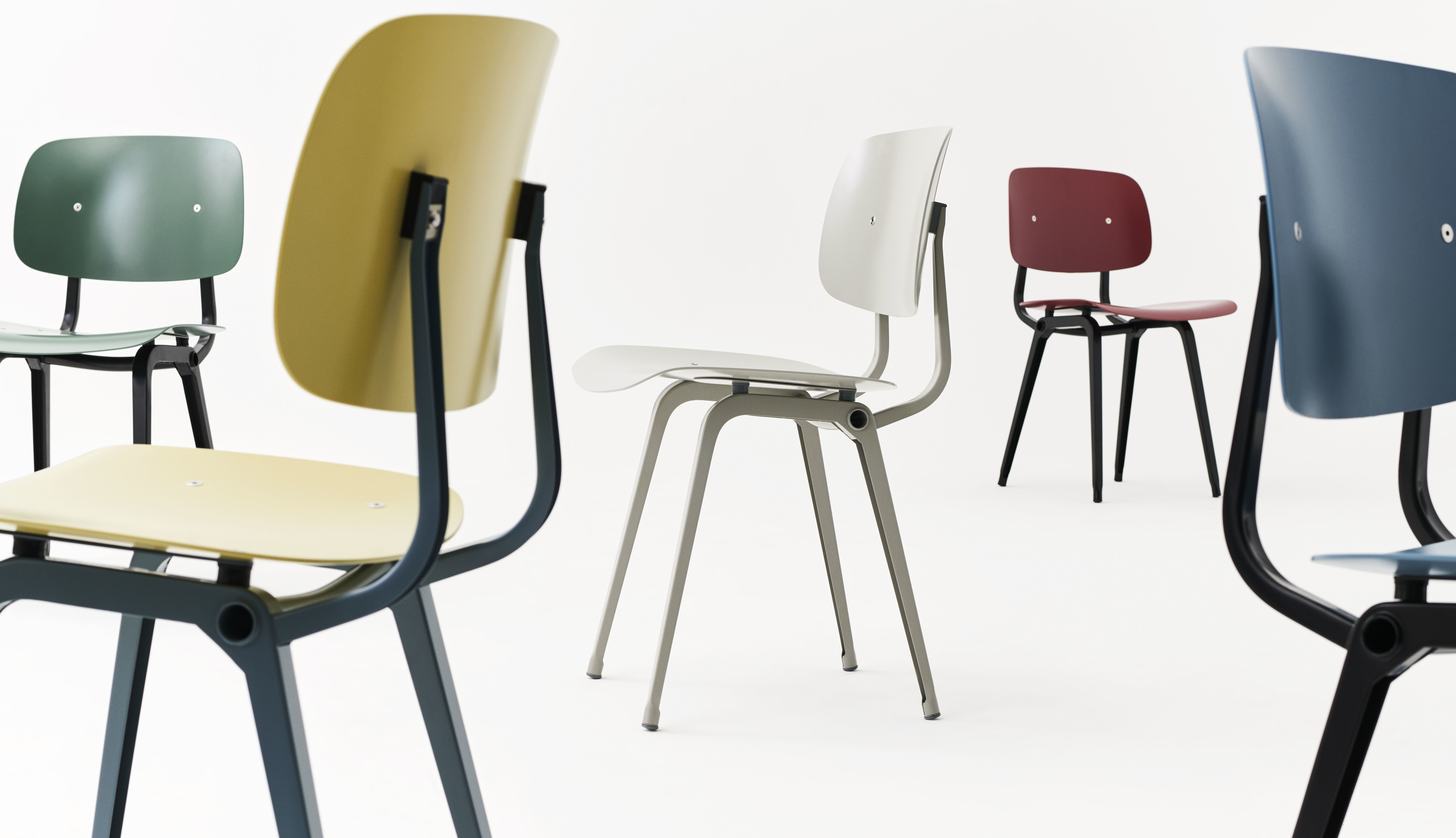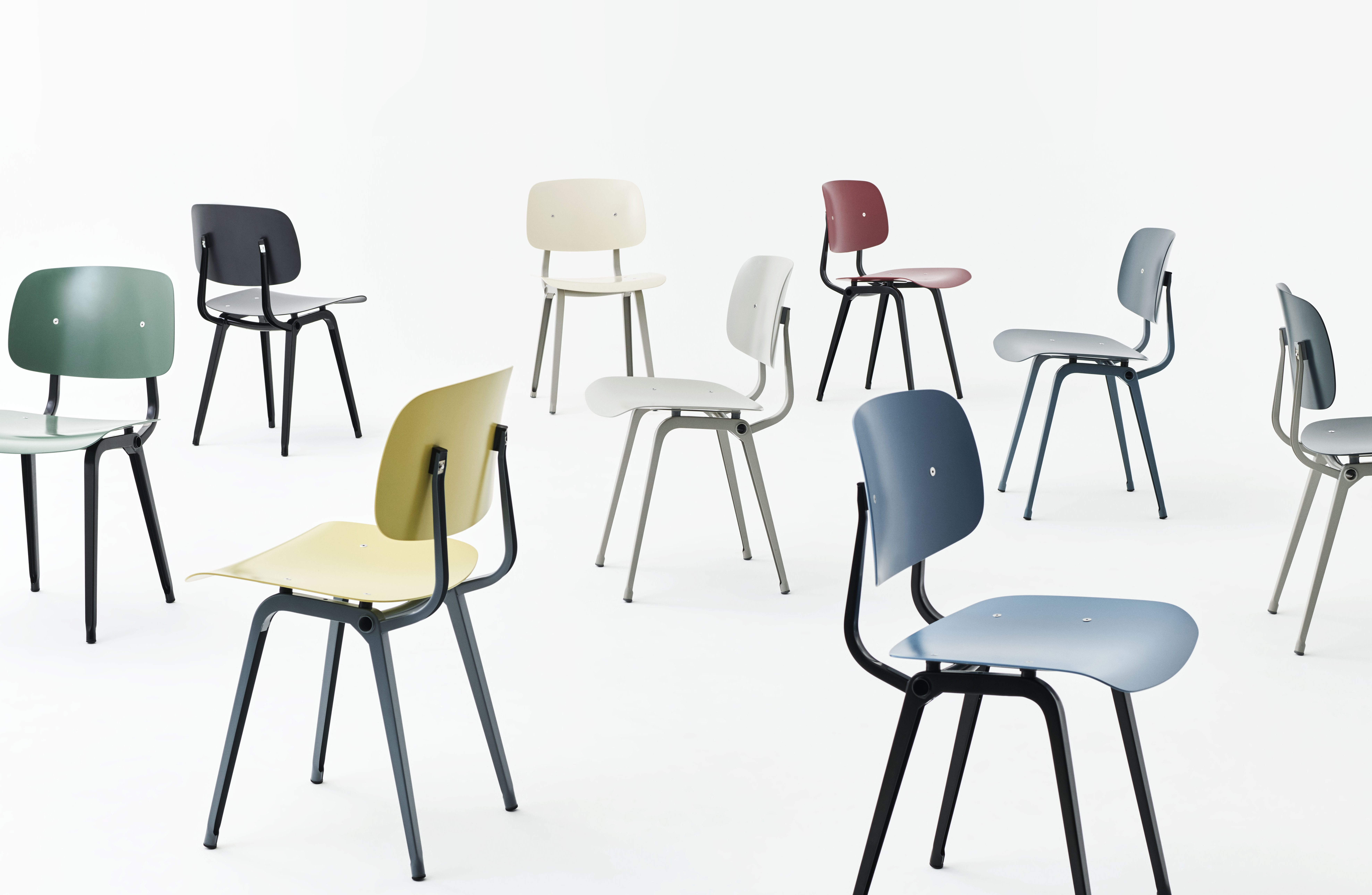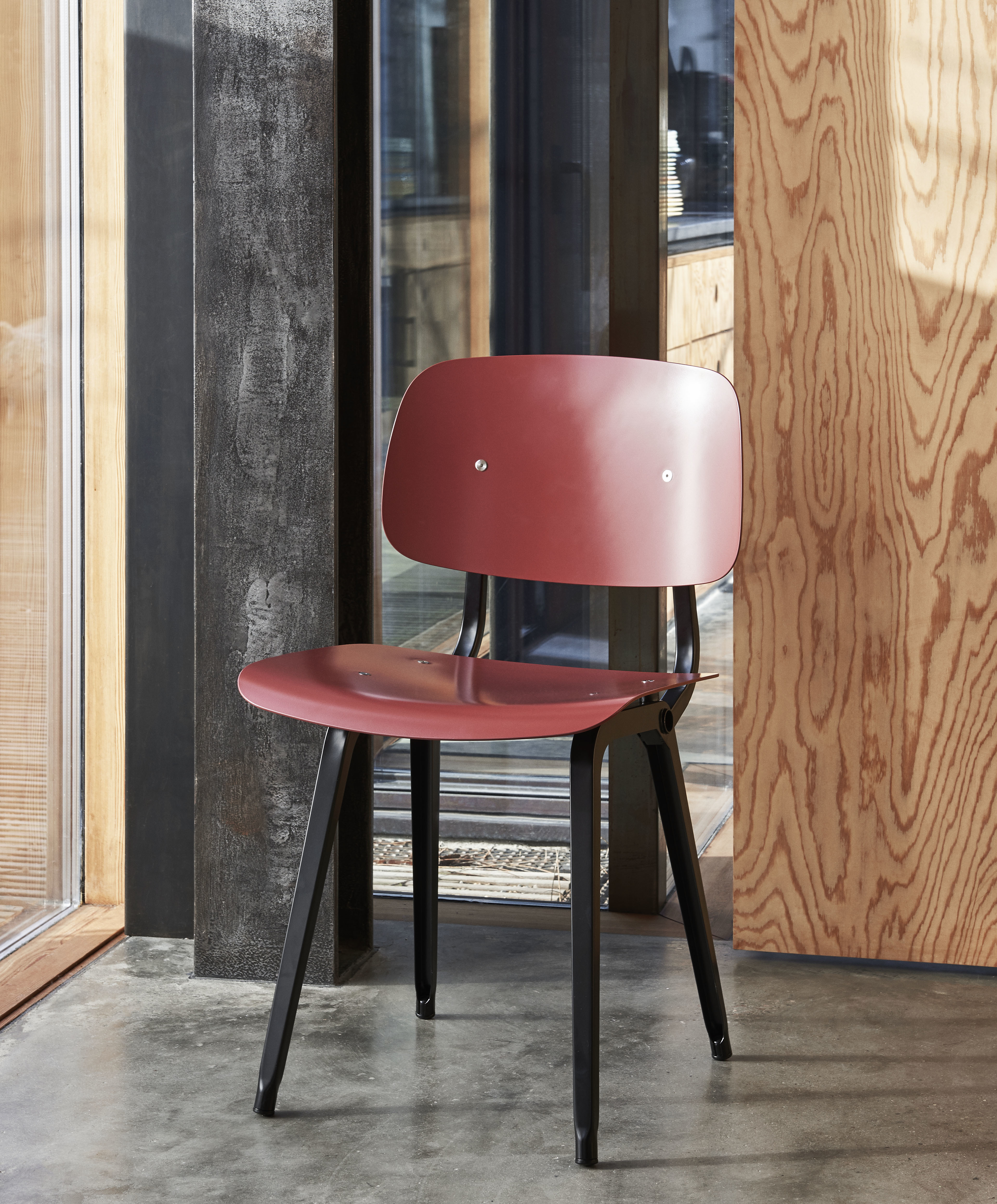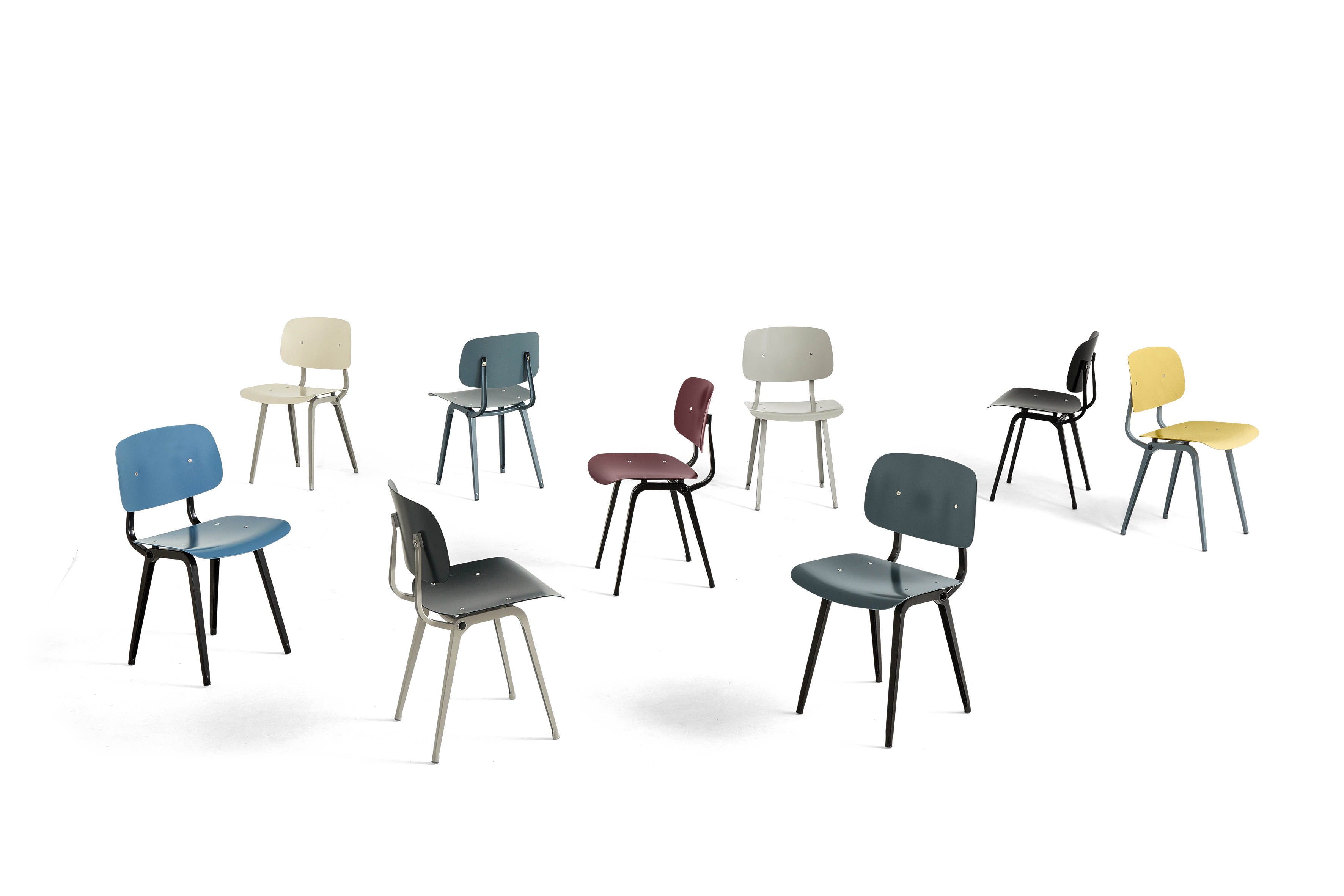 Originally created by Friso Kramer while working at Ahrend in the 1950s, the Revolt Chair has been relaunched by HAY together with Ahrend. One of Friso Kramer’s most famous designs, the Revolt Chair embodies his distinctive minimalist style; a revolutionary design and choice of materials that uses a bent sheet steel frame instead of a traditional tubular frame. Reproduced today using the same process, the chair retains the functionality and resilient construction of its mid-century precursor, but in a sustainable material choice comprising a mix of recycled and virgin ABS in different colour options. A dynamic and flexible chair, Revolt’s ergonomic design moves with its user, offering active support while working, eating or sitting in conferences. Its comfort, durability and timeless aesthetics make it suitable for using in a wide variety of private, corporate or public spaces.