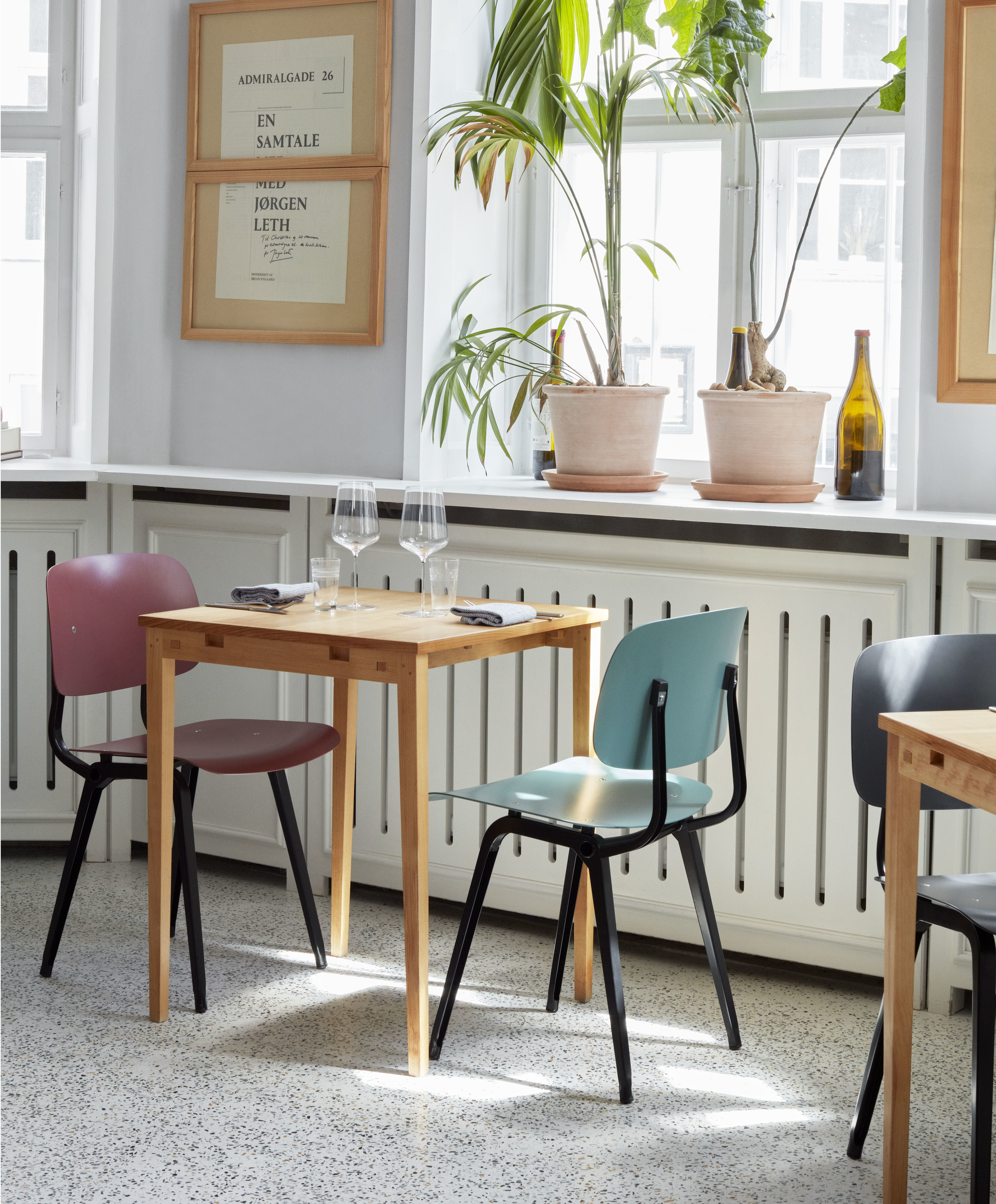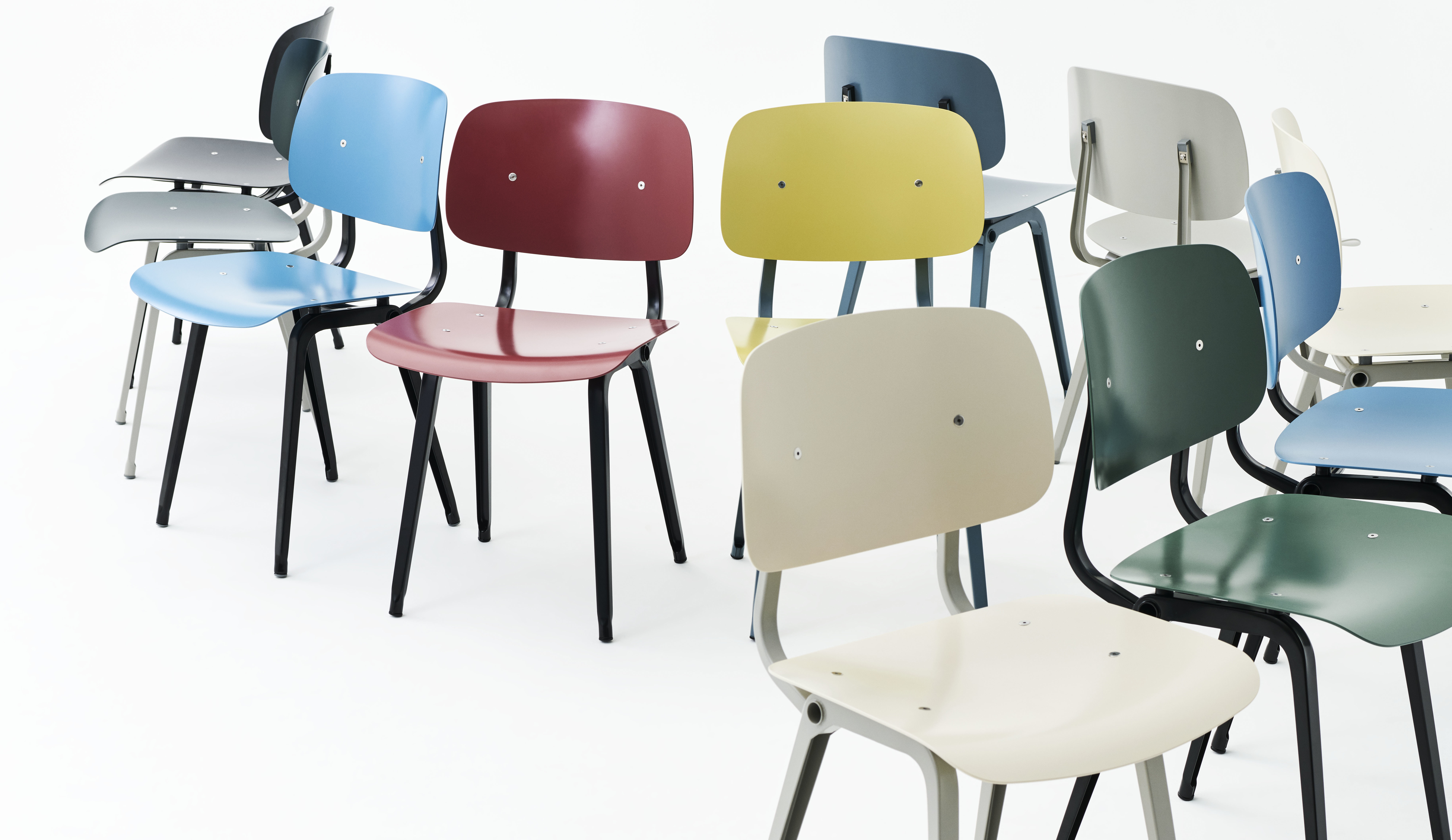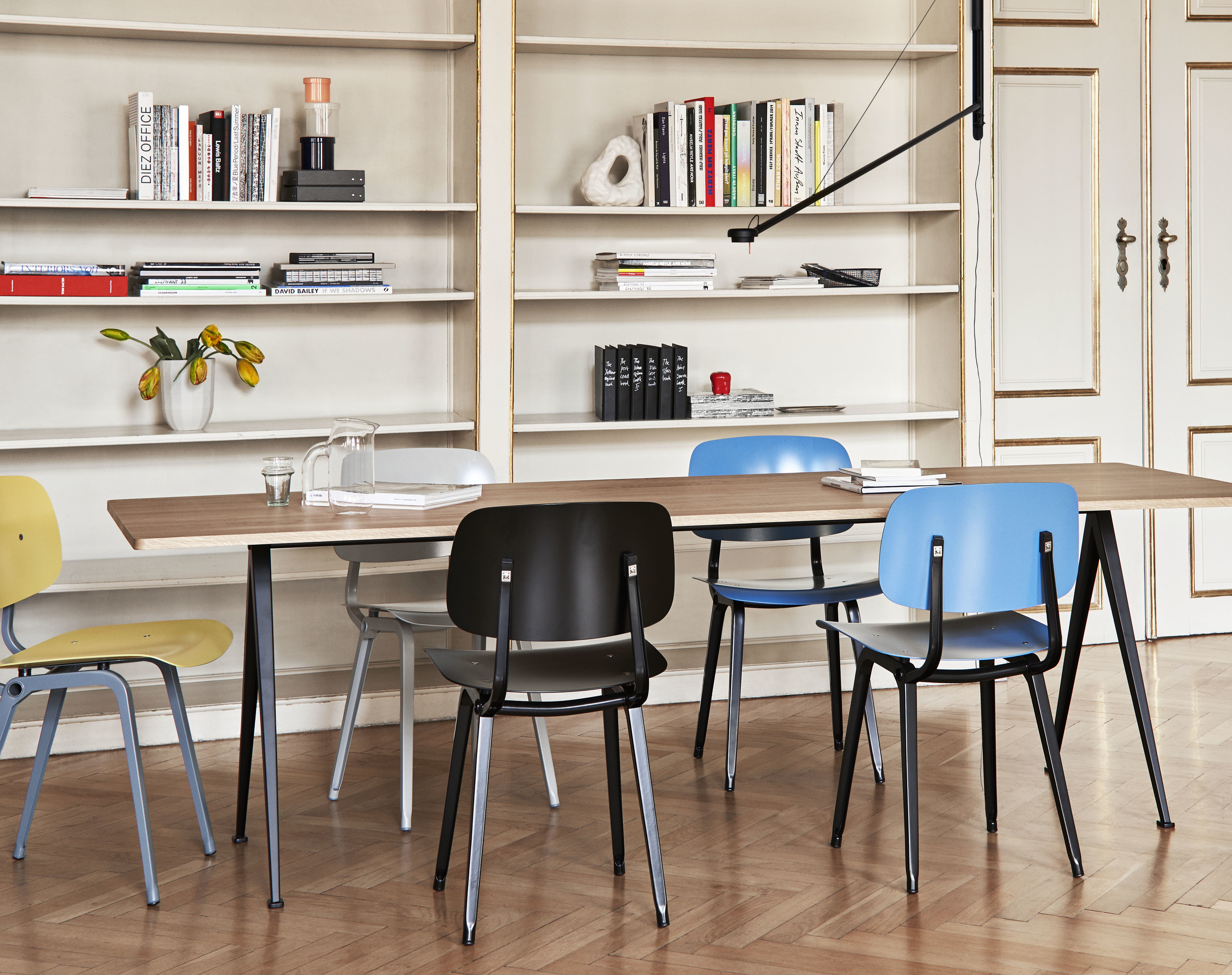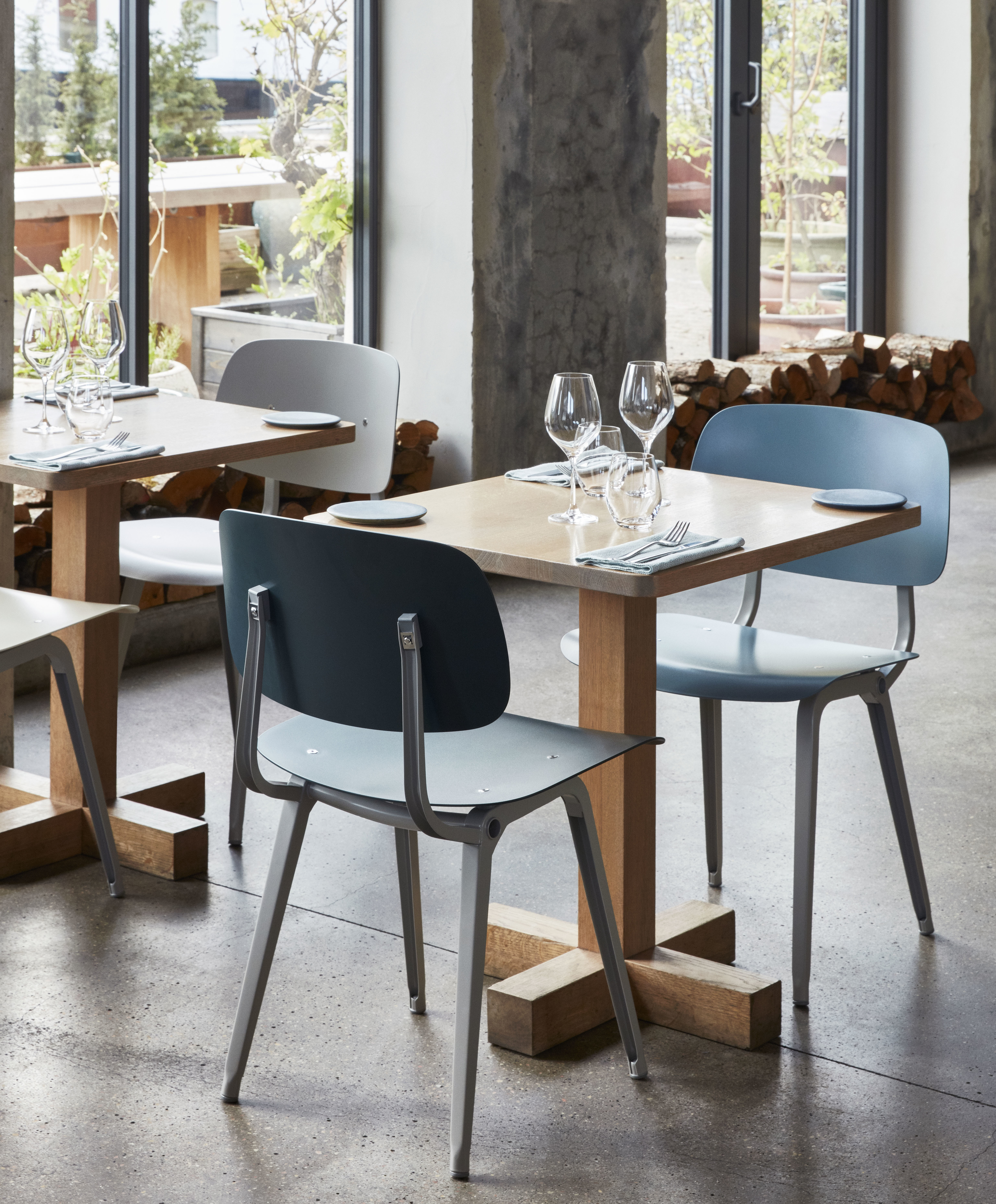 Originally created by Friso Kramer while working at Ahrend in the 1950s, the Revolt Chair has been relaunched by HAY together with Ahrend. One of Friso Kramer’s most famous designs, the Revolt Chair embodies his distinctive minimalist style; a revolutionary design and choice of materials that uses a bent sheet steel frame instead of a traditional tubular frame. Reproduced today using the same process, the chair retains the functionality and resilient construction of its mid-century precursor, but in a sustainable material choice comprising a mix of recycled and virgin ABS in different colour options. A dynamic and flexible chair, Revolt’s ergonomic design moves with its user, offering active support while working, eating or sitting in conferences. Its comfort, durability and timeless aesthetics make it suitable for using in a wide variety of private, corporate or public spaces.