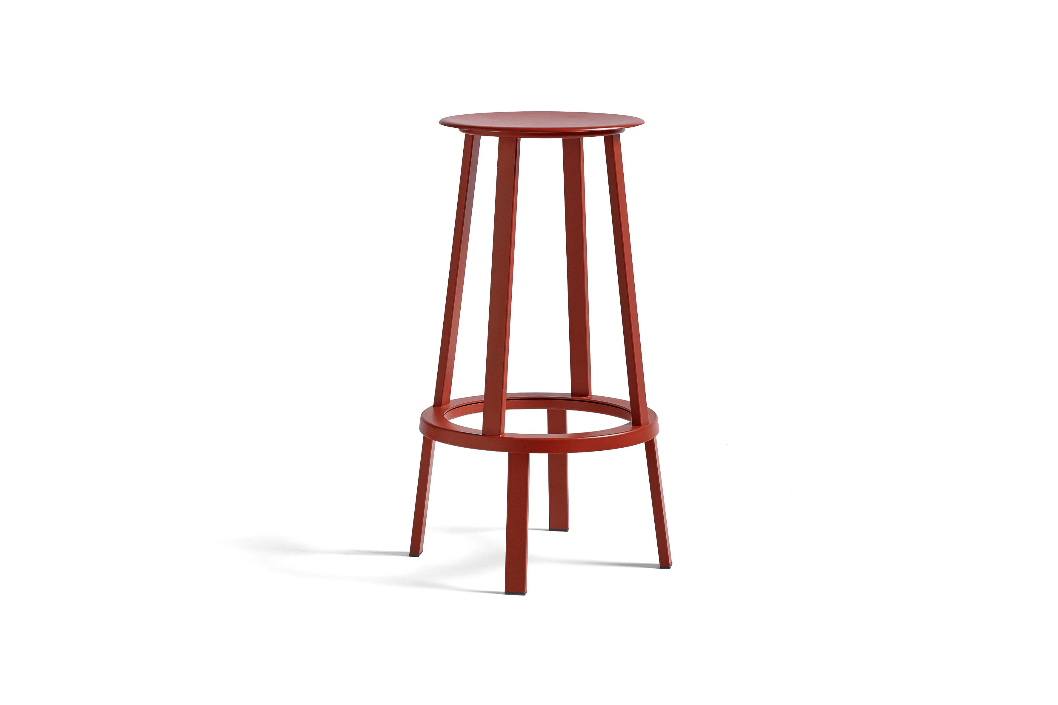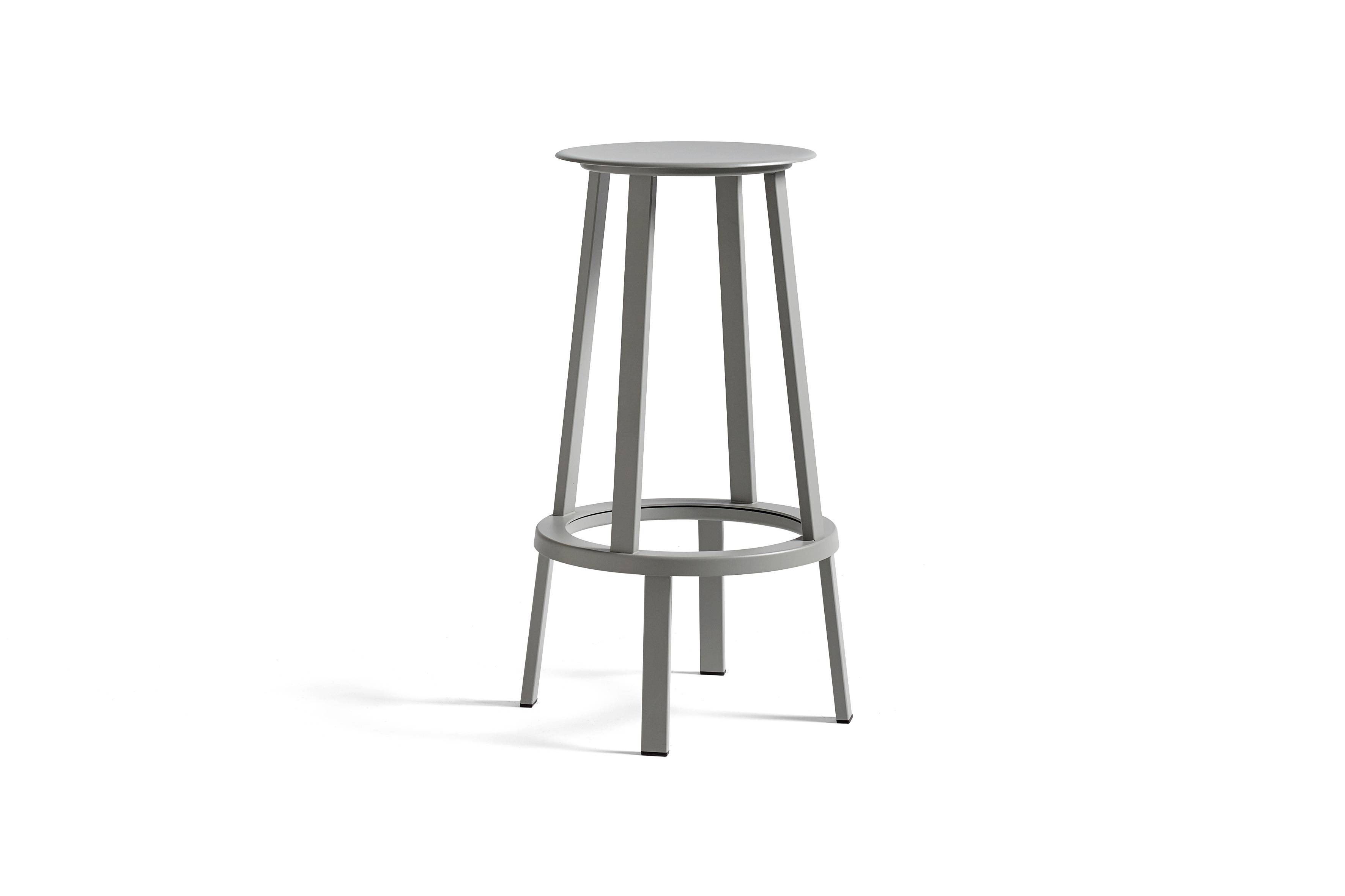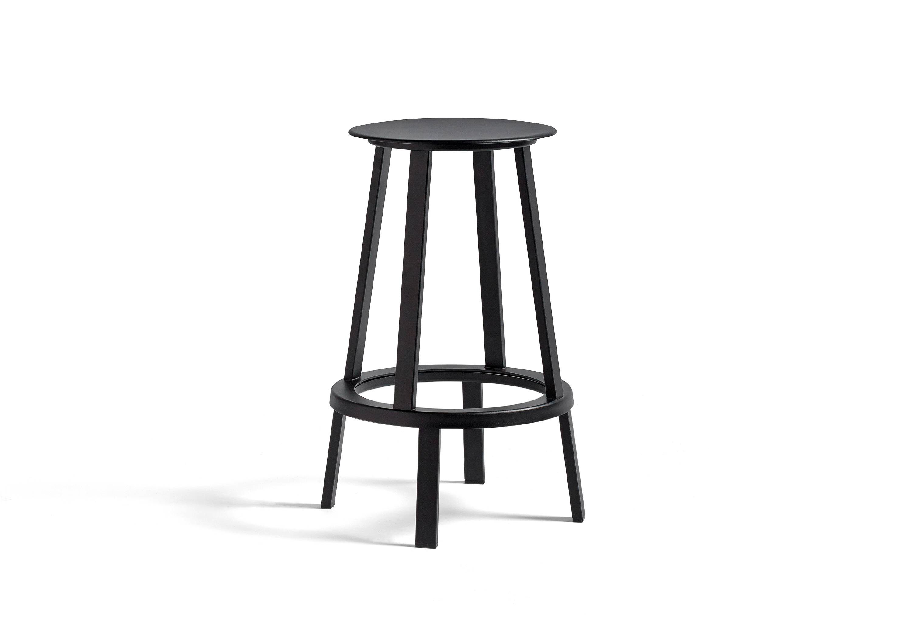 The slim, slightly dished seat features curved edges for additional comfort, while the footrest provides support and the weighty base creates total stability. Available in two heights and a choice of coatings, its versatile presence makes it suitable for a wide range of public and residential environments.