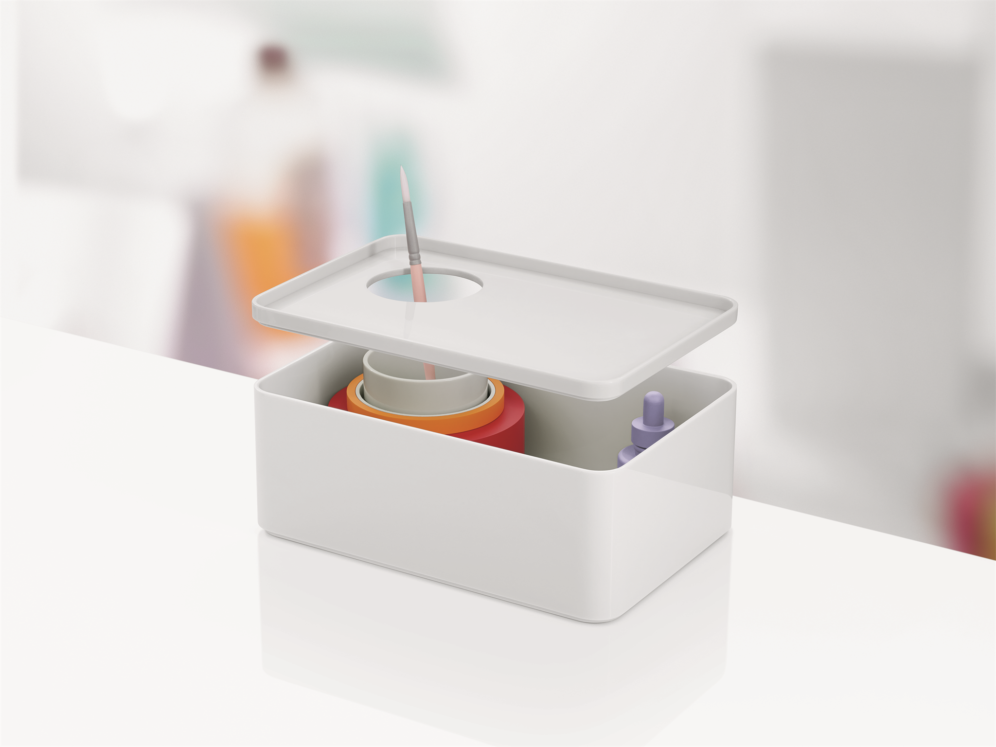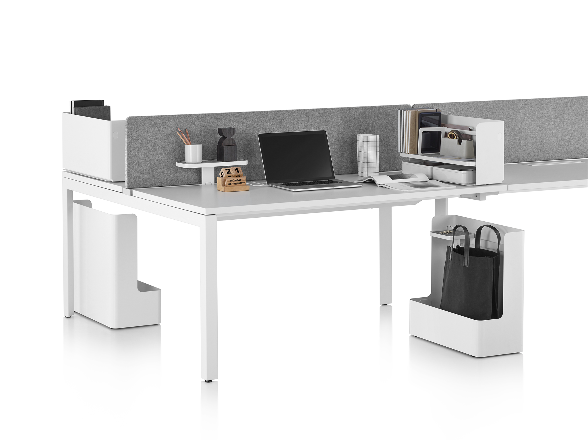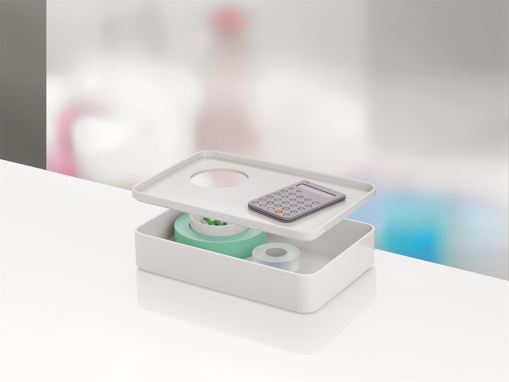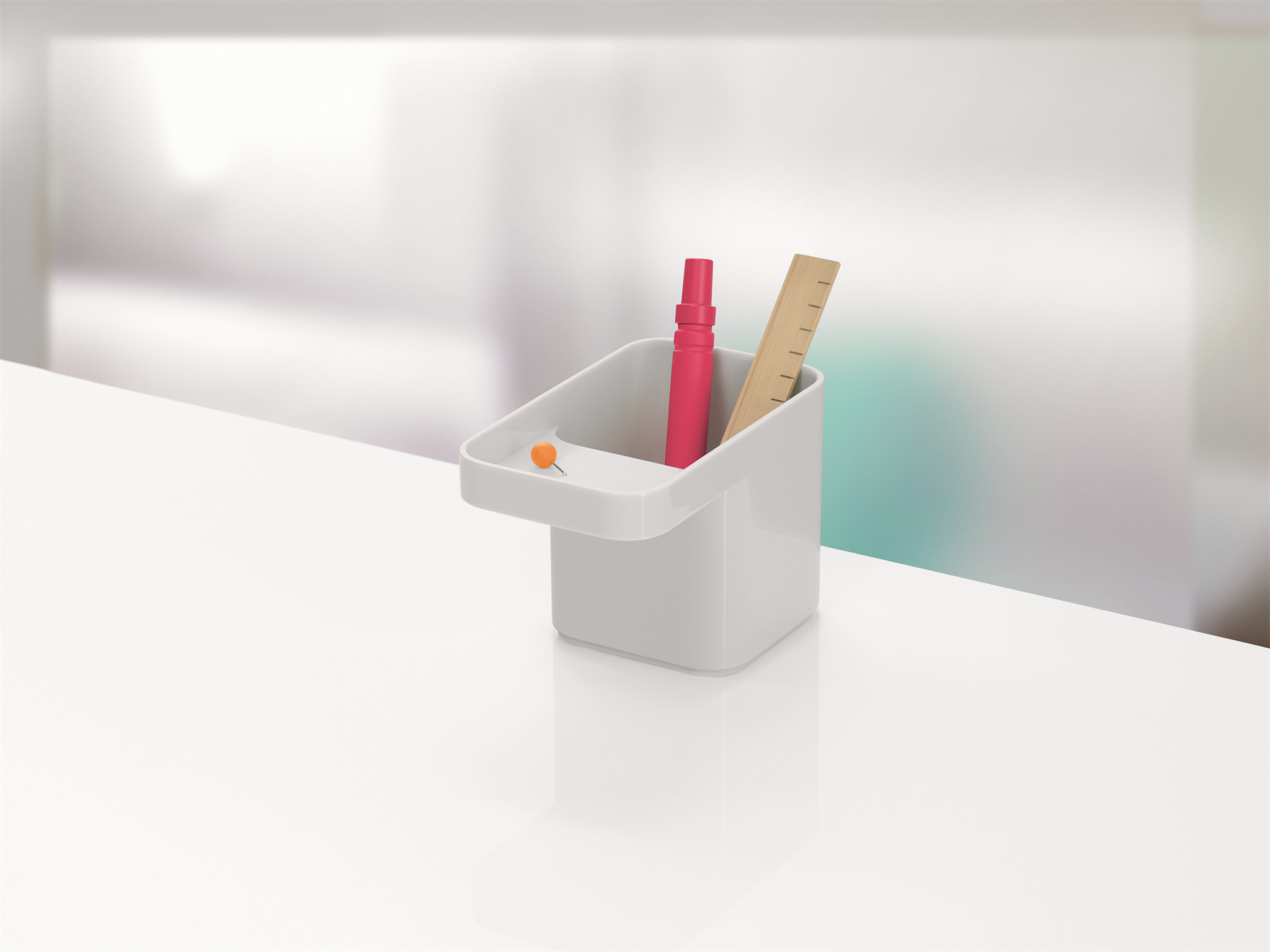 Formwork stackable desktop storage helps you bring order to your papers, tools and artefacts. With shapes and sizes that were rigorously considered to relate an intuitive sense of utility, the accessories may be stacked and combined in any way you see fit. Each form is shaped in ABS plastic. Some pieces also include a non-slip silicone base.