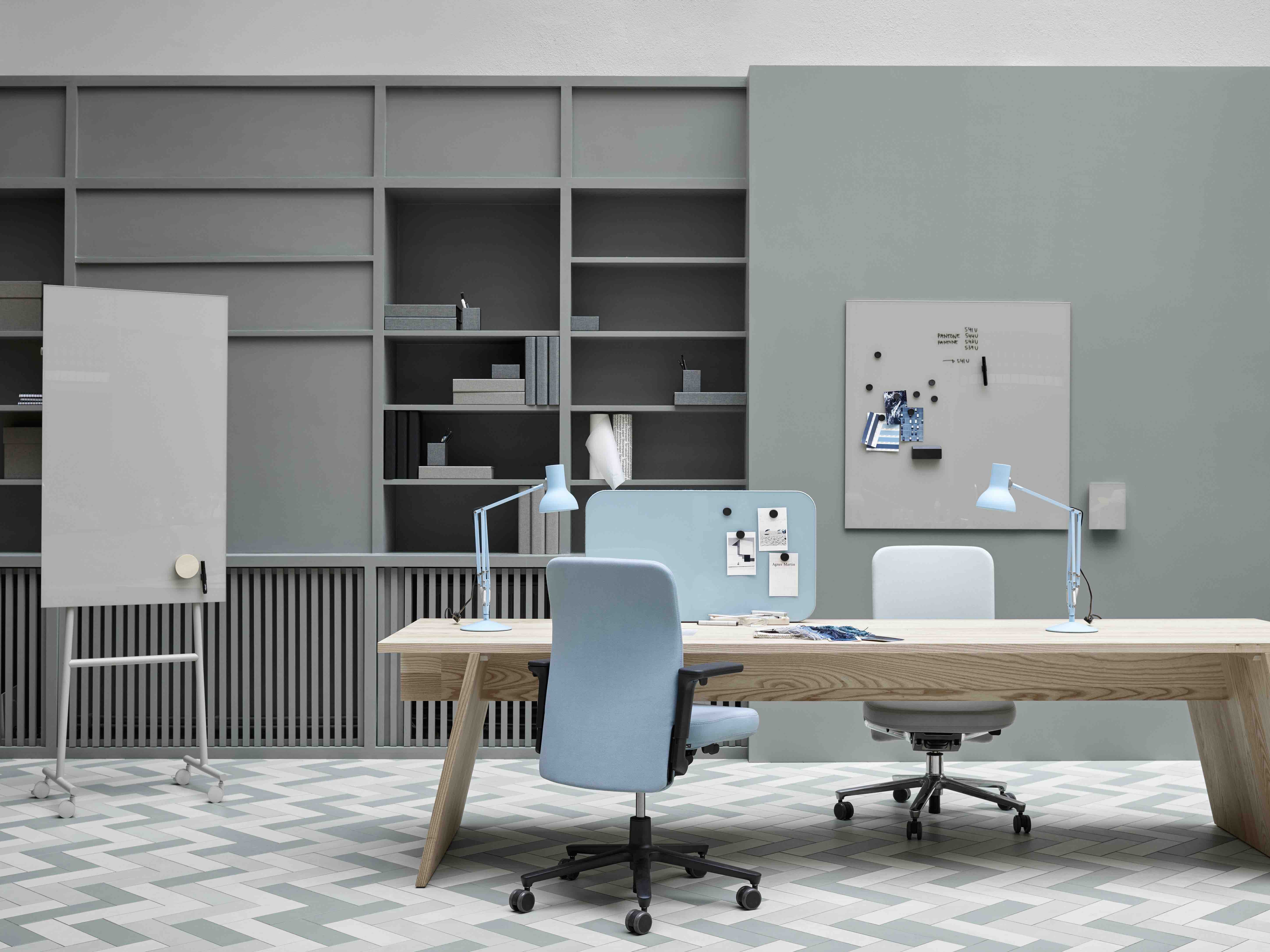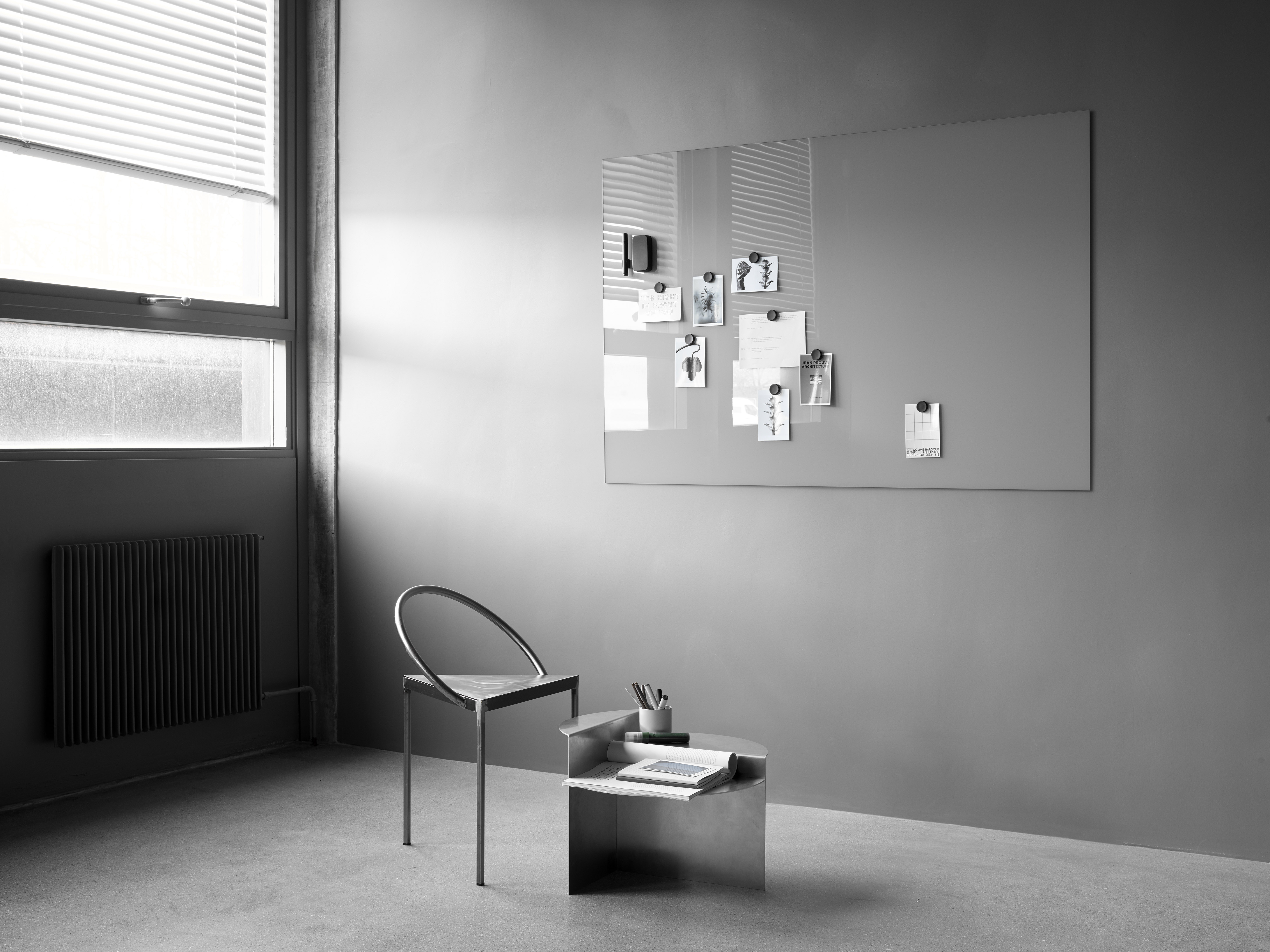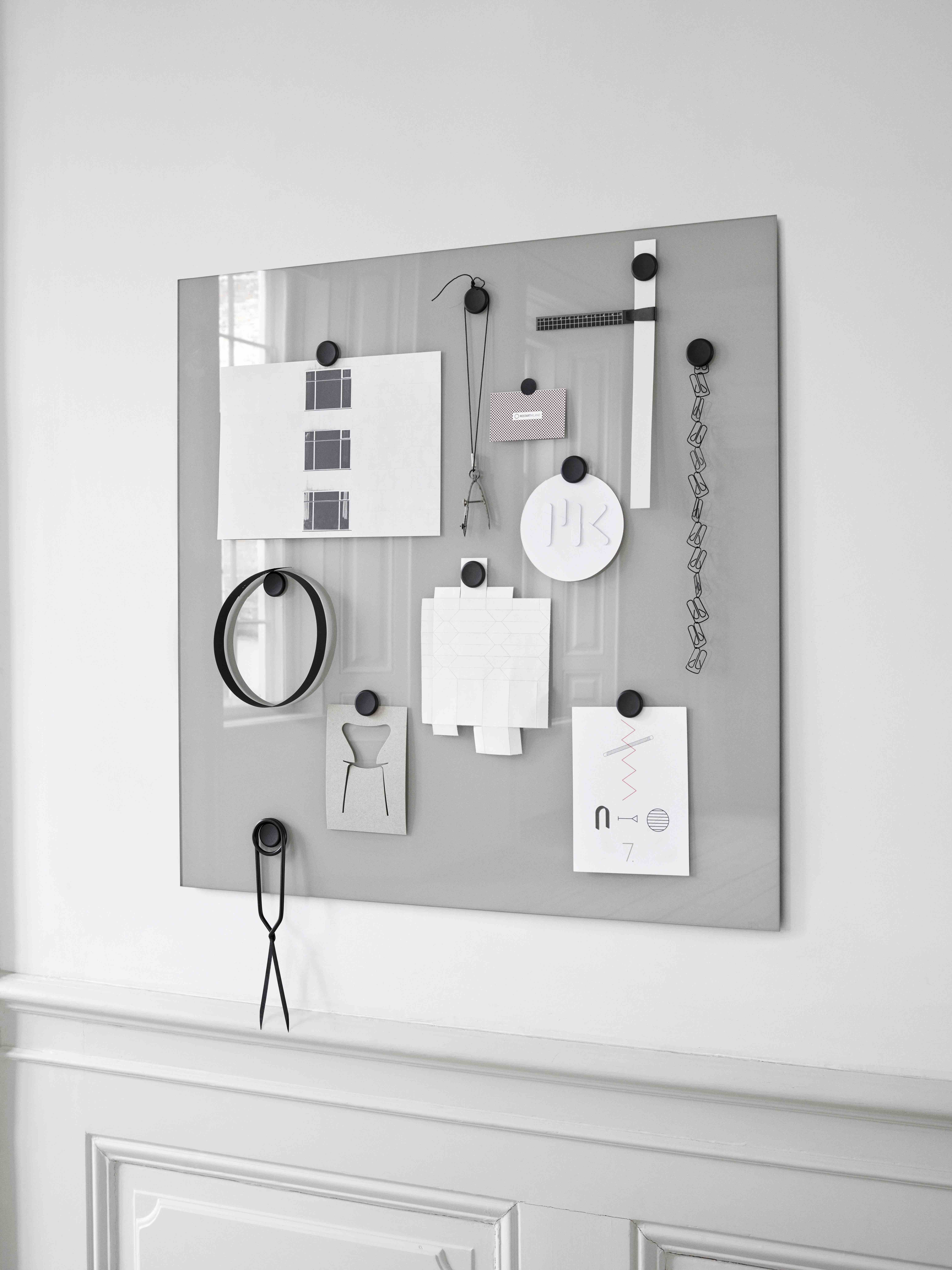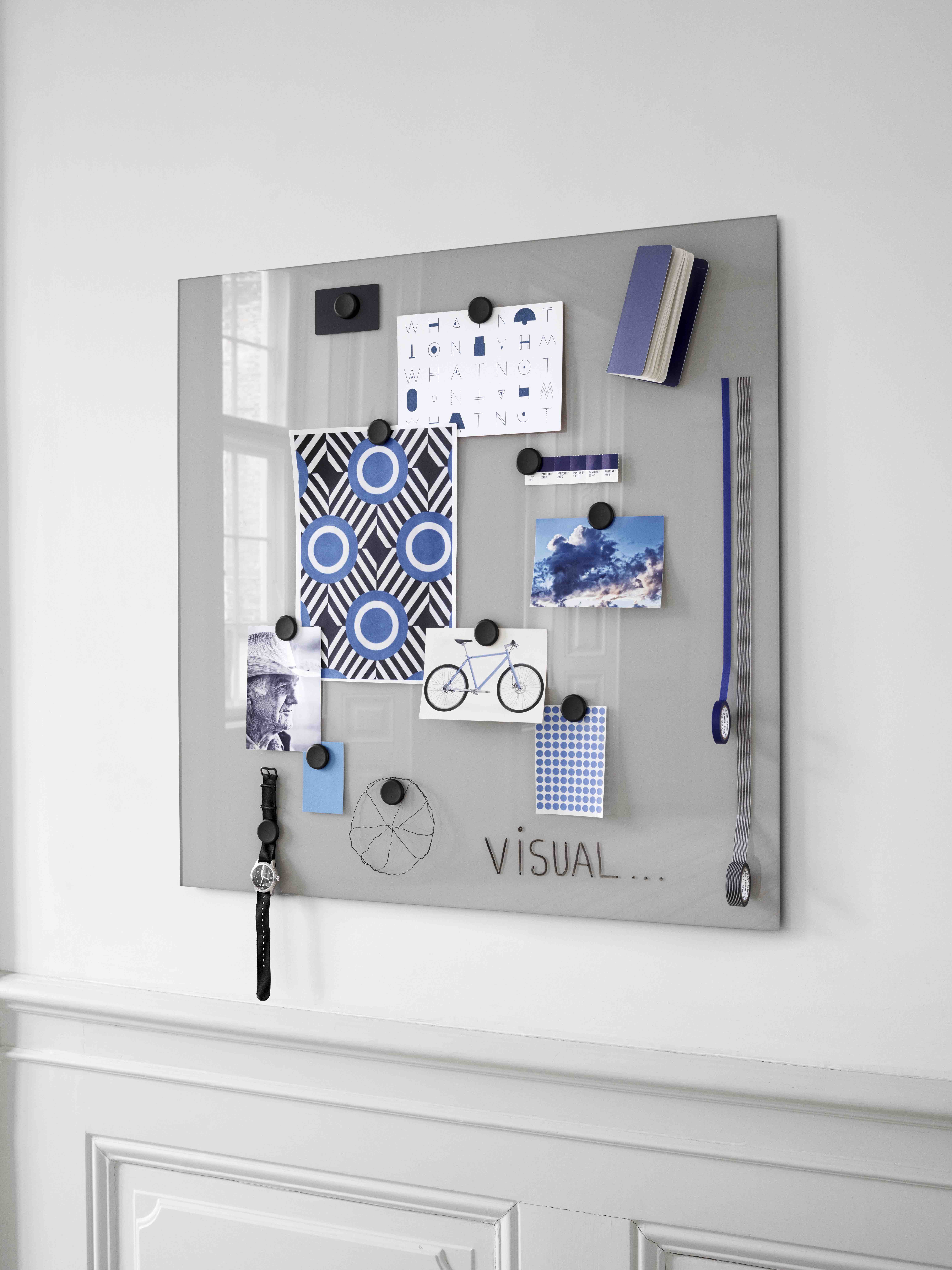 Mood Wall is a magnetic glass writing board, available in 24 standard colours. The board is made of tempered low iron glass which eliminates all shades of green and gives the glass optimum finish and colour reproduction. Birch or plexiglass pen trays are sold separately.