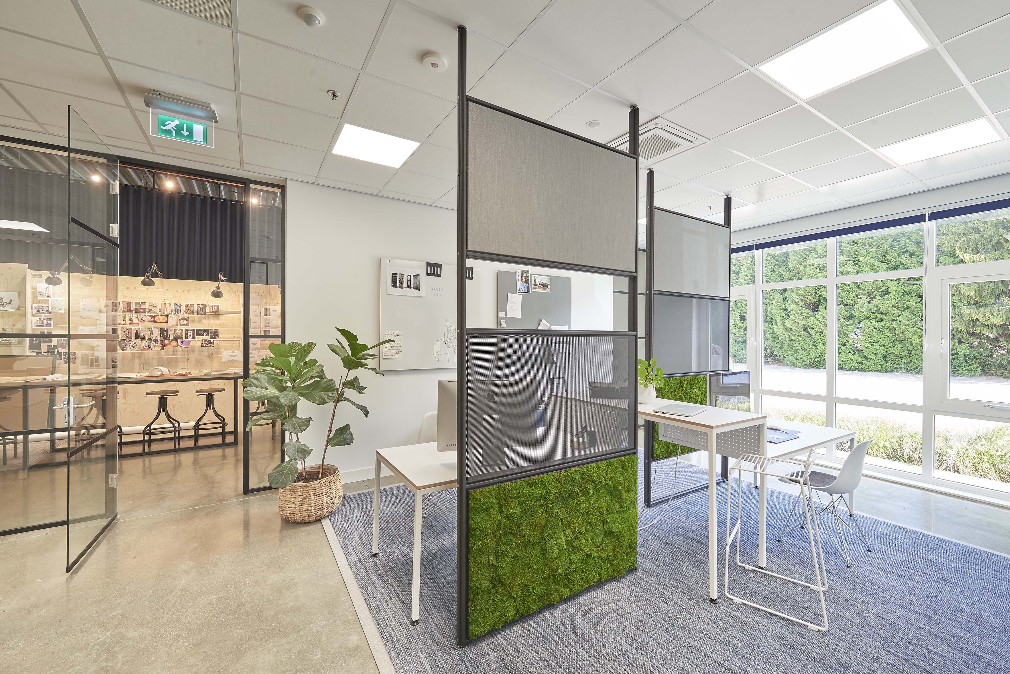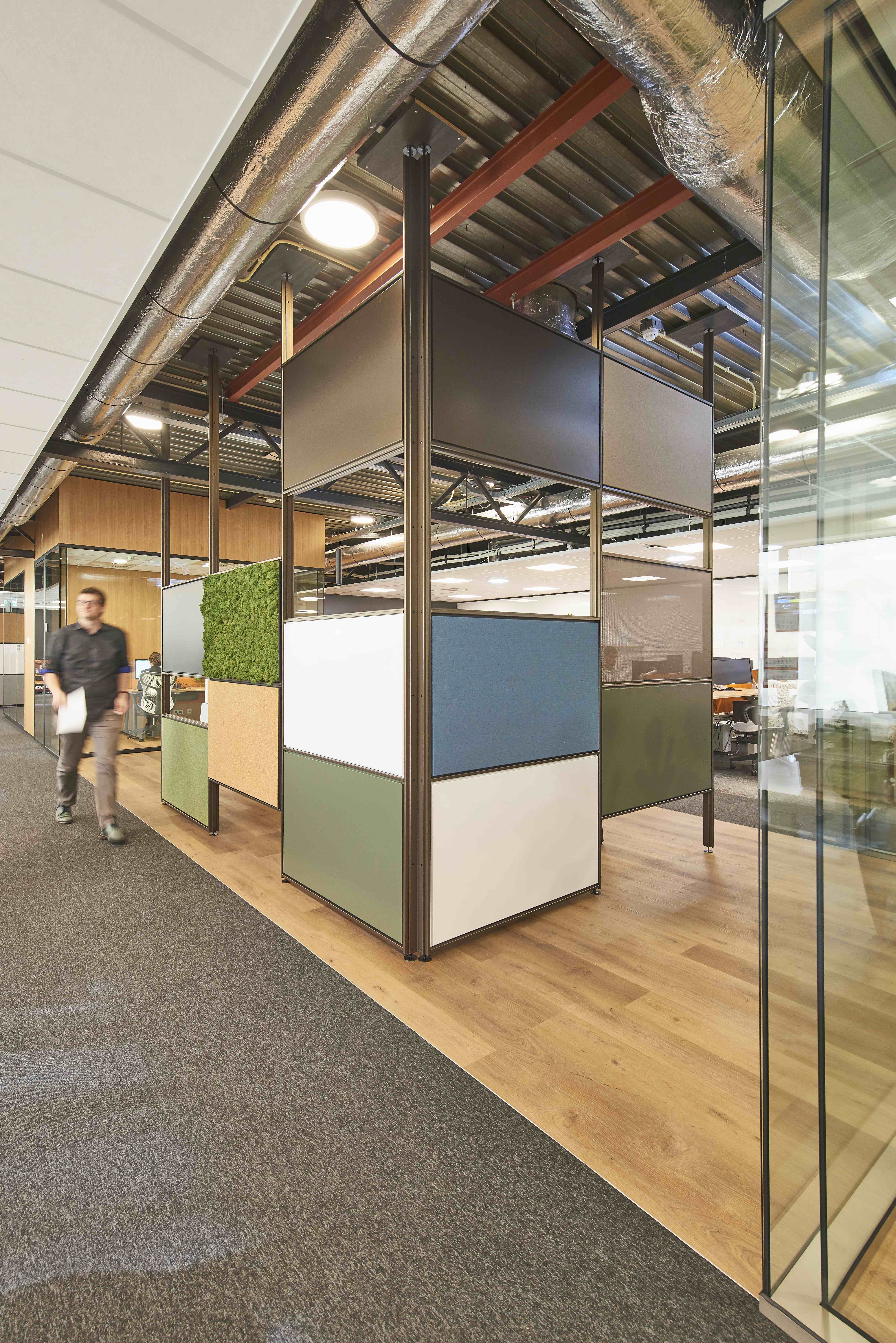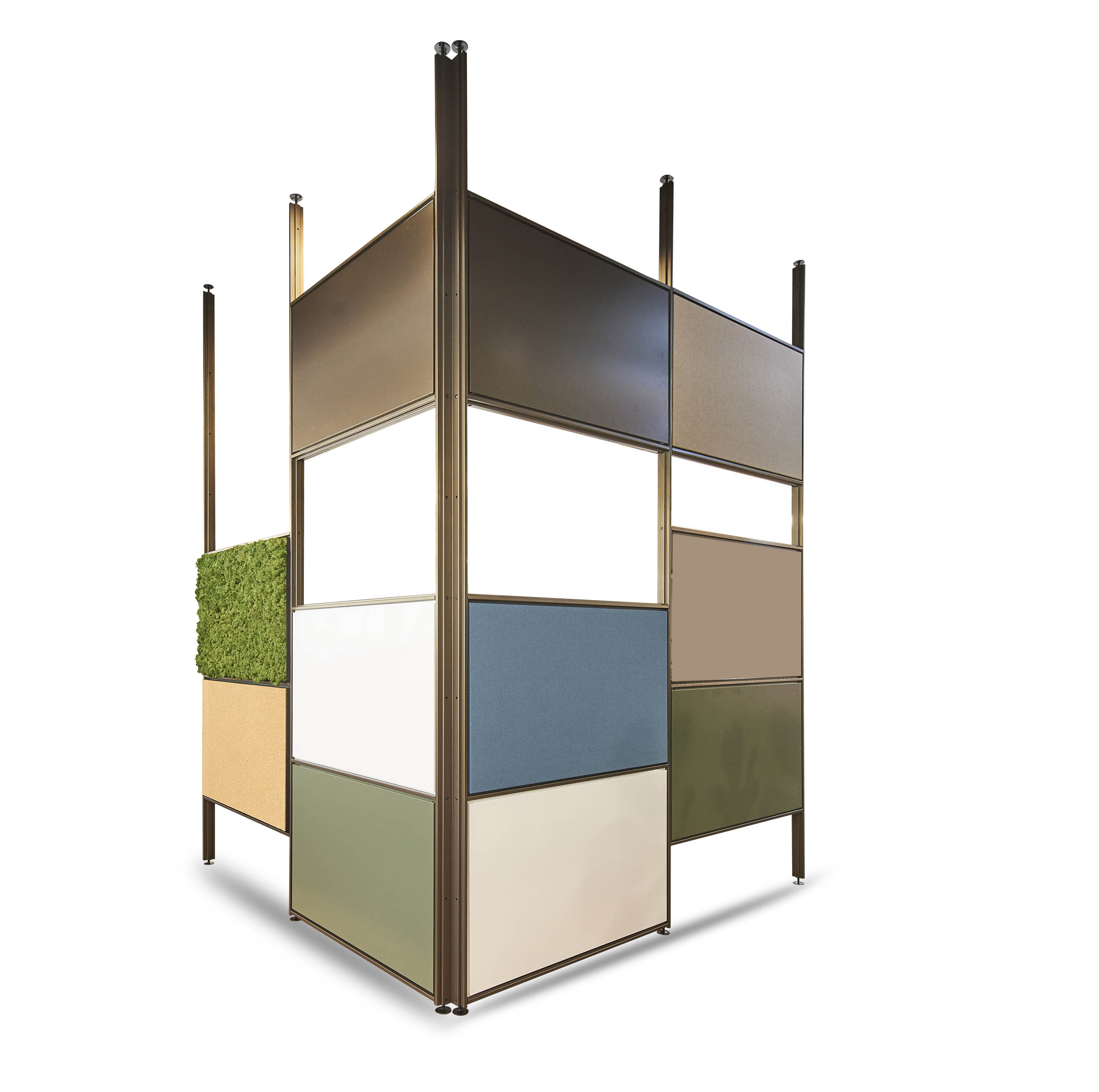 You determine the look and layout. Colorful, natural, and functional panels. Easy to adjust by hand. Designed with ergonomics in mind. Available in various configurations. Can be used in any room up to maximum profile height. Option for straight wall, L-wall or T-wall. Height-adjustable.