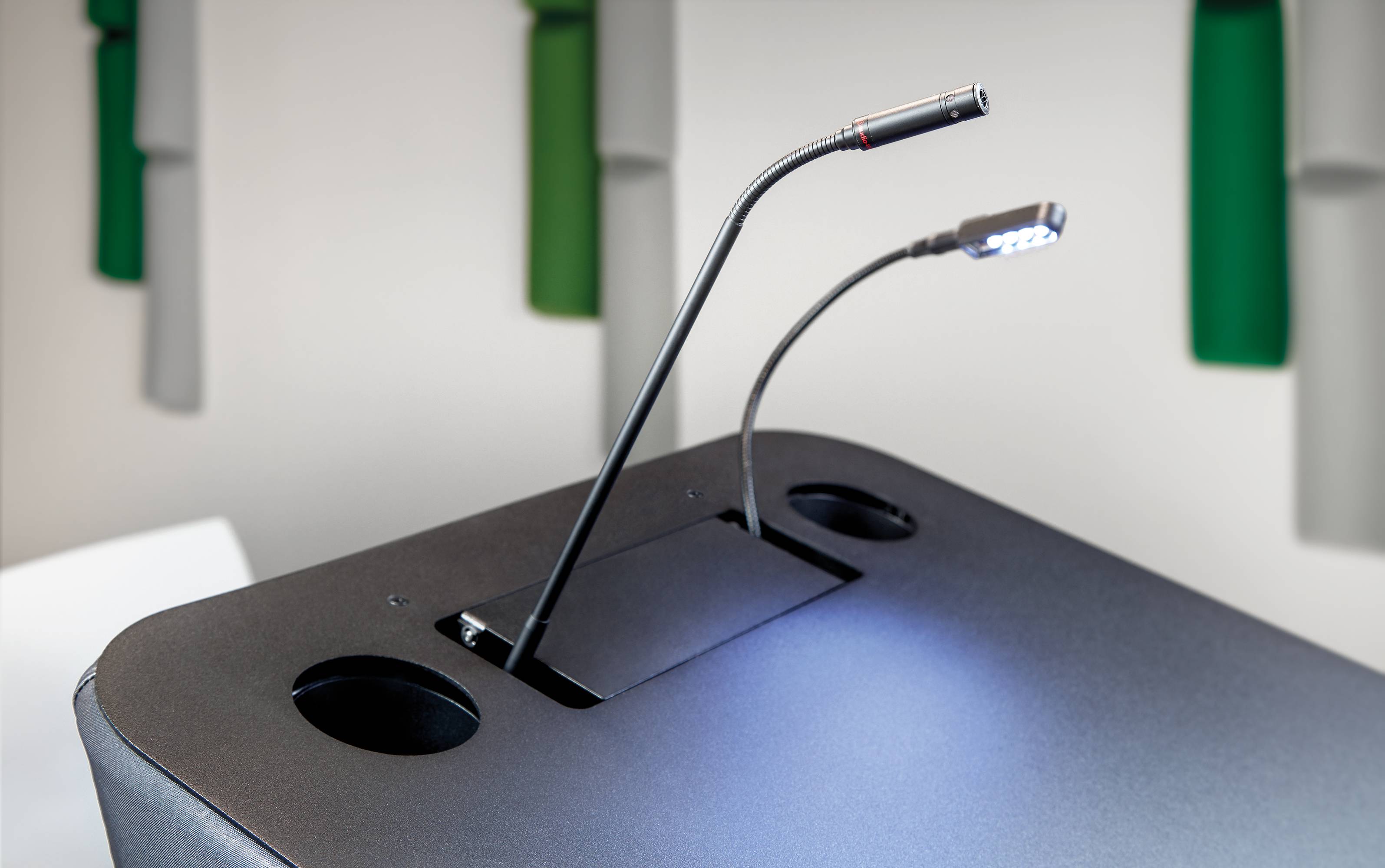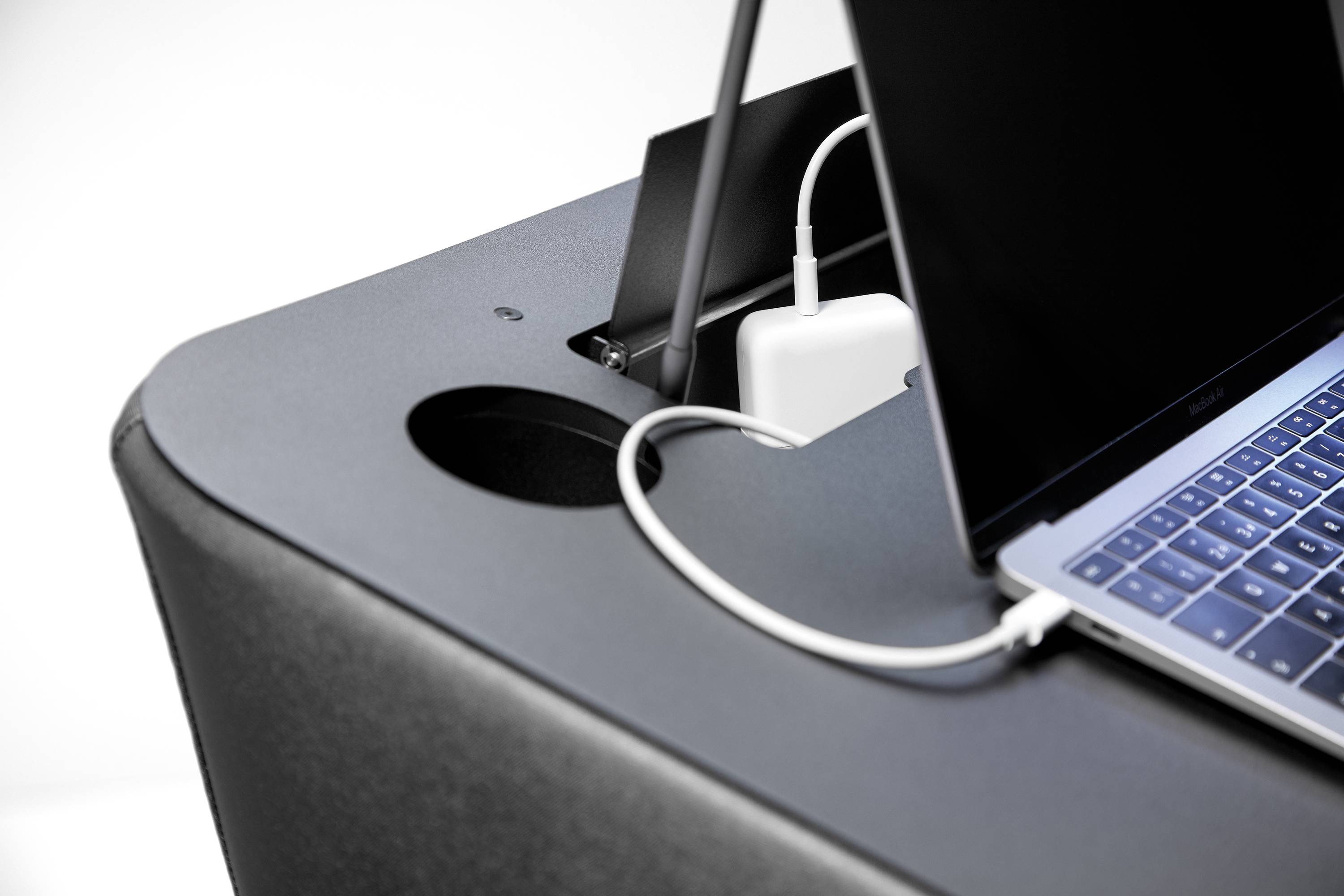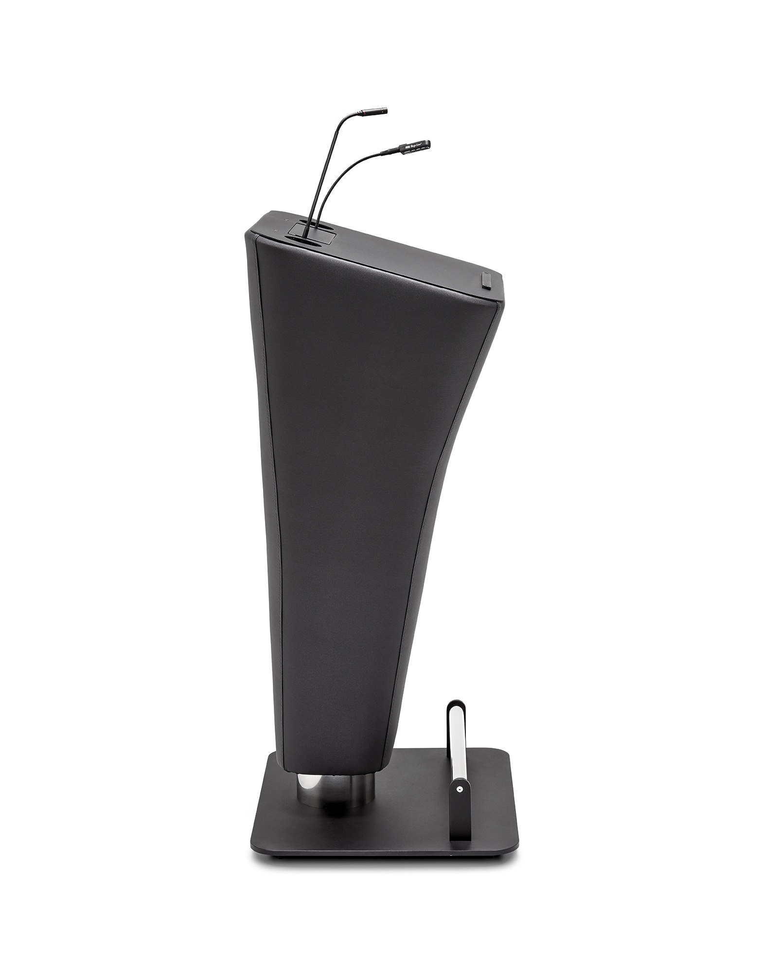 Speak through Nagoya and present your ideas to the world. This design provides the space with style. Upholstered lectern with technological applications and a stand for books, notes, papers or a personal computer. Lift up your voice.