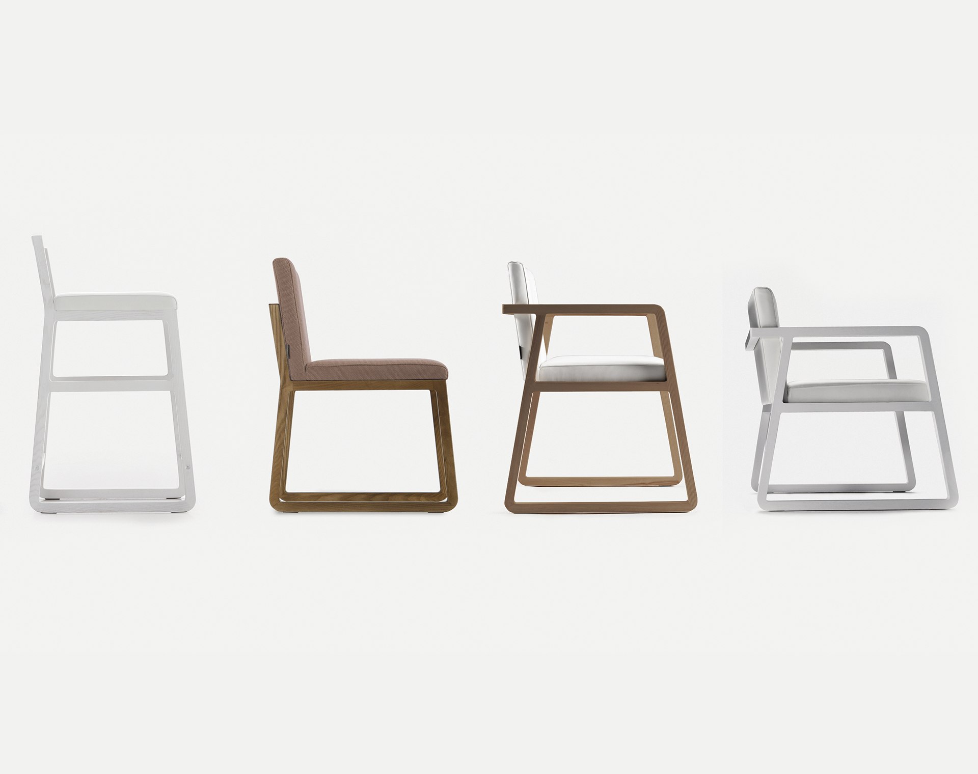 The MIDORI collection includes a chair, armchair, bar stools and pouffes. Its design is gentle and austere, as are the heroines of Japanese stories. The construction is made of ash wood. The material of the cover is fabric or leather.