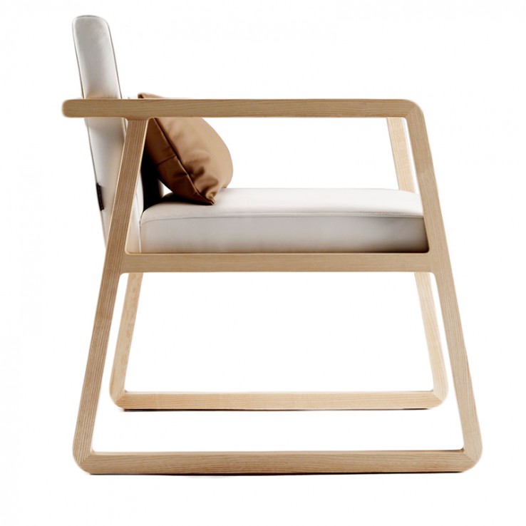 The MIDORI collection includes a chair, armchair, bar stools and pouffes. Its design is gentle and austere, as are the heroines of Japanese stories. The construction is made of ash wood. The material of the cover is fabric or leather.