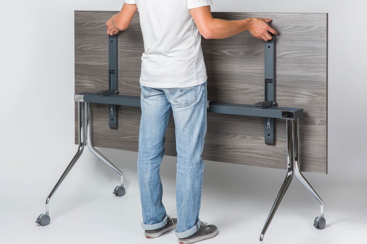 Trilogy MILO TT is a collection of tilt top tables. Top tilts fully in vertical position for compact nesting when not in use. Suitable for a variety of environments where space saving is crucial such as offices, conference areas, meeting rooms and café/restaurant areas. The double conical leg is made with specific high-quality tooling equipment.