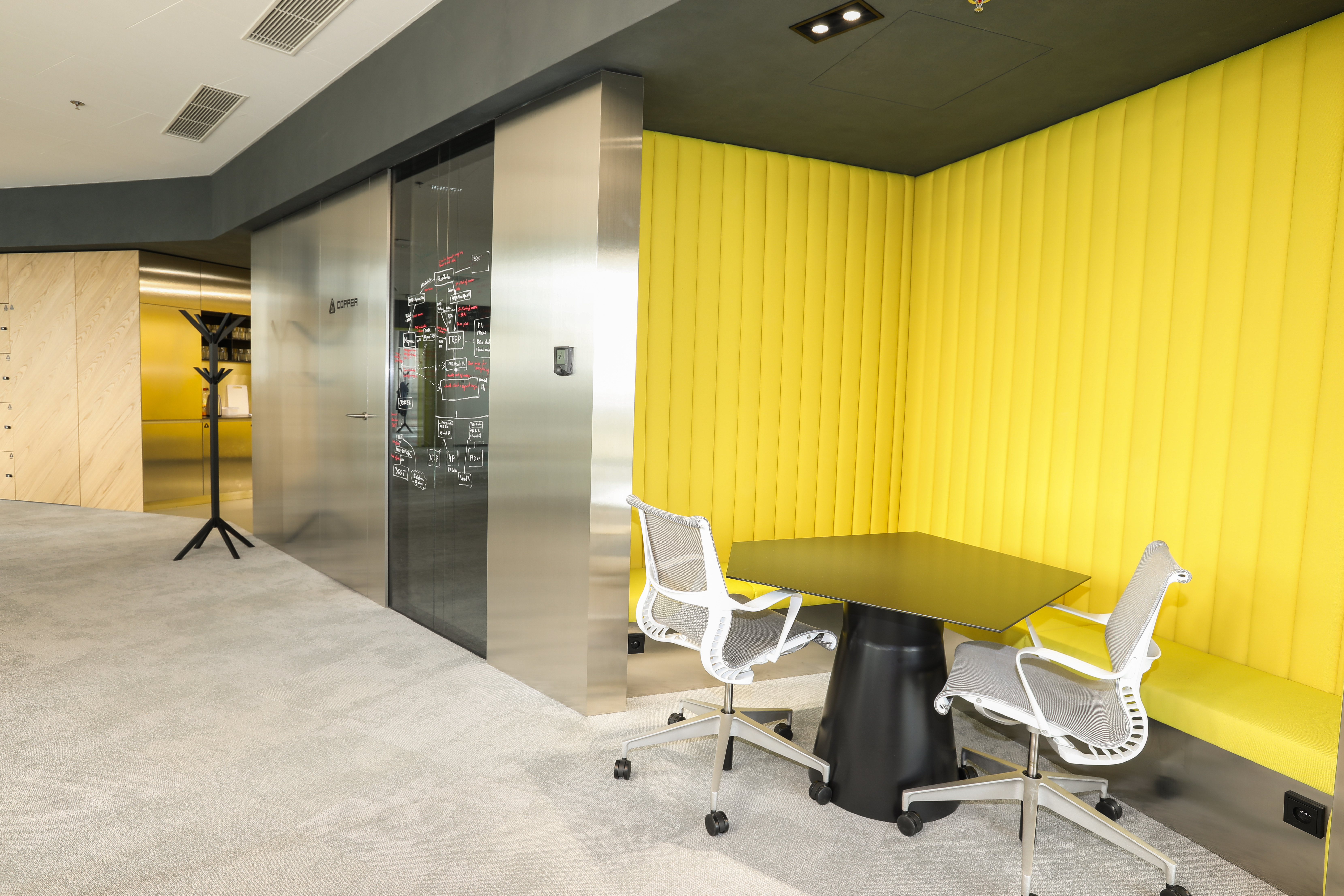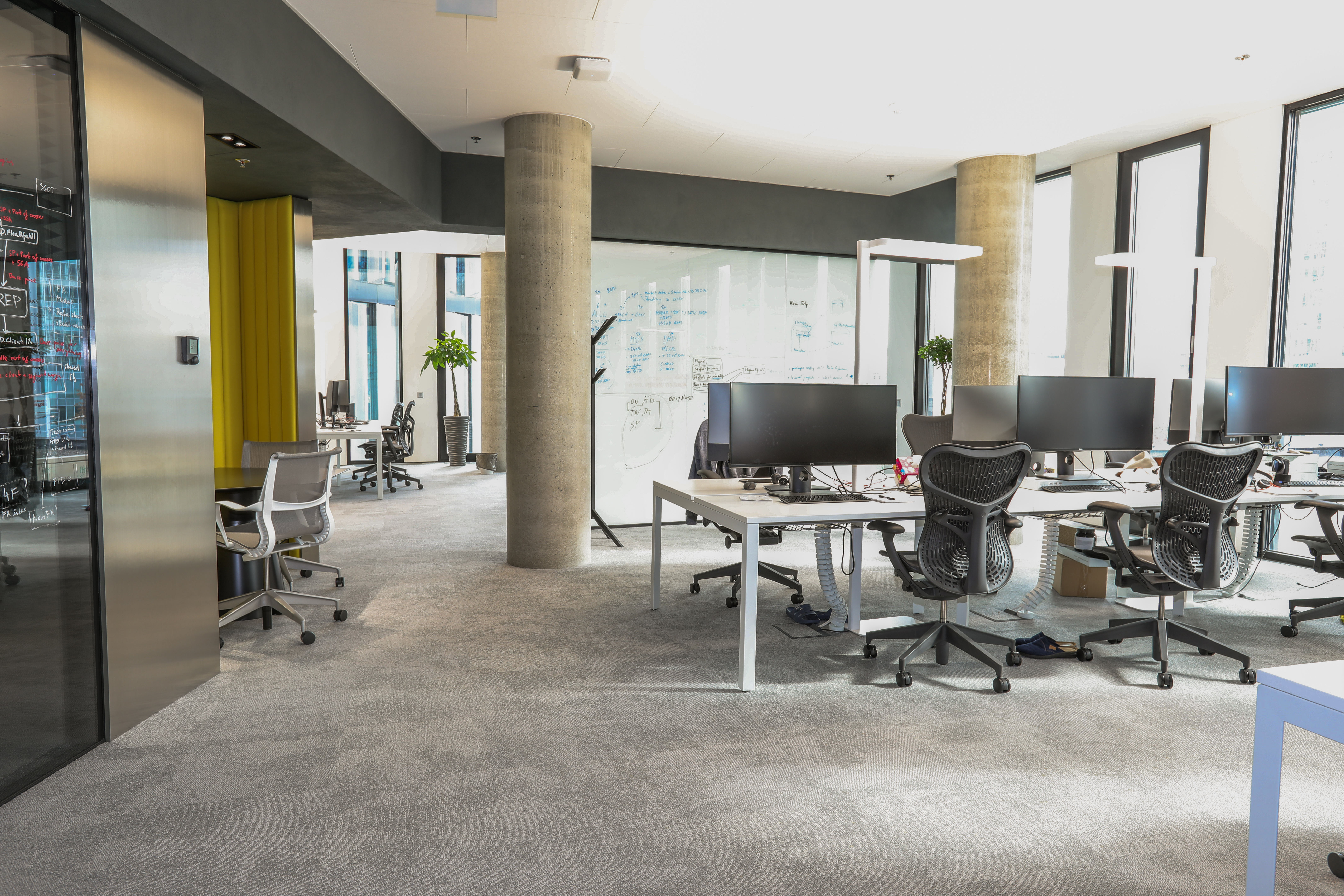 In 2019, we implemented the equipment of new office and meeting rooms for the originally African and now global technology company EOH. We equipped the workplaces with Mirra office chairs and Layout workbenches from HermanMiller. We supplied equipment for meeting rooms from the same manufacturer.