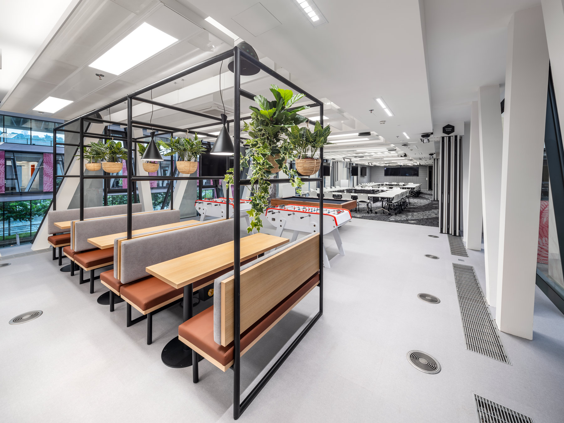 Last but not least we took company description “working on cloud solutions” to real live by designing carpet layout as a sky with clouds. Lounge areas in space plan are located on these carpet clouds, so when the engineers relax in sofa, they are literally on clouds.