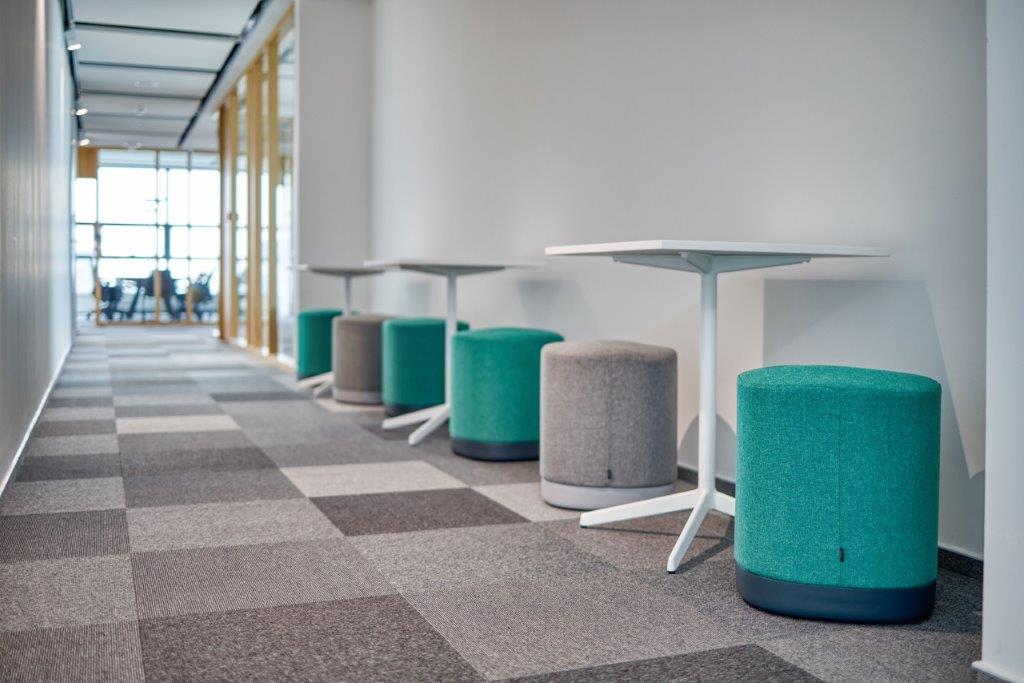 For this interesting project in Bratislava, we were approached to supply ergonomic HermanMiller office chairs complemented by proven Swoop tables from the same manufacturer, popular Sancal acoustic seating, cozy tables, chairs and lounge seating from Viccarbe and portable poufs and tables with Enea central base.