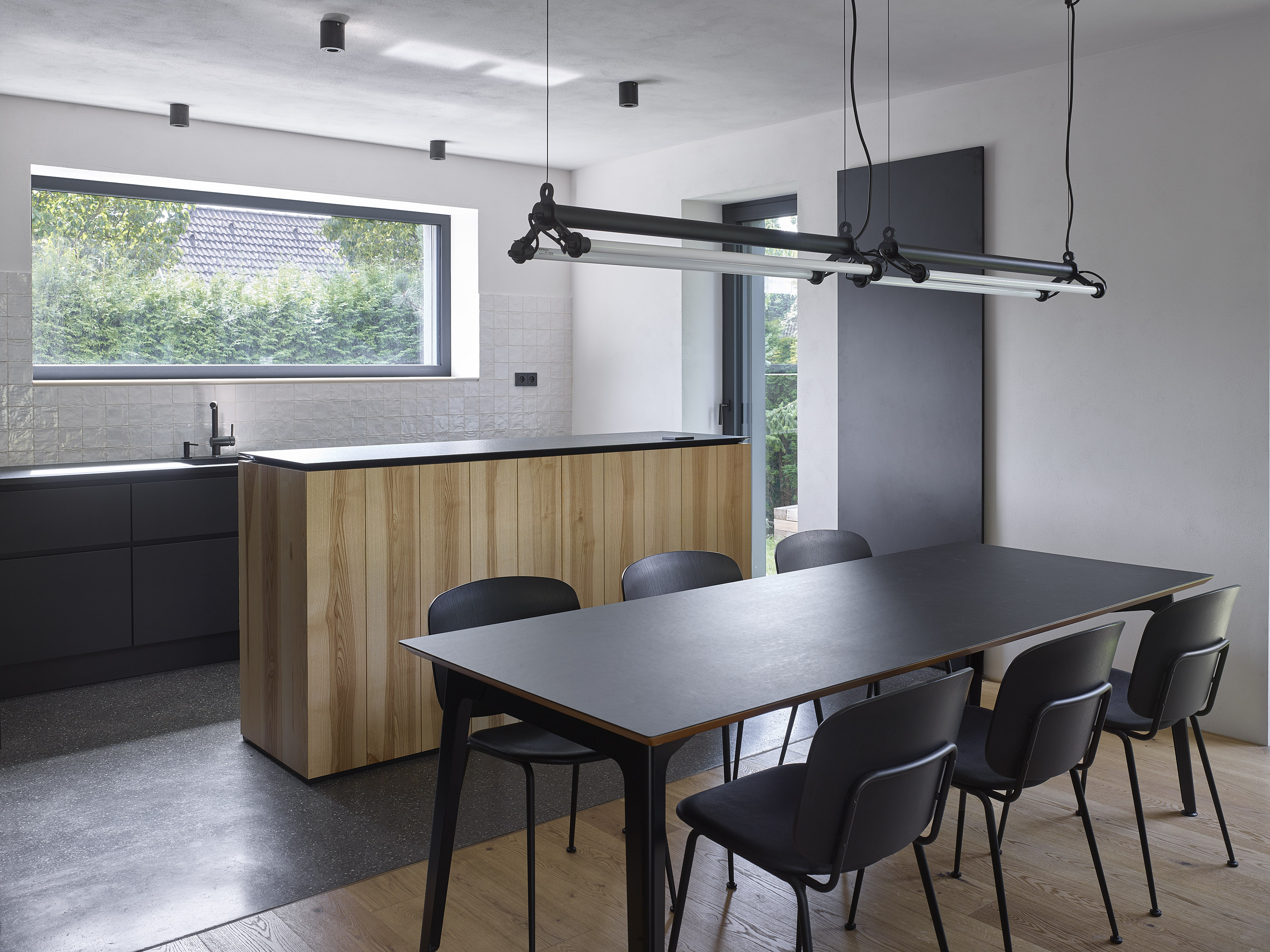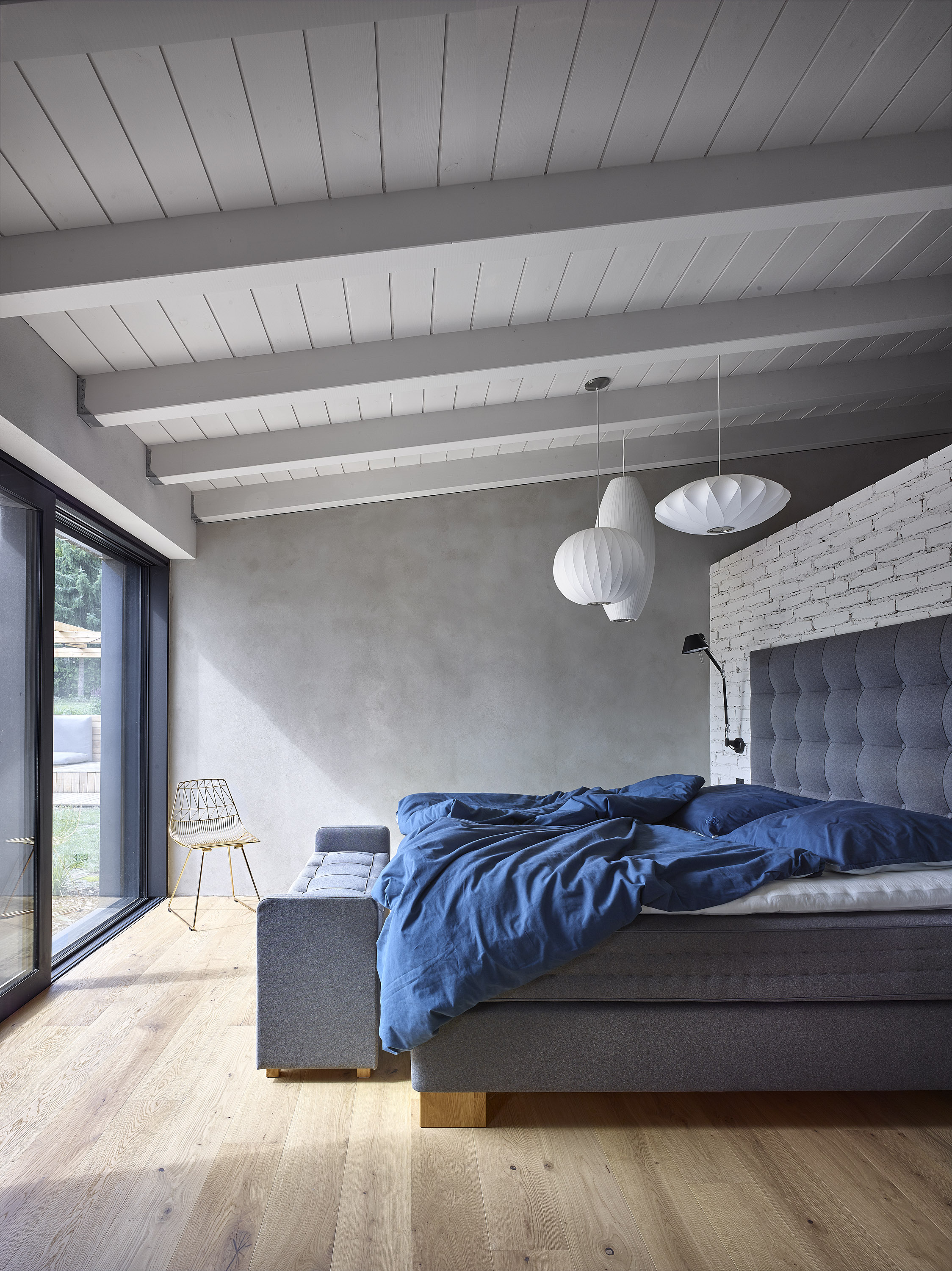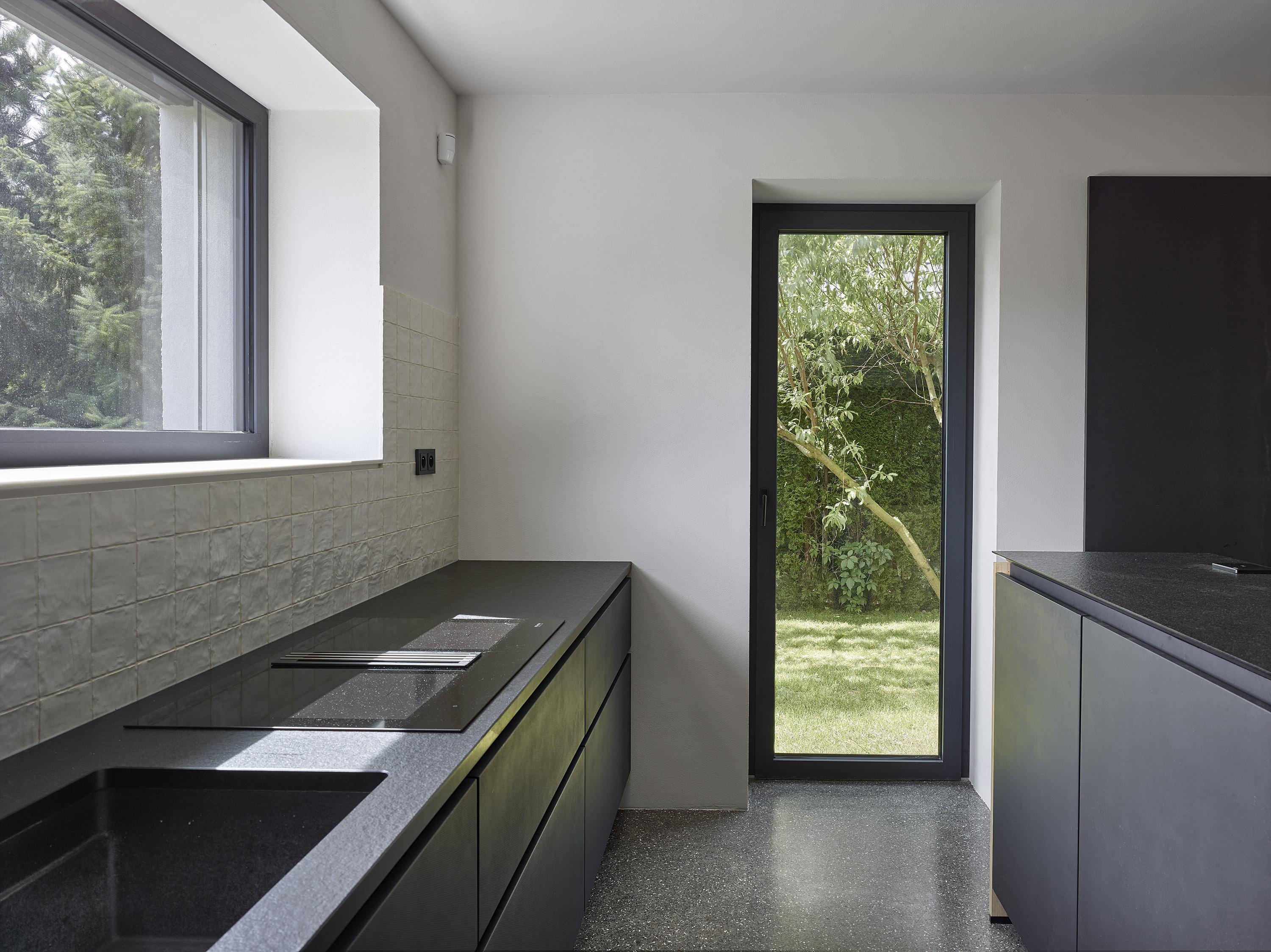 The investor bought a ten-year-old house. Unsightly, but spatially satisfactory, with only a few dispositional ailments. A complete reconstruction managed to achieve a pleasant and very comfortable living, this time in a beautiful house. Beautiful not only from the outside, but also inside. Thanks to completely new furniture and tailor-made and manufactured elements combining cold crude steel, warm wood and natural stone, a harmonious interior with several strong color accents was created.