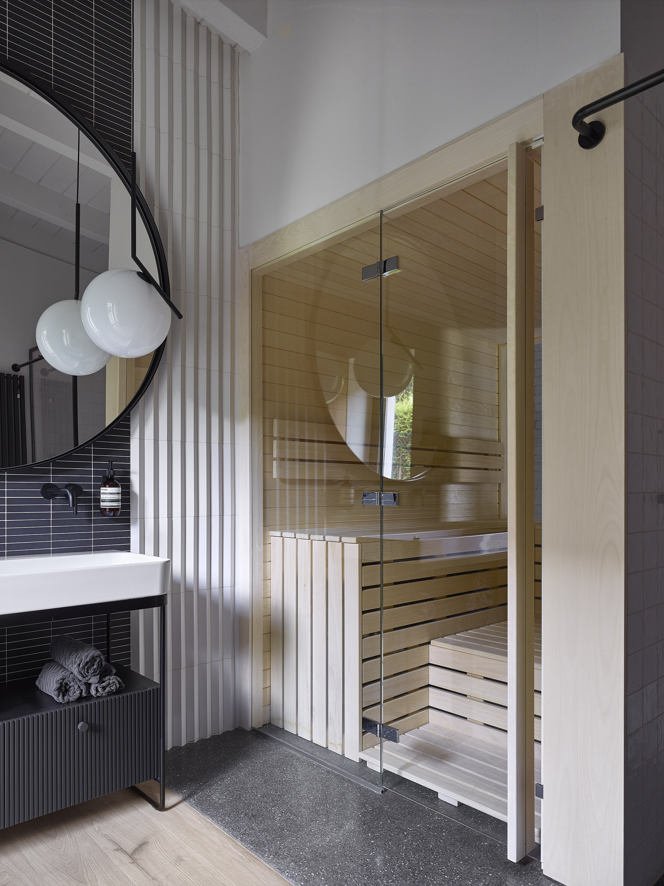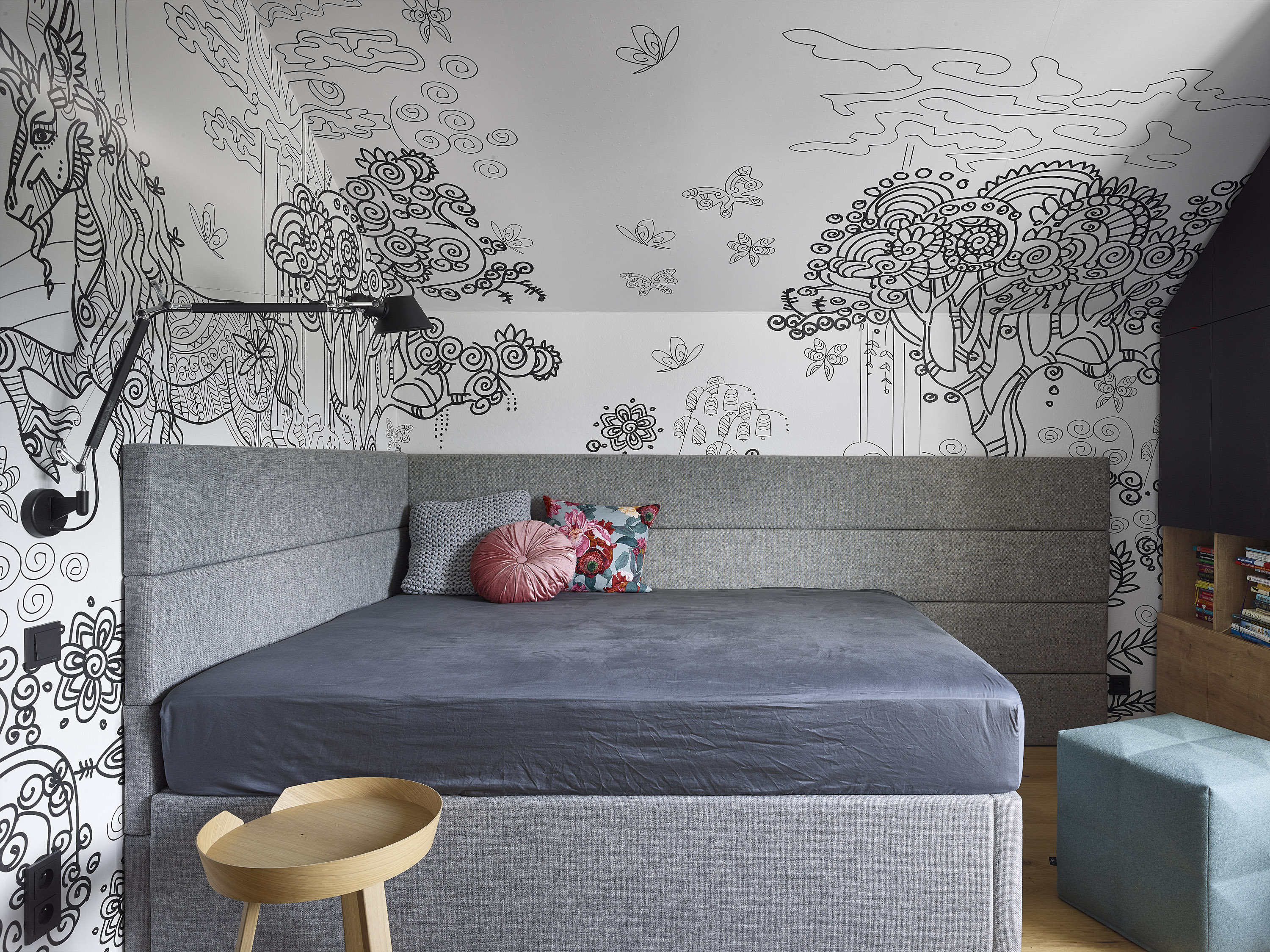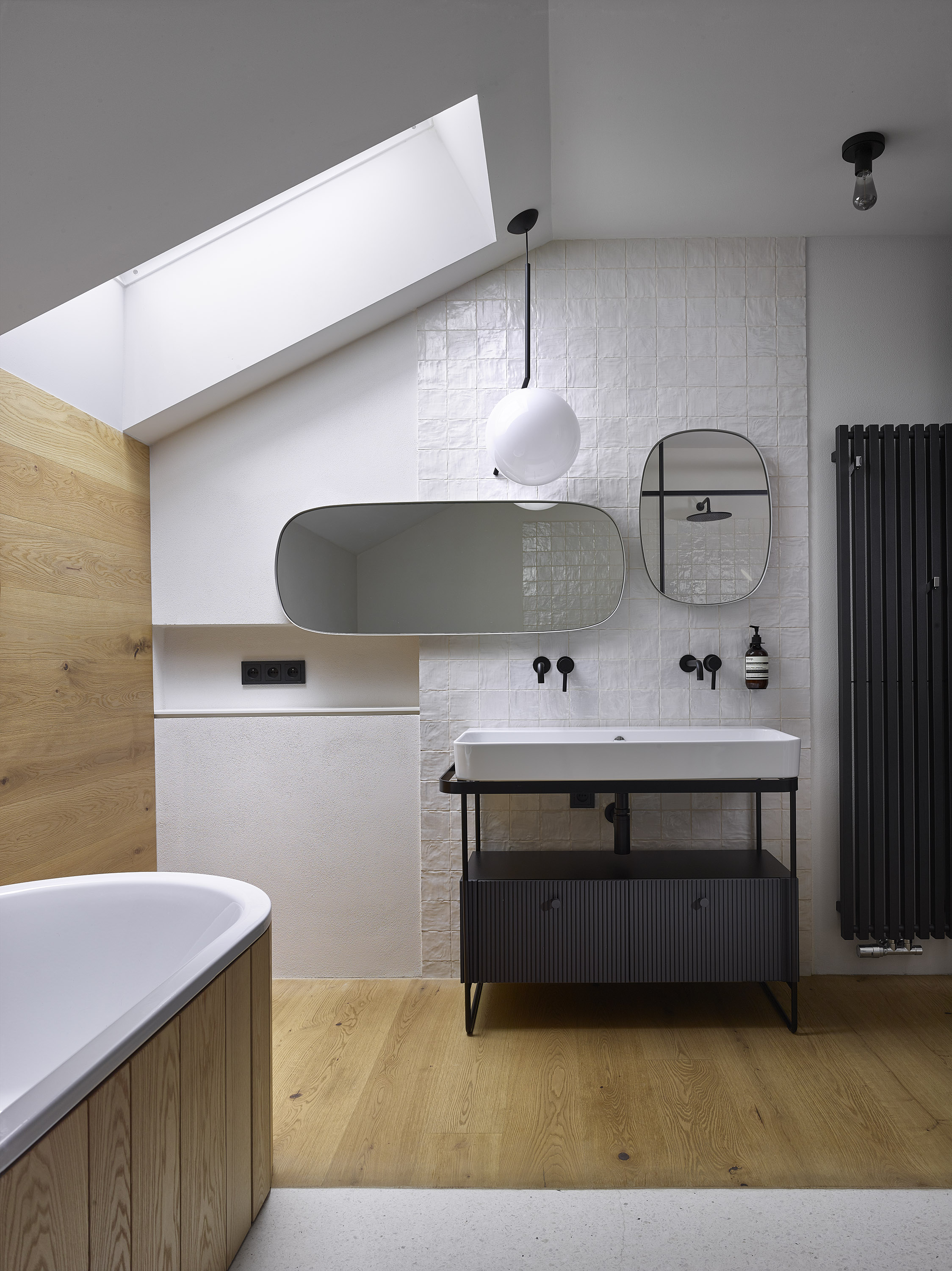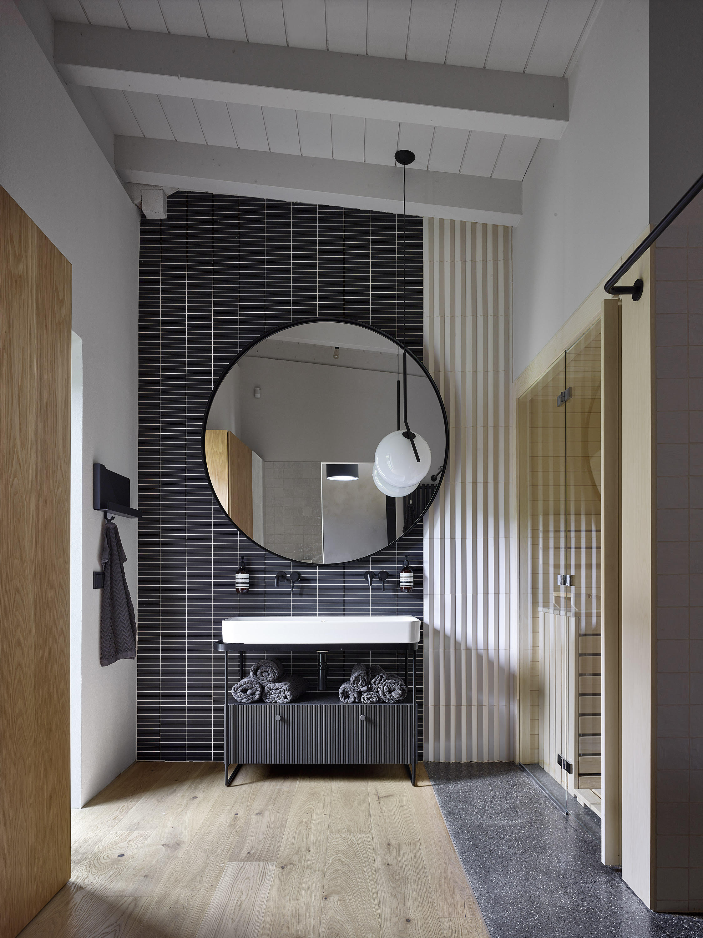 The investor bought a ten-year-old house. Unsightly, but spatially satisfactory, with only a few dispositional ailments. A complete reconstruction managed to achieve a pleasant and very comfortable living, this time in a beautiful house. Beautiful not only from the outside, but also inside. Thanks to completely new furniture and tailor-made and manufactured elements combining cold crude steel, warm wood and natural stone, a harmonious interior with several strong color accents was created.