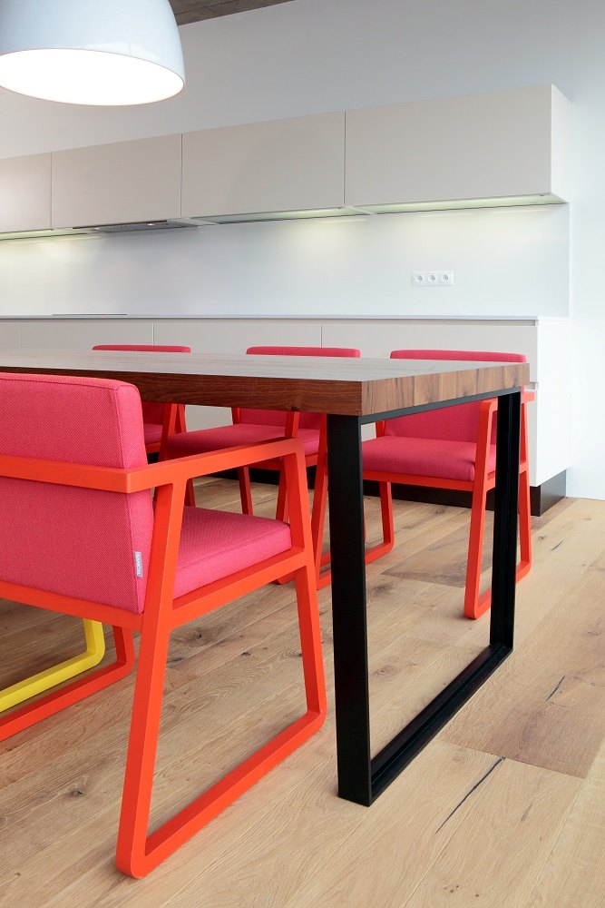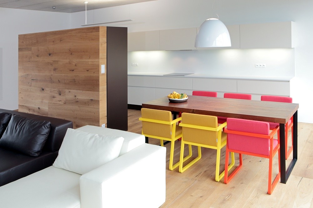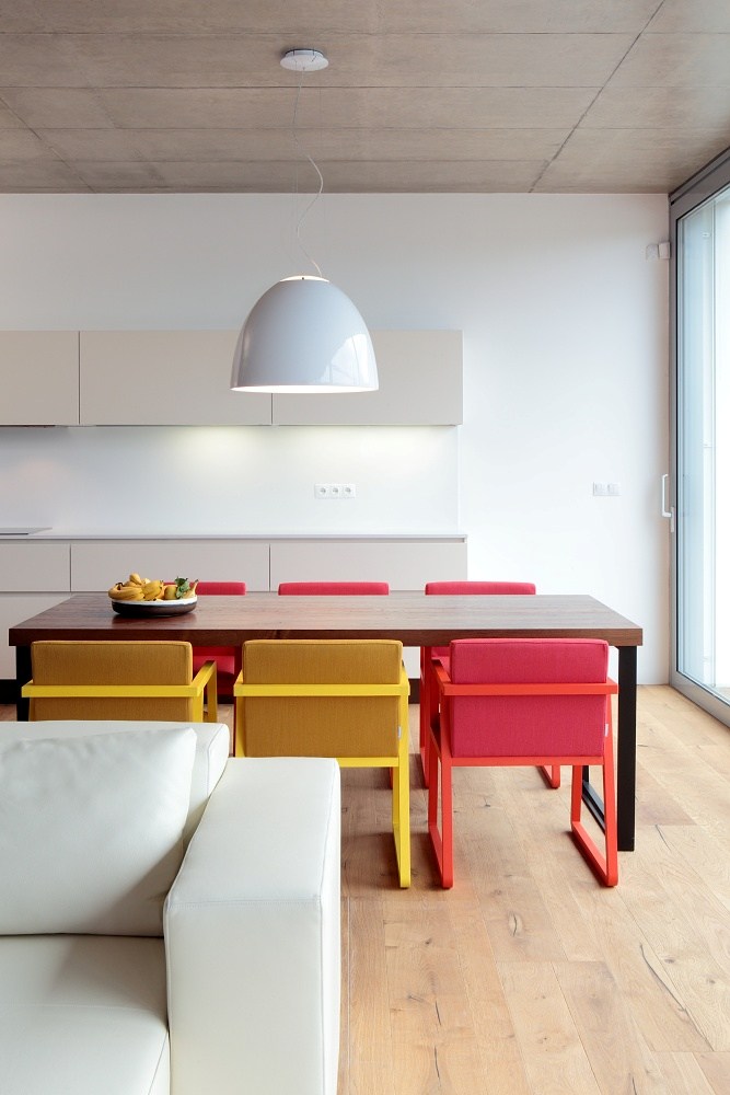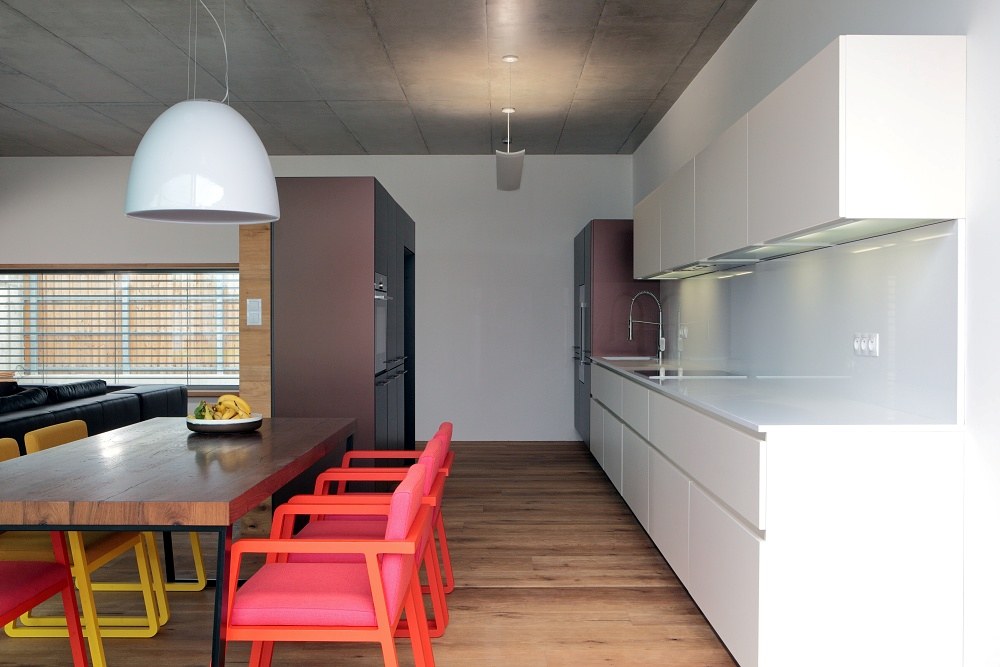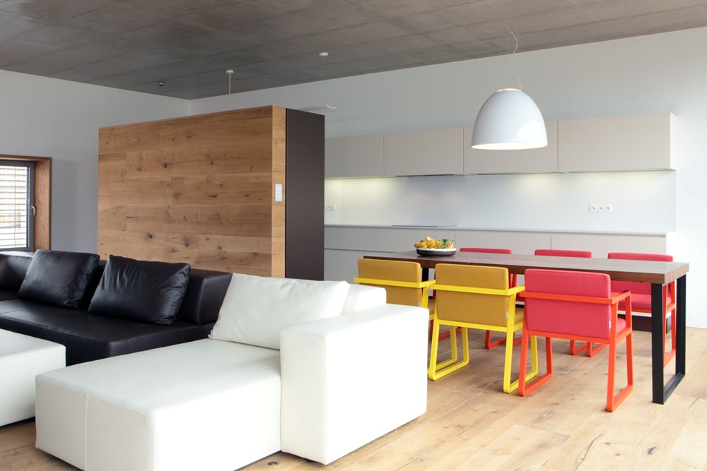Atypical interior and furniture of a family house in Zdiby. Used products: chairs Sancal Midori, sitting Sax. Artemide lighting.