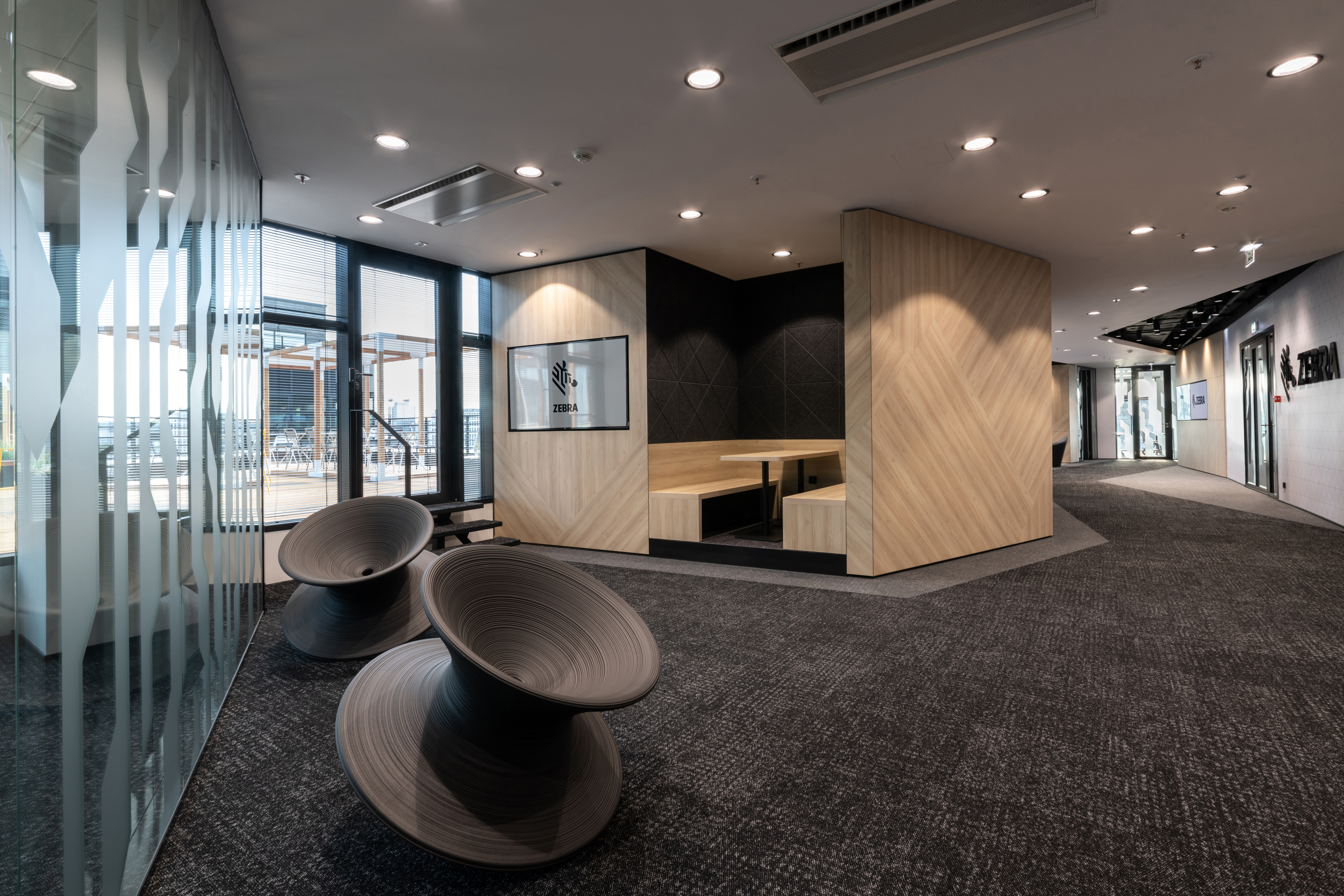 Thanks to the dynamic and rapid development, the international company ZEBRA TECHNOLOGIES has surpassed the capacity of the existing premises in the technology park in the north of Brno. The company, with the help of an architectural team, occupied more than 4 floors of the new Vlněná office building. The complex architectural concept of the interior is based on the layering of individual levels of tropical and subtropical climate zones, the individual floors are carried in the spirit of carefully selected themes.